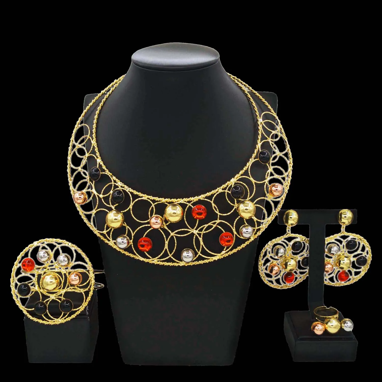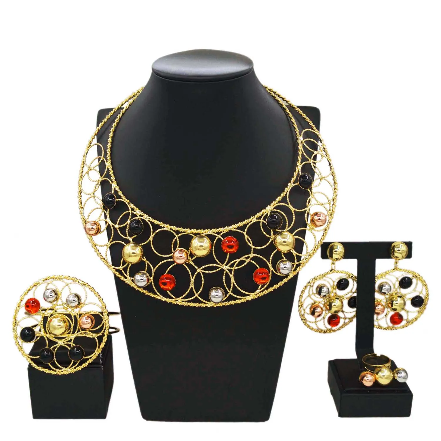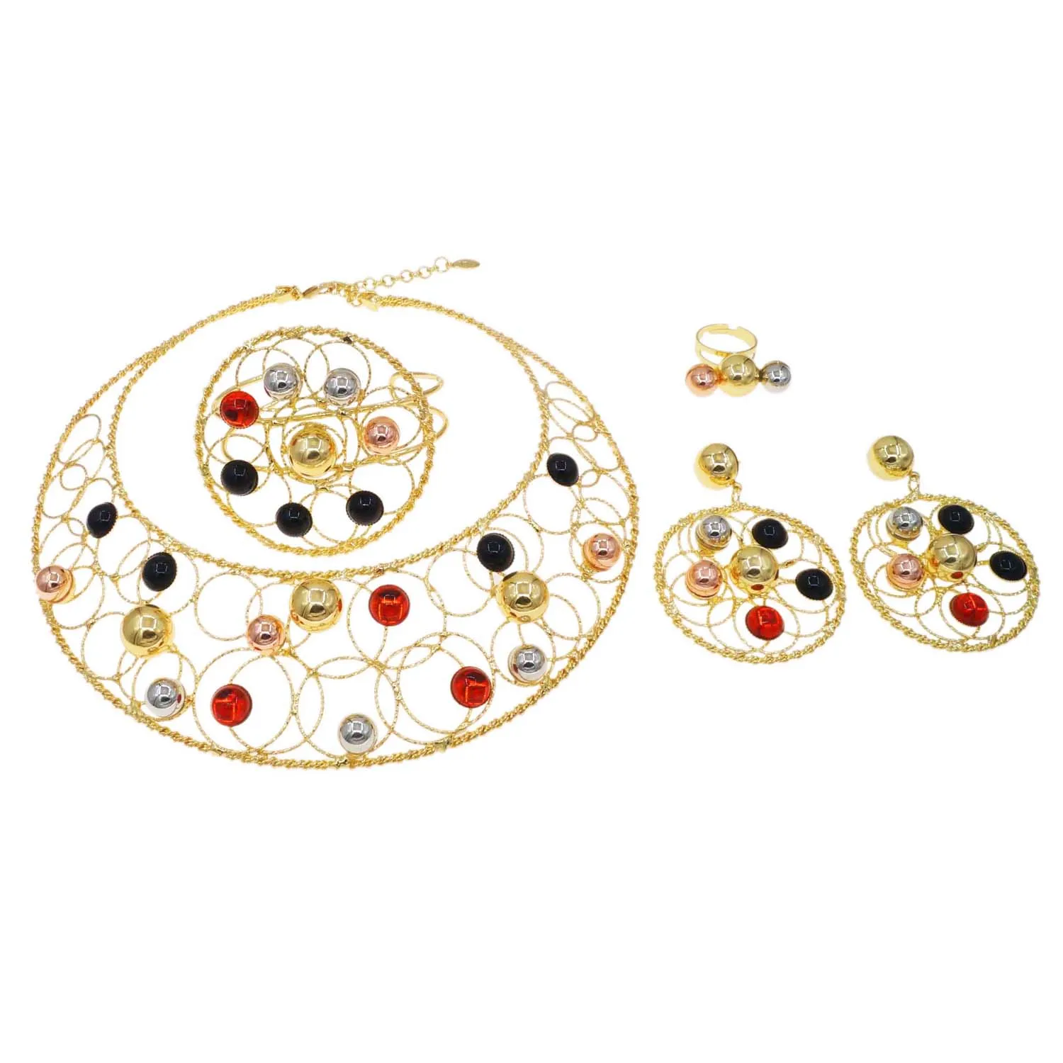 New Brazilian Jewelry Accessories High Quality Colorful Ball design Jewelry Set 24 K Gold Plated Jewelry For Women