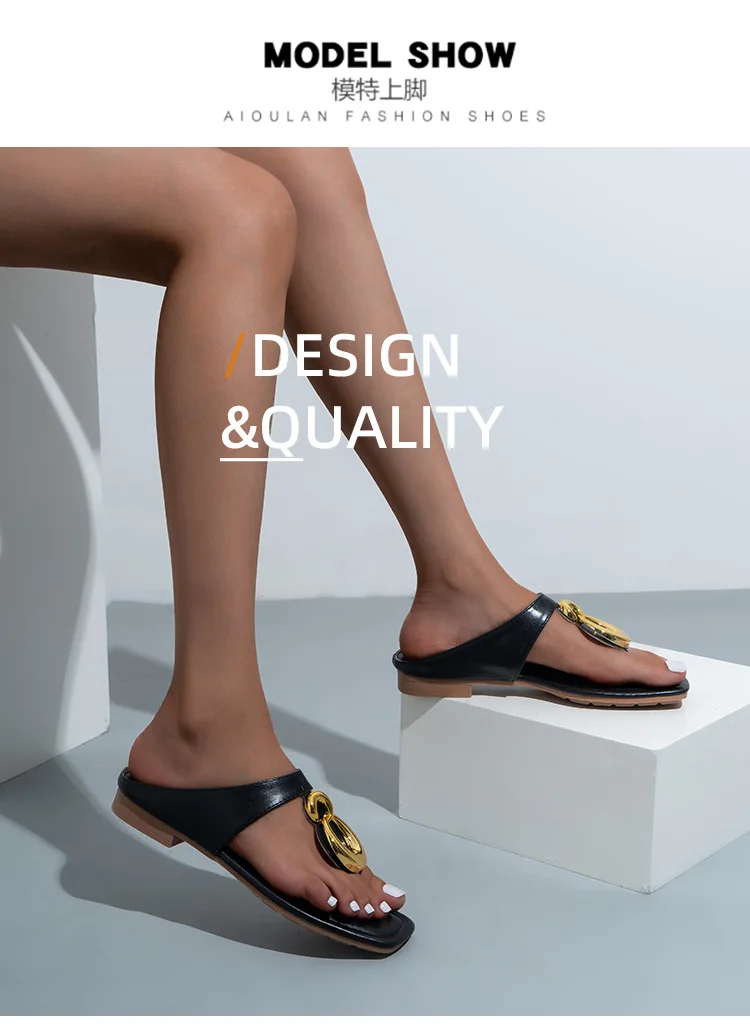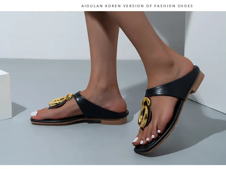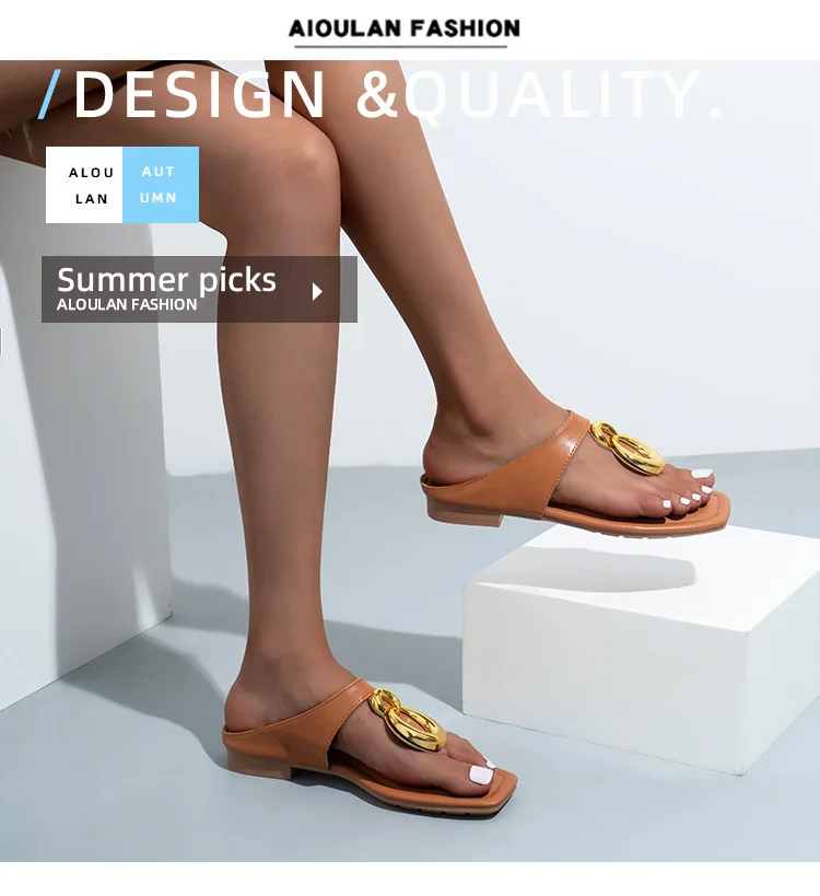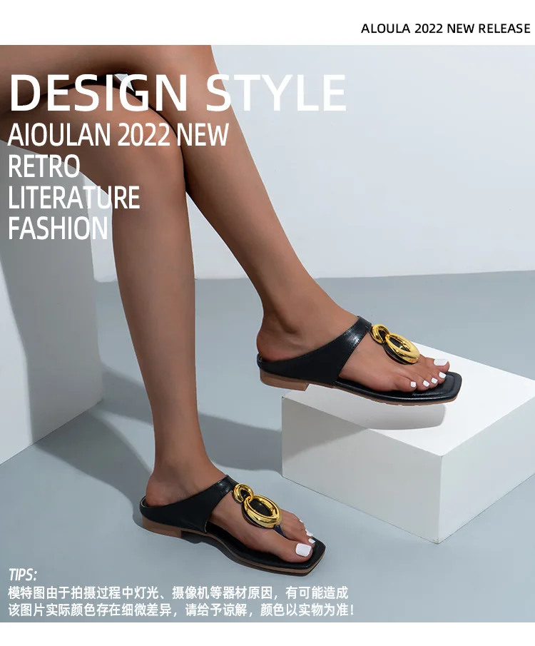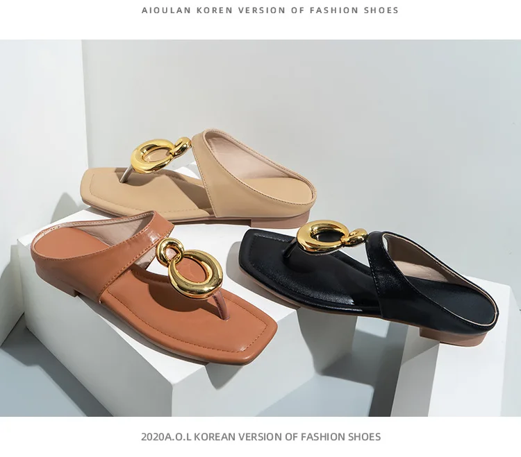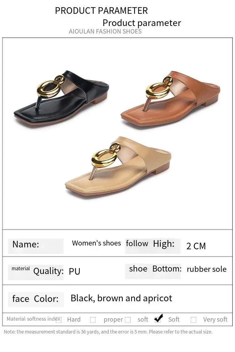 New Casual Slipper With Square Head Ladies Women Beach Flip-Flops Flat Sandals Shoes ladies fashion design slippers