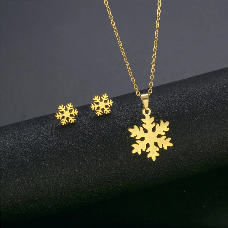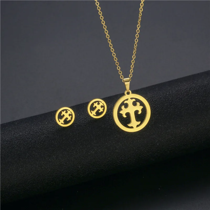 New Cheap Dubai 18K Gold-plated waterproof Stainless Steel Various shapes pendants Gift Necklace Earrings Jewelry Set For Women
