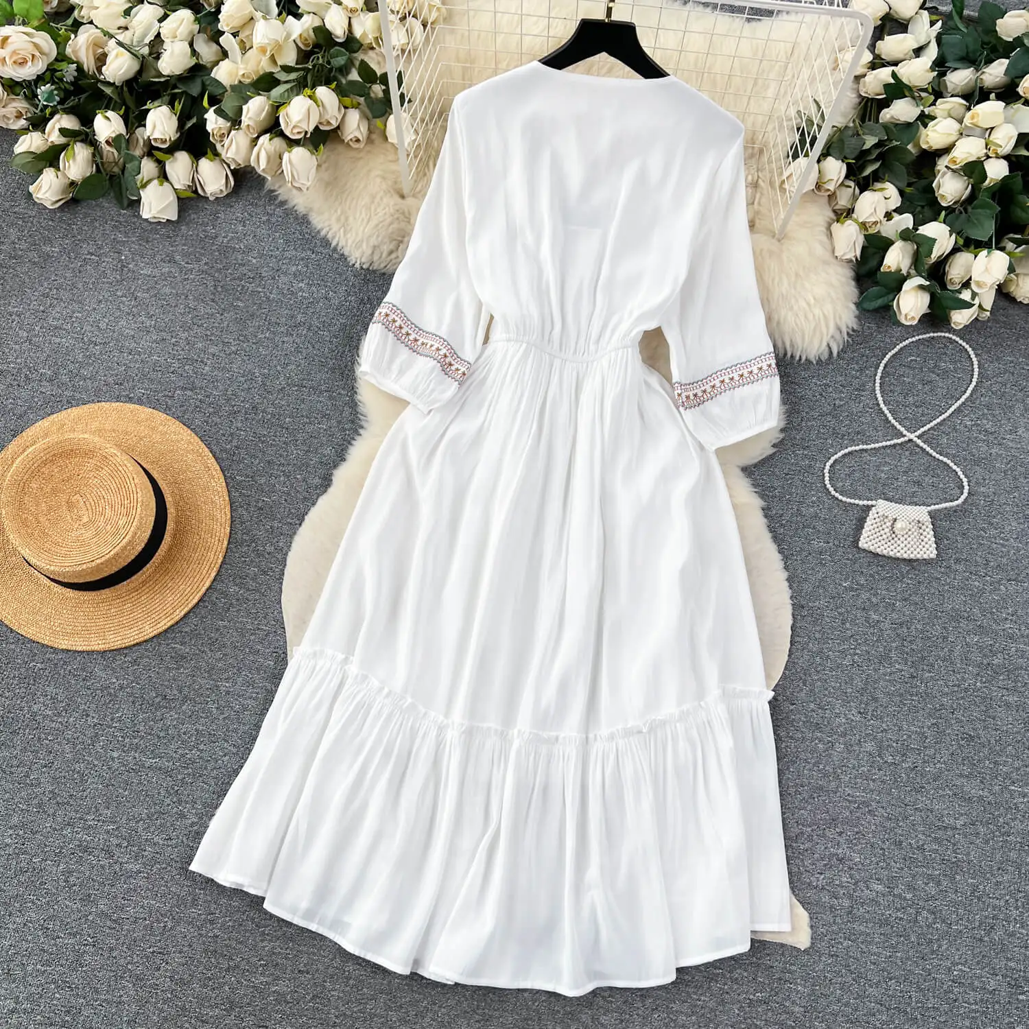 New Collection Beachwear Embroidery Mexican Dresses Traditional Embroidered Trendy Spring Boho Long Dress