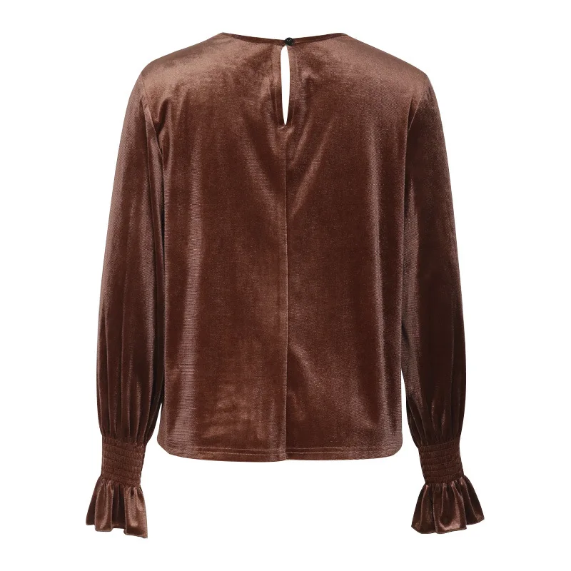 New Cross Border Maillard Solid Long Sleeve Knitted Shirt Women