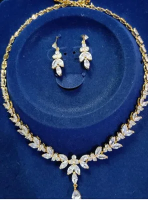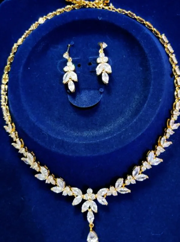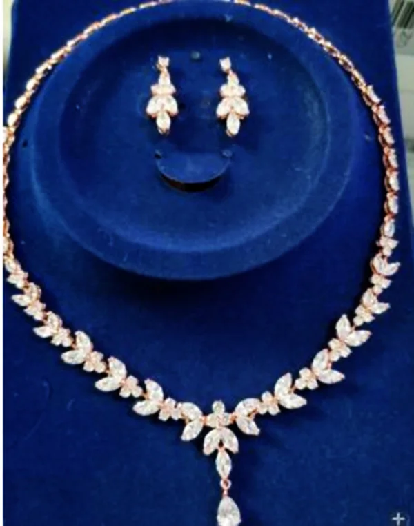 New Custom Flower Leaf Crystal Zircon Rose Gold Color Jewelry Set Wedding Dubai bridal Pendant Necklace Dangle Drop Earrings