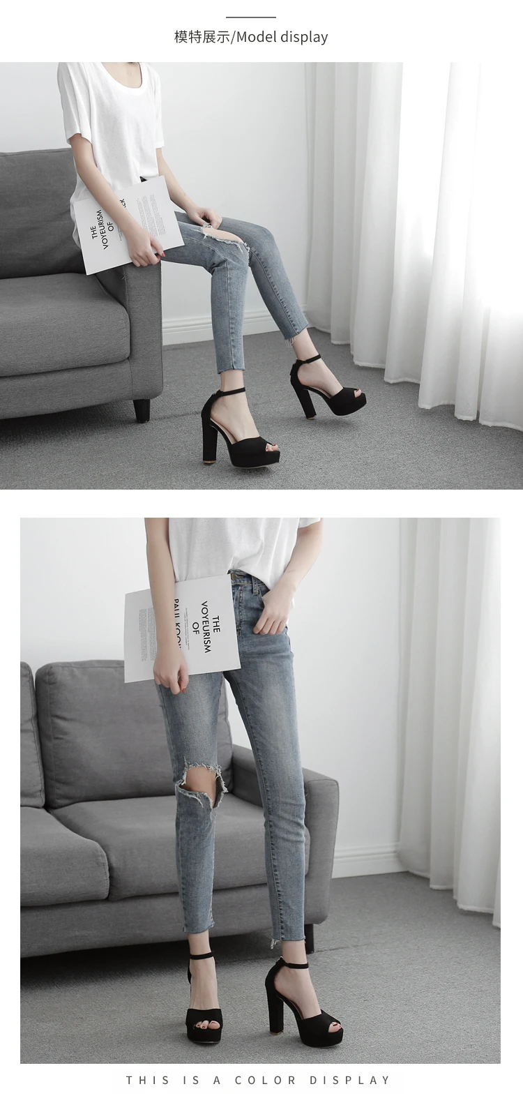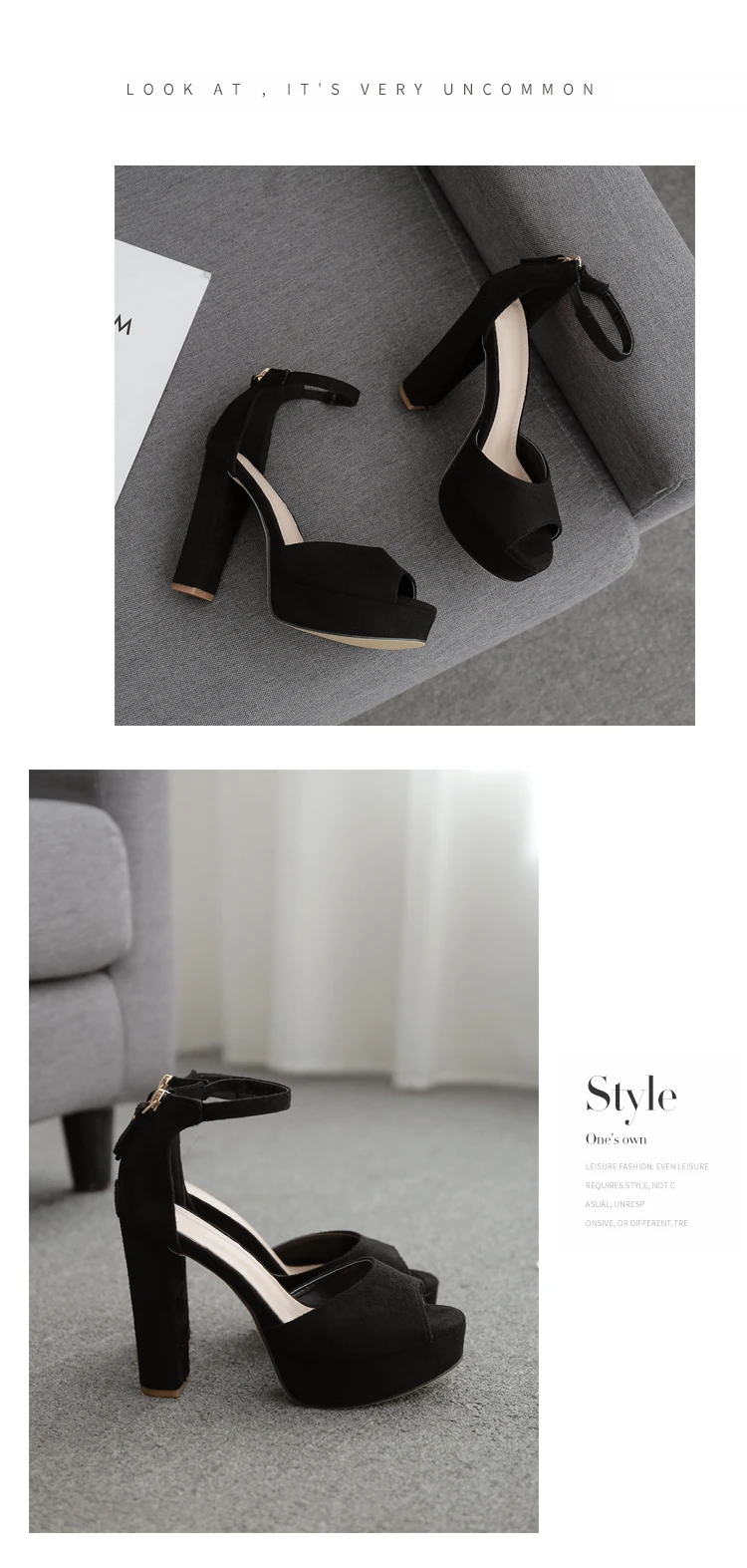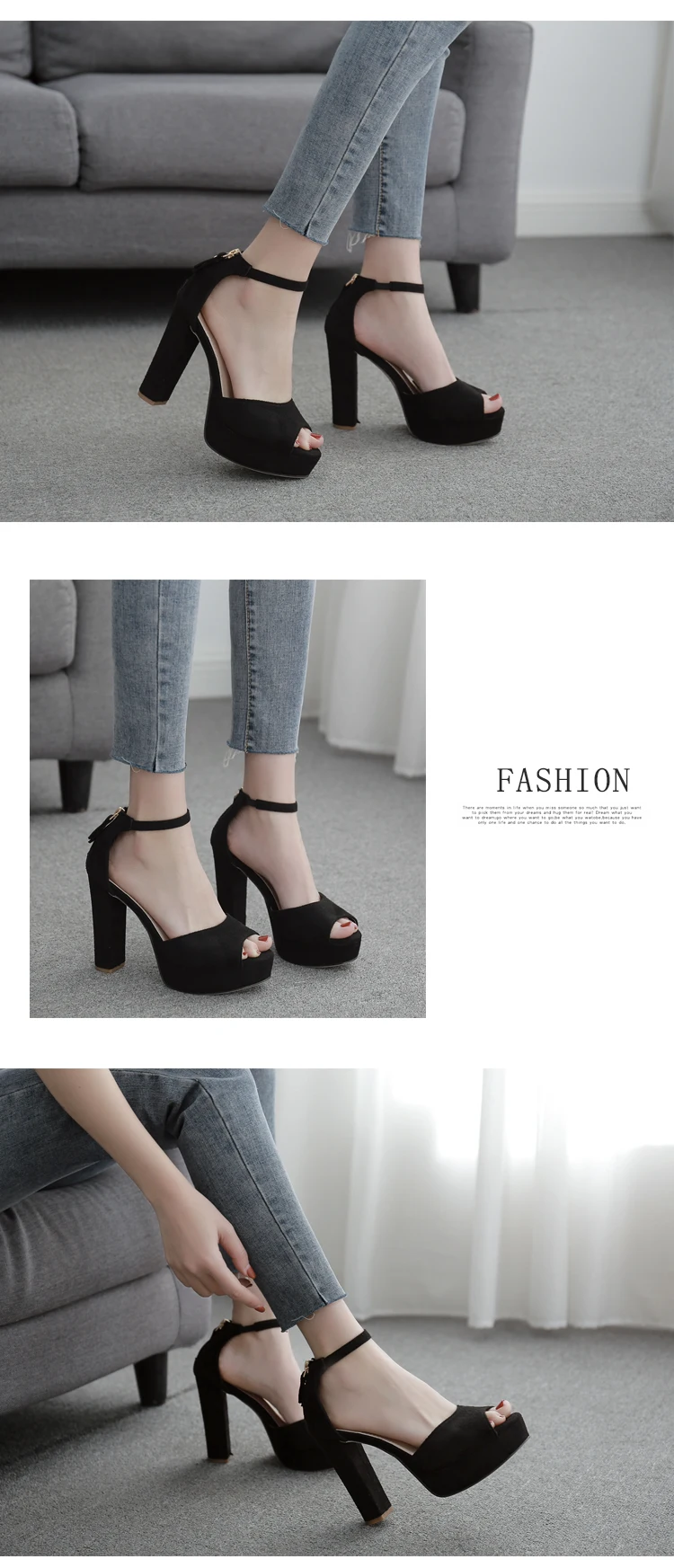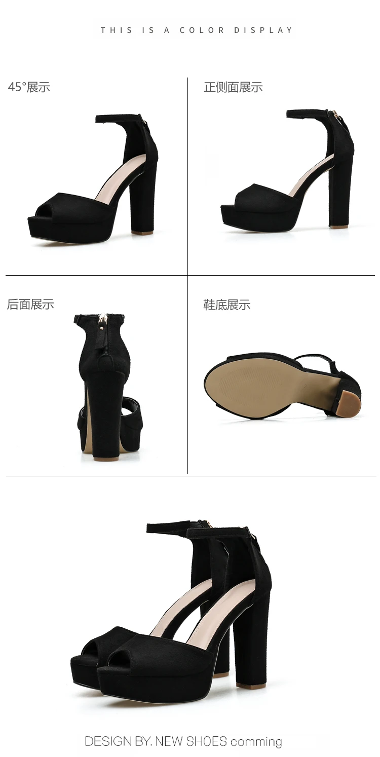 New deign sexy women black suede fashion heels ankle strap platform sandals peep Toe sexy night club high heels Ladies shoes