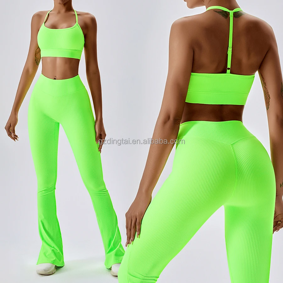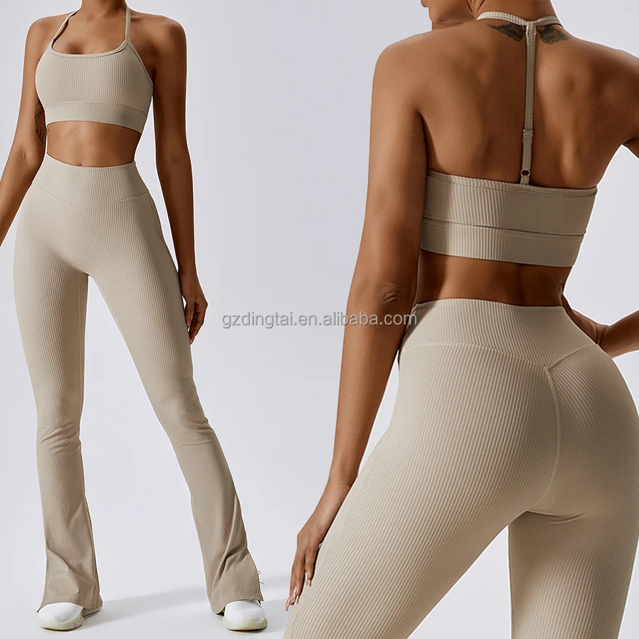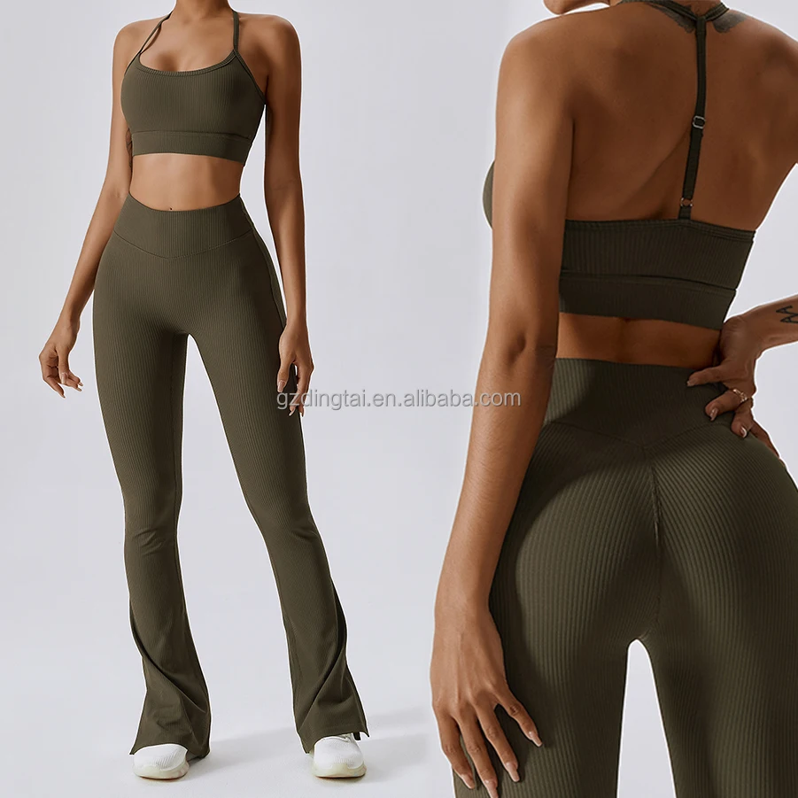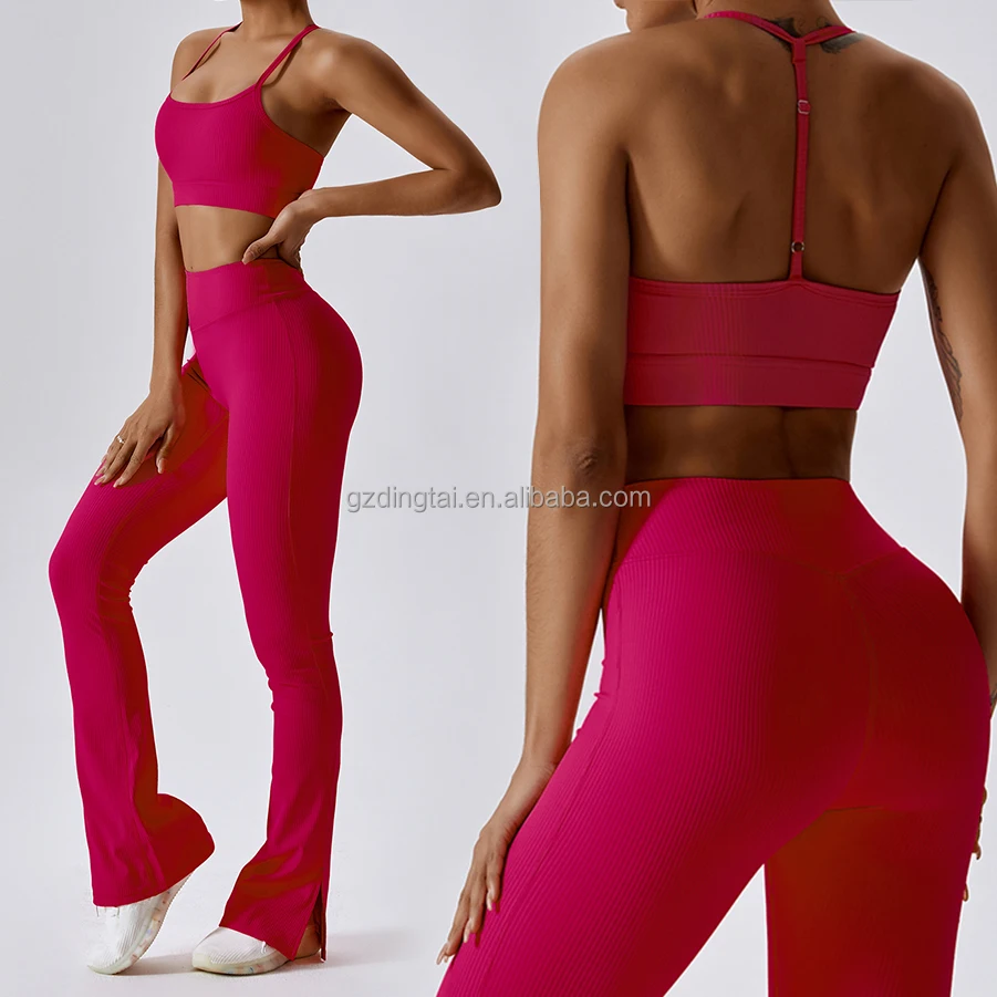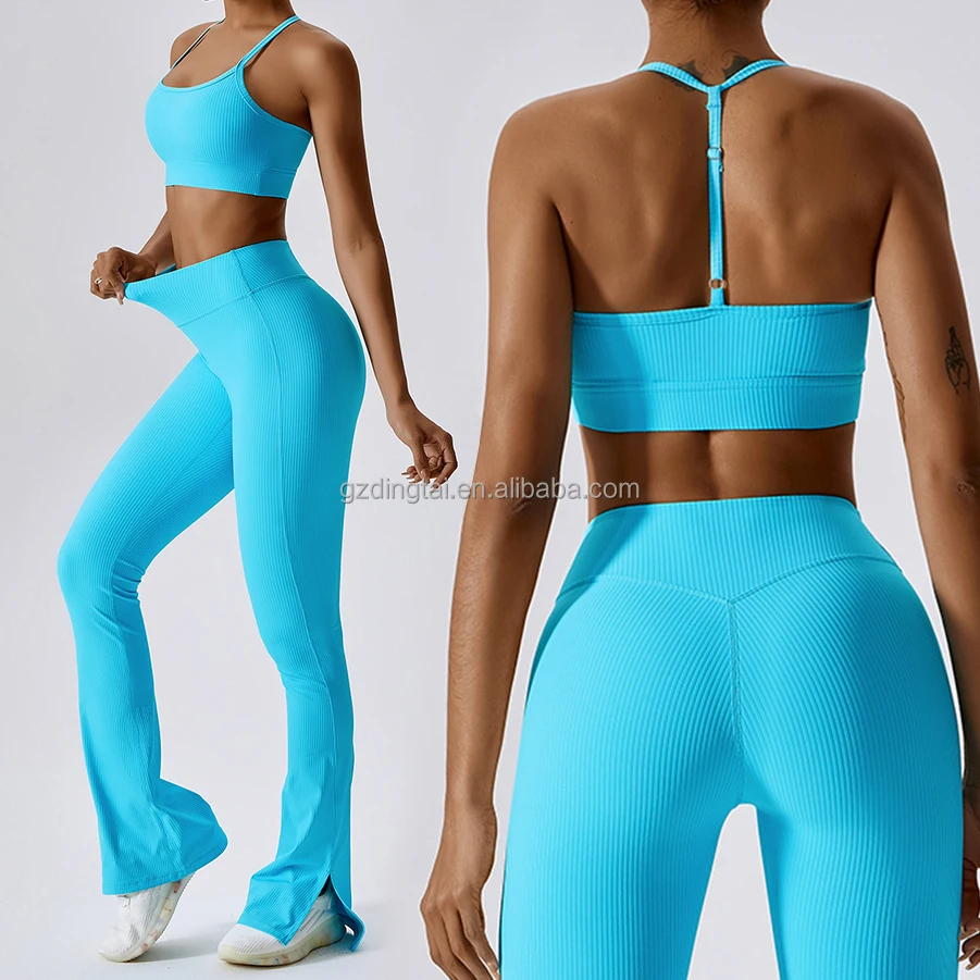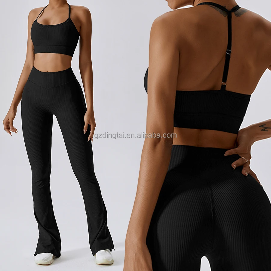 New Design Gym Clothing For Women Workout Yoga Set High Waist Sport Fitness Yoga Bra Legging Flares Pant Set