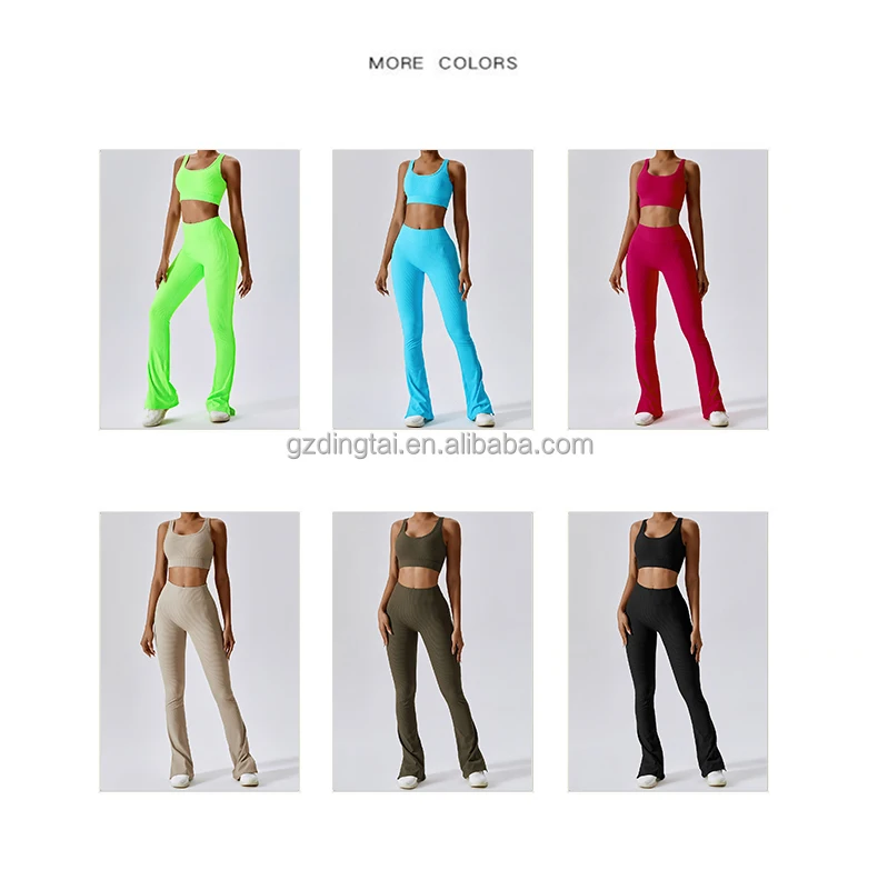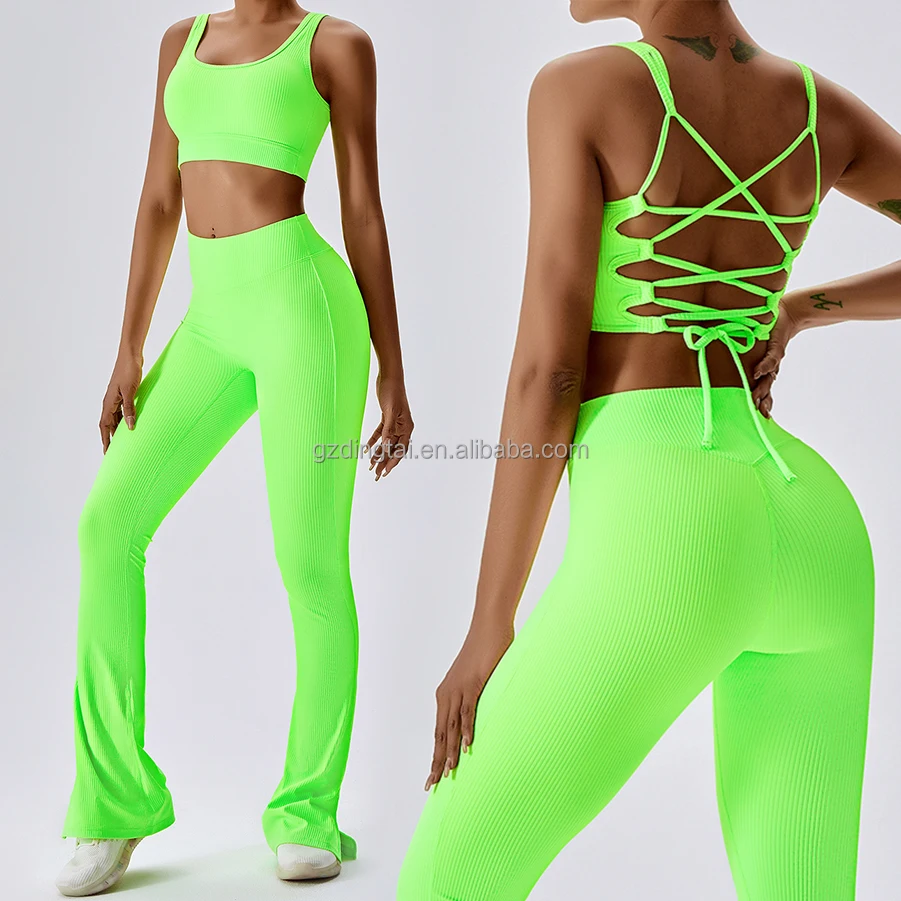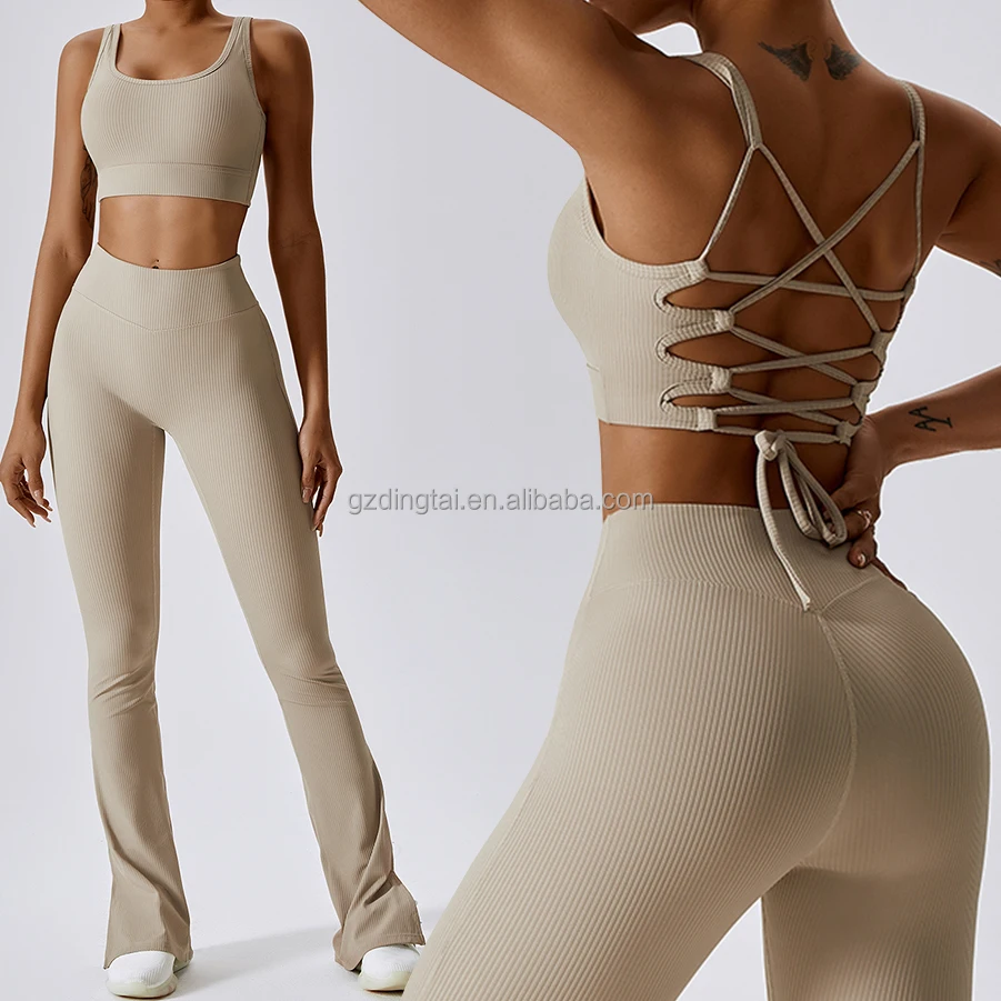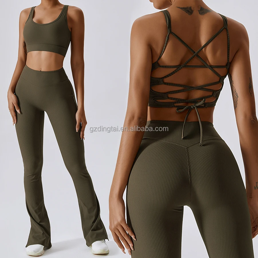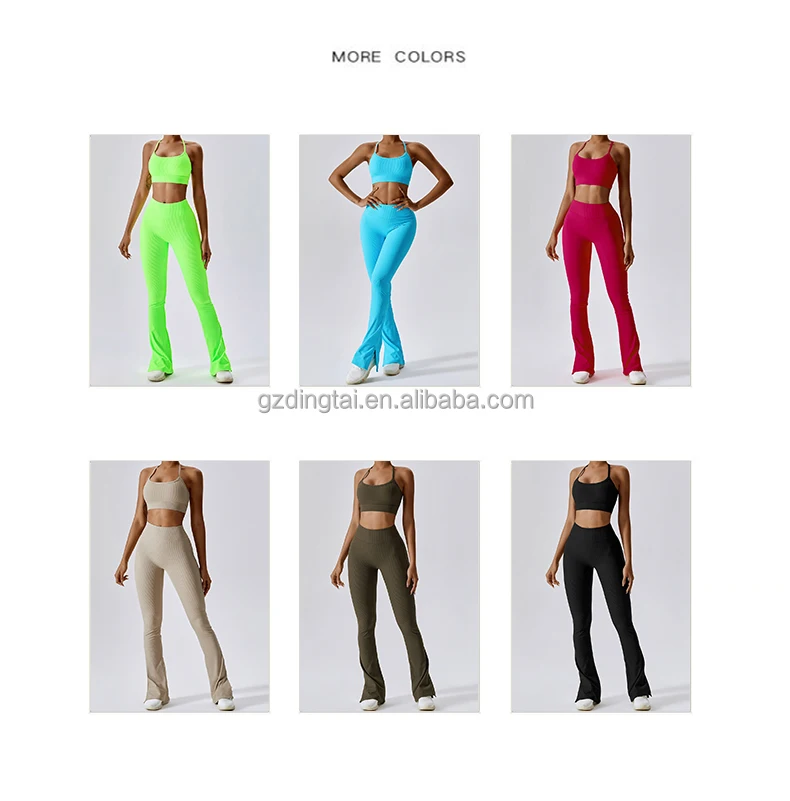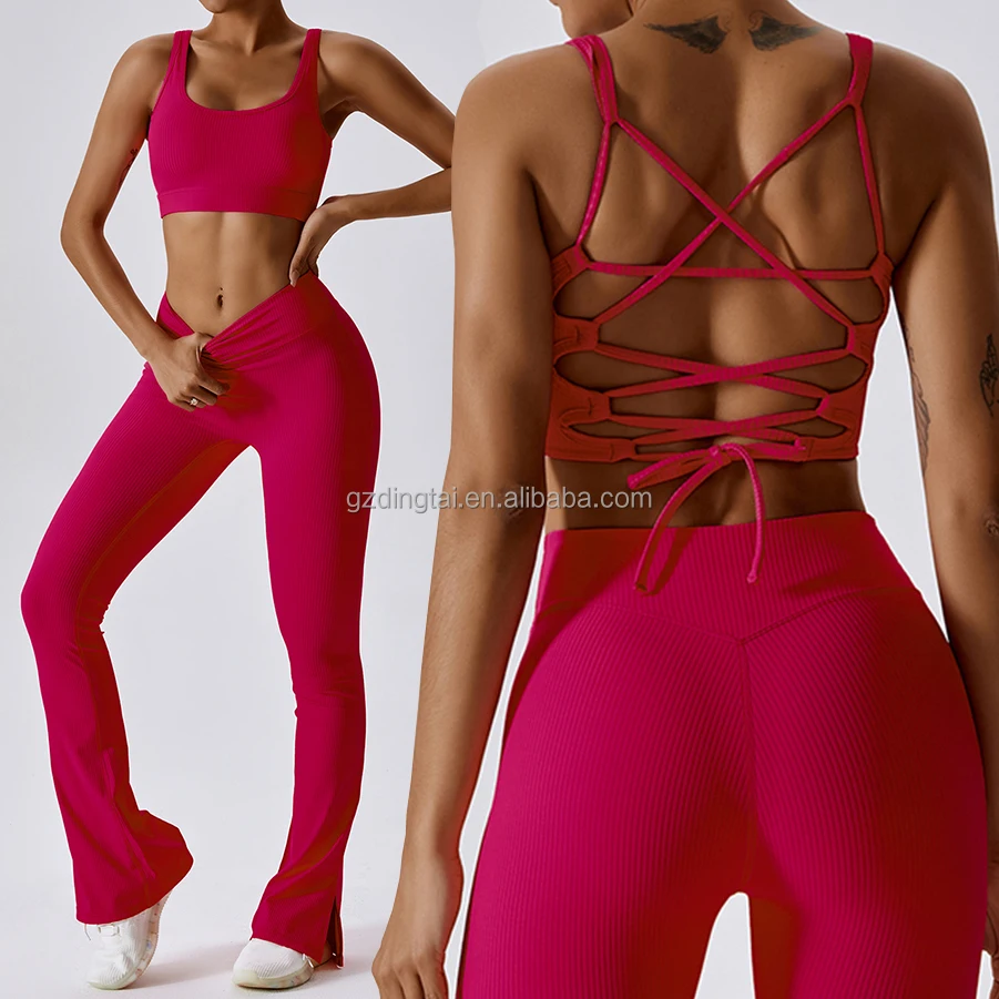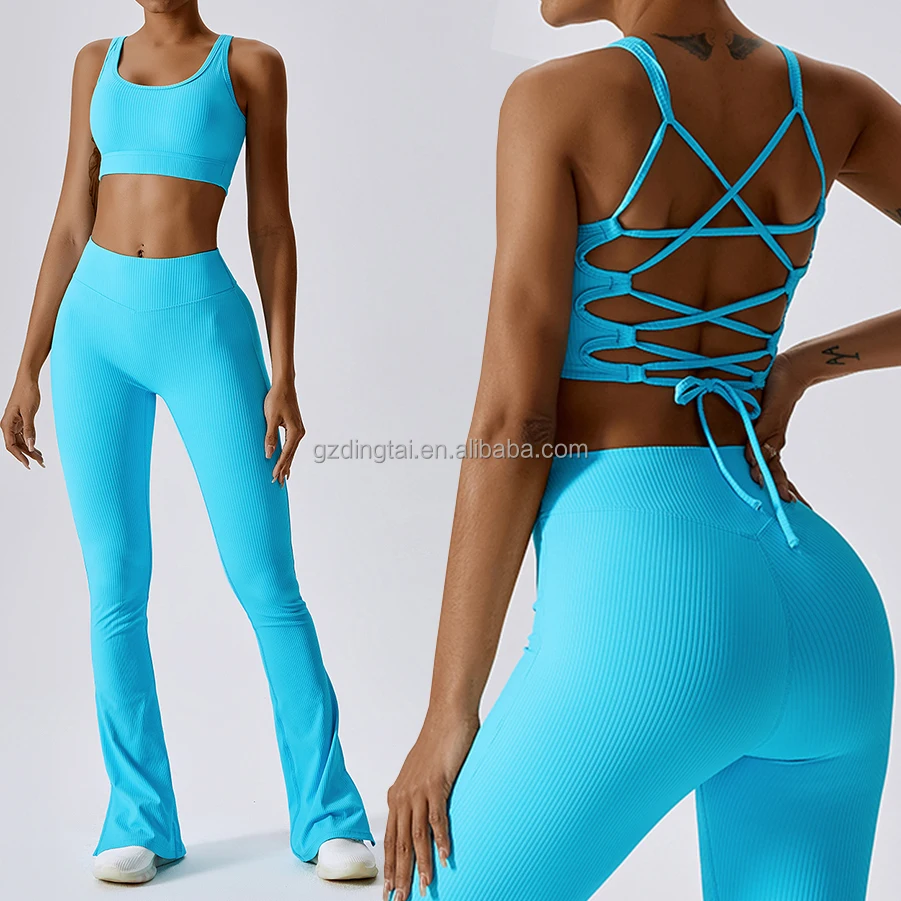 New Design Gym Clothing For Women Workout Yoga Set High Waist Sport Fitness Yoga Bra Legging Flares Pant Set