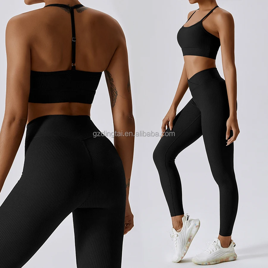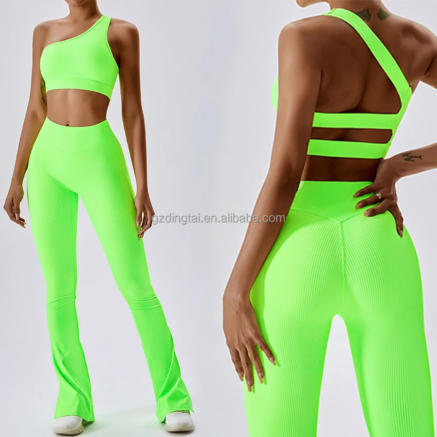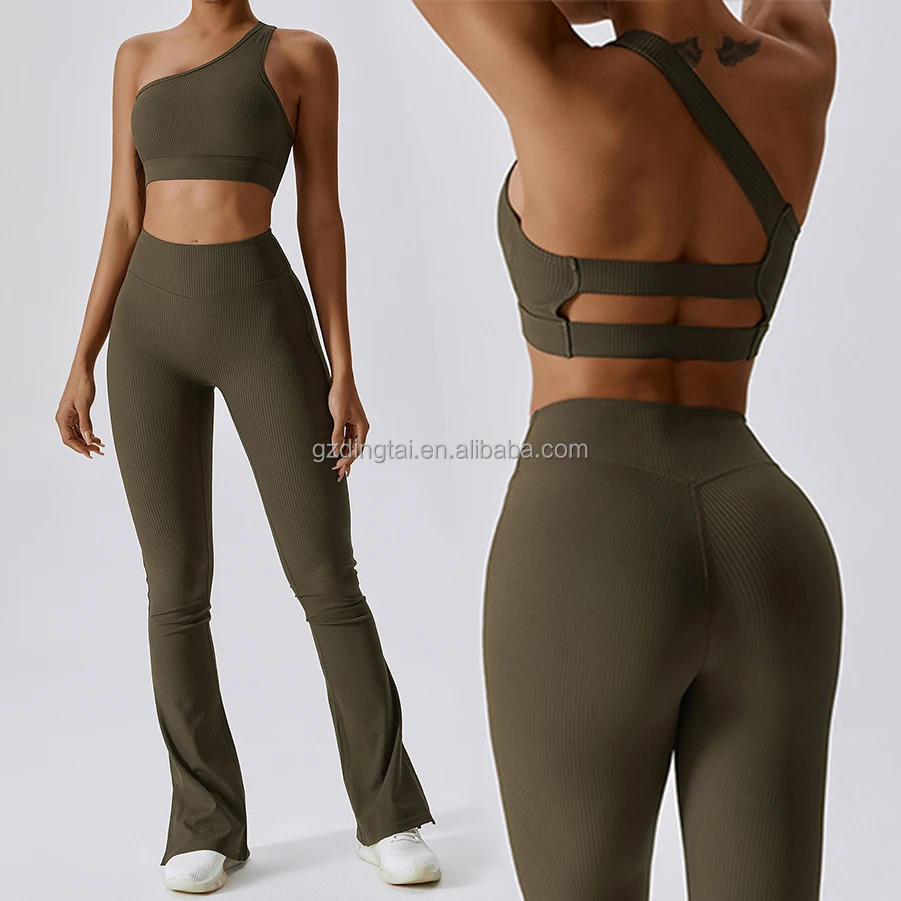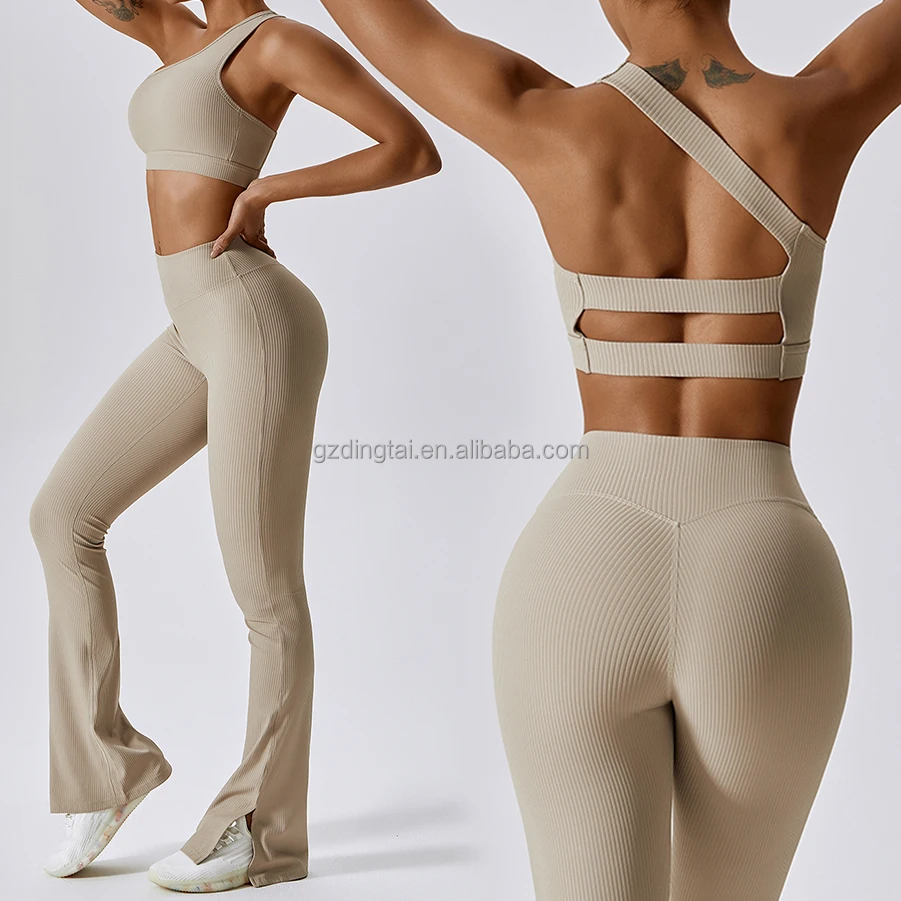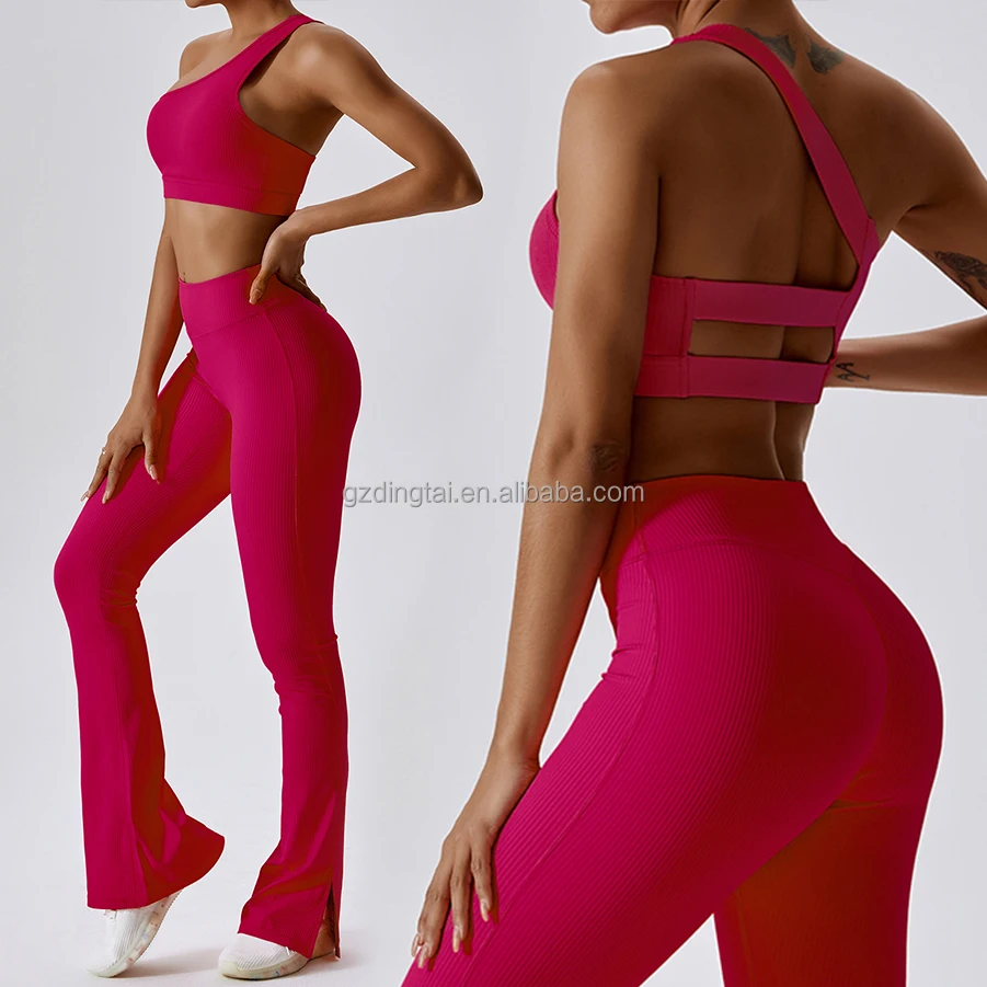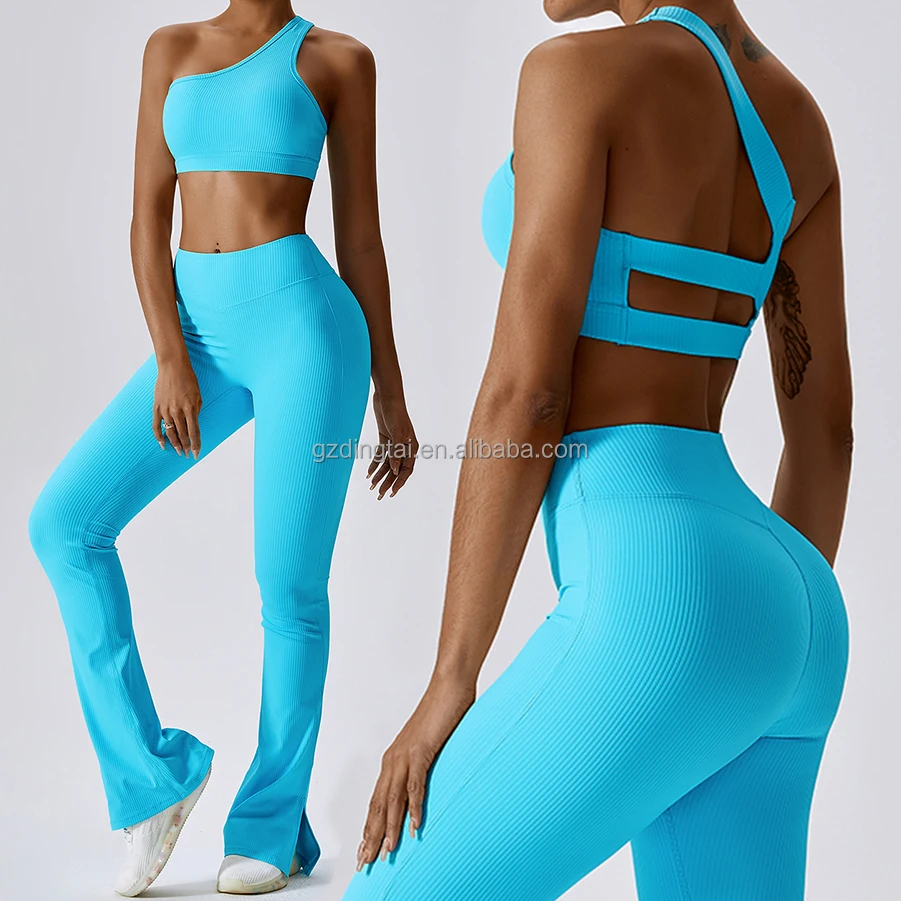 New Design Gym Clothing For Women Workout Yoga Set High Waist Sport Fitness Yoga Bra Legging Flares Pant Set