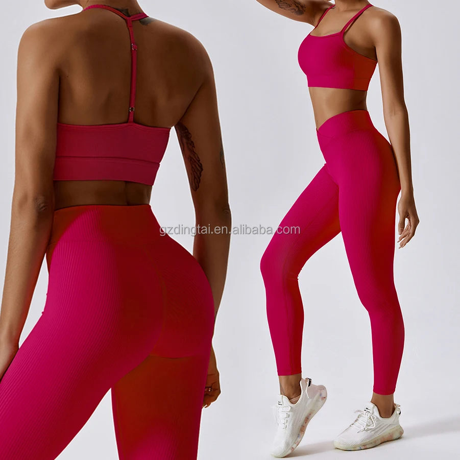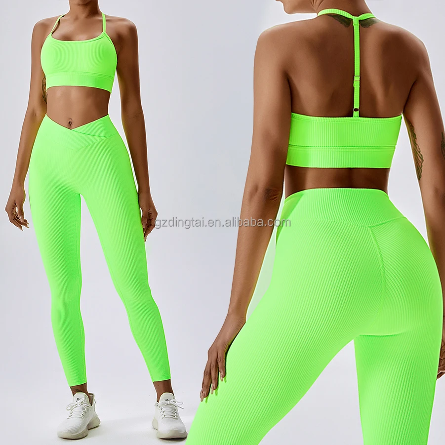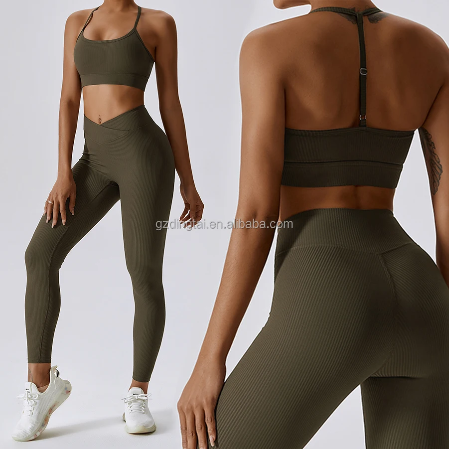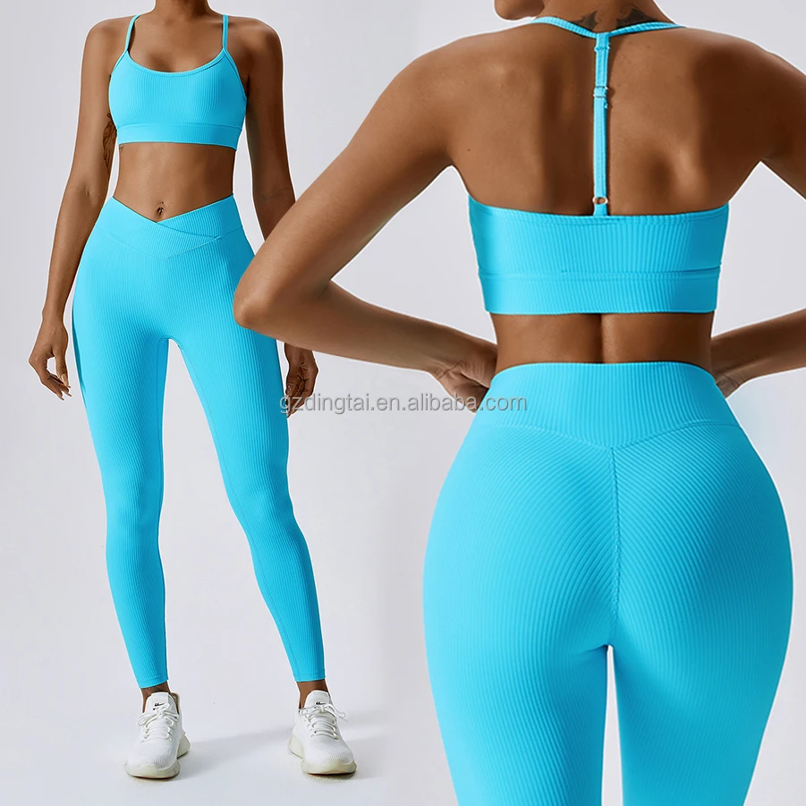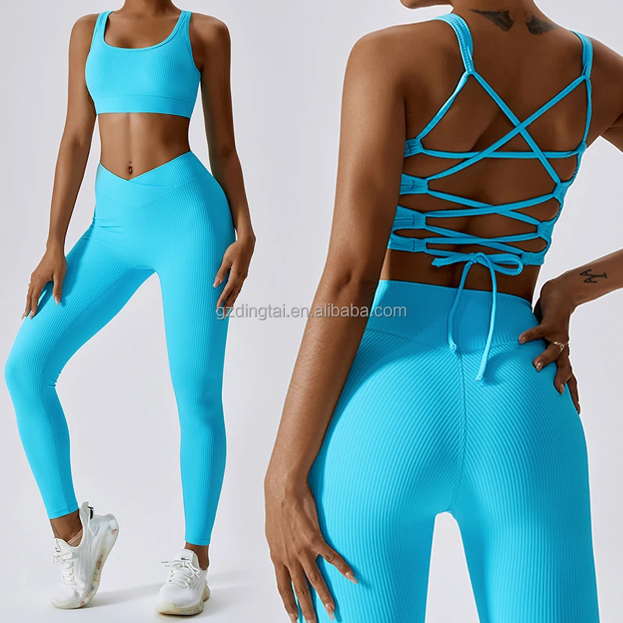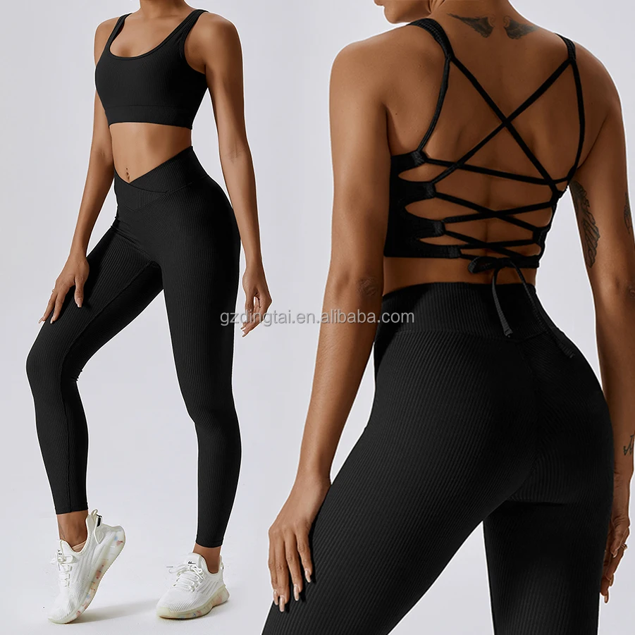 New Design Gym Clothing For Women Workout Yoga Set High Waist Sport Fitness Yoga Bra Legging Flares Pant Set