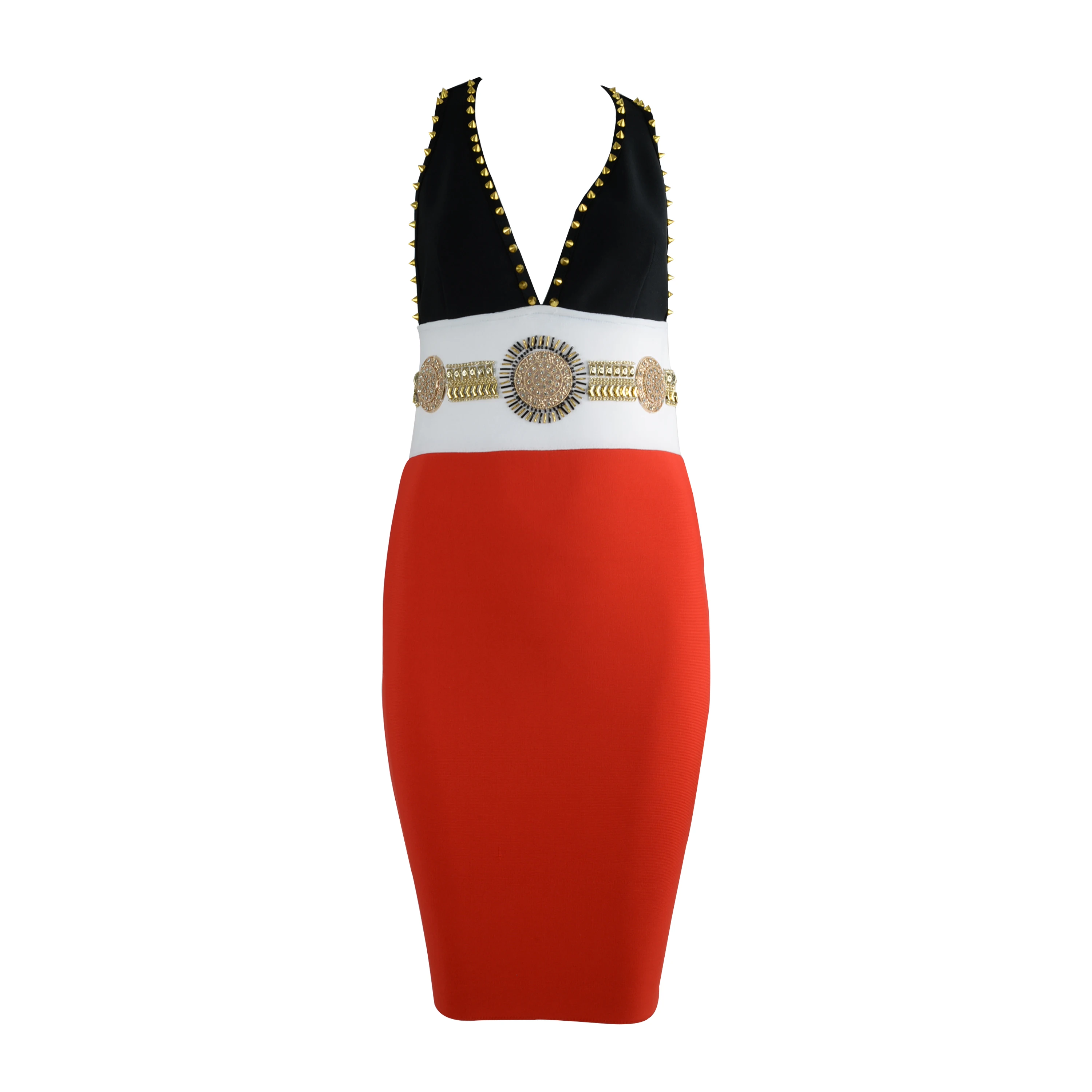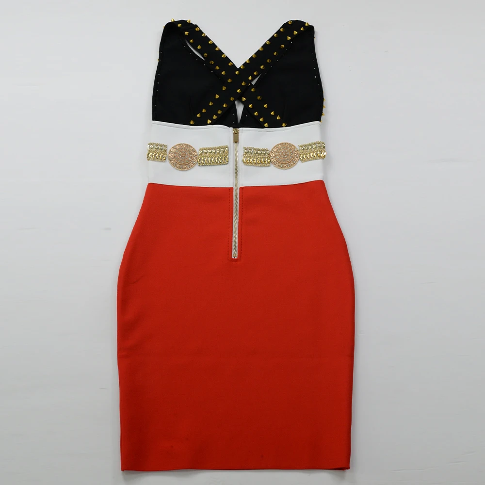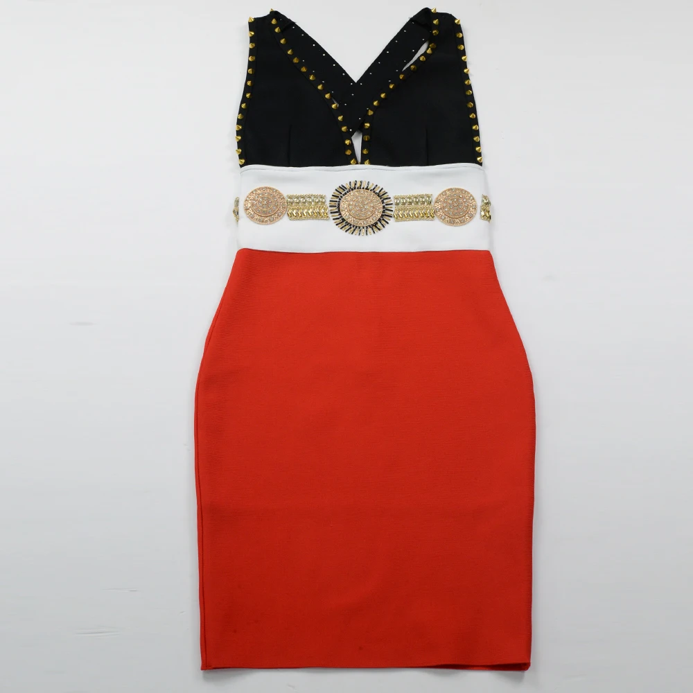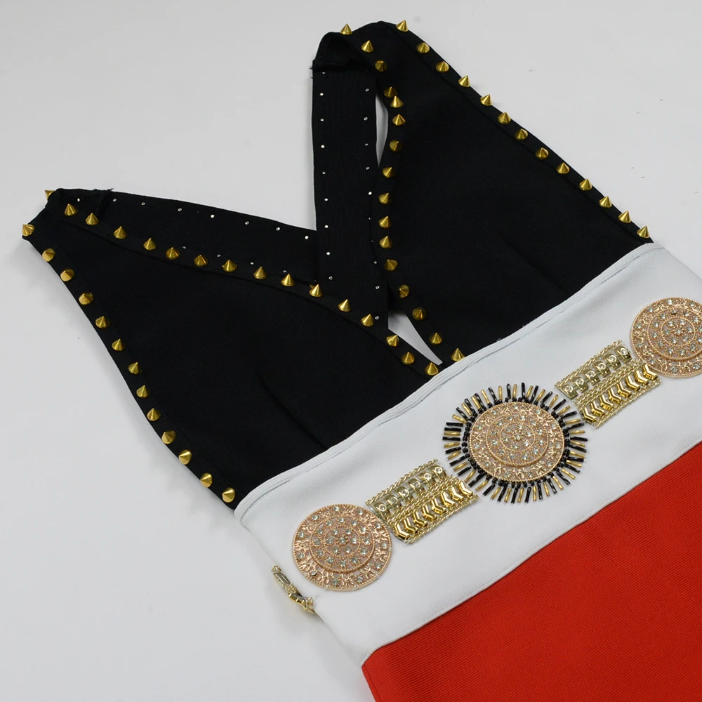 New design handmade metal beading rivets bodycon bandage dress evening party club casual dresses women dresses