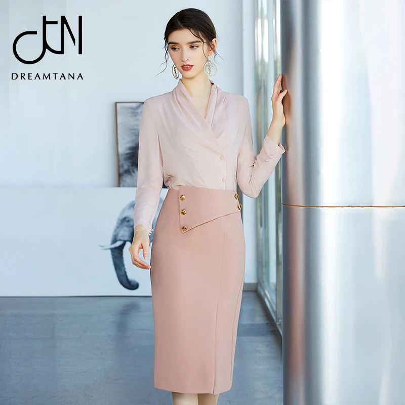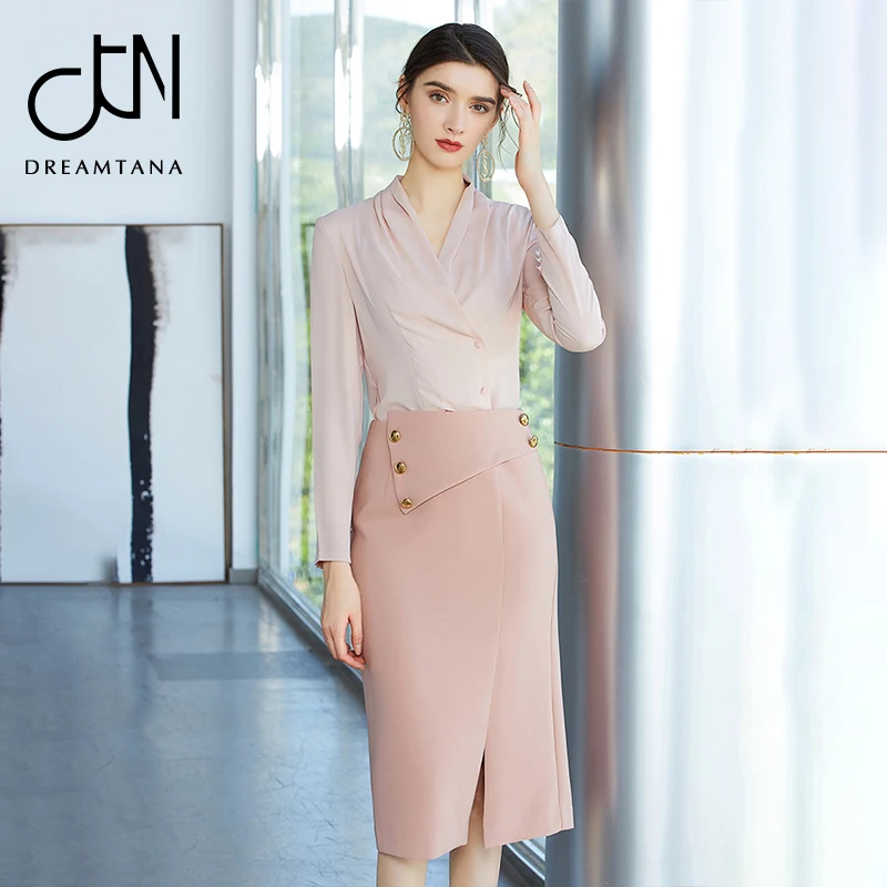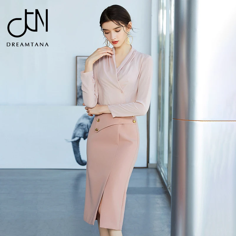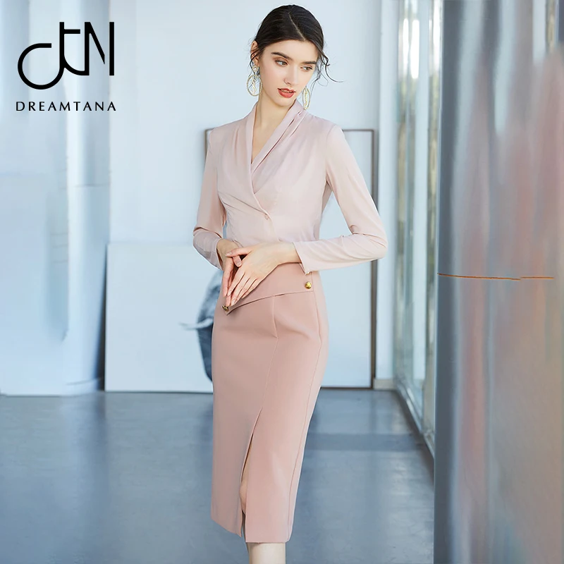 New design high quality material apricot simple office dress suits set for women