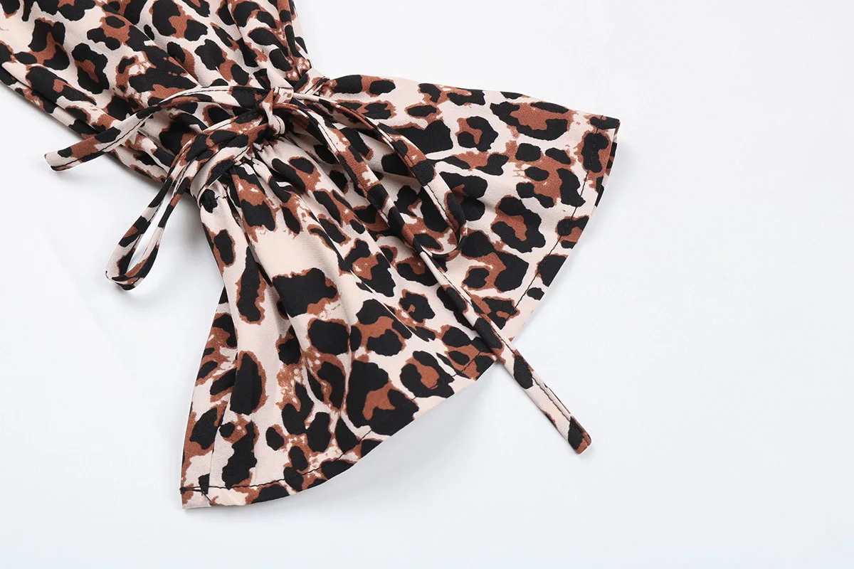 New Design Ladies Multi-color Women Leopard Long Sleeve Deep V Sexy Bodysuit