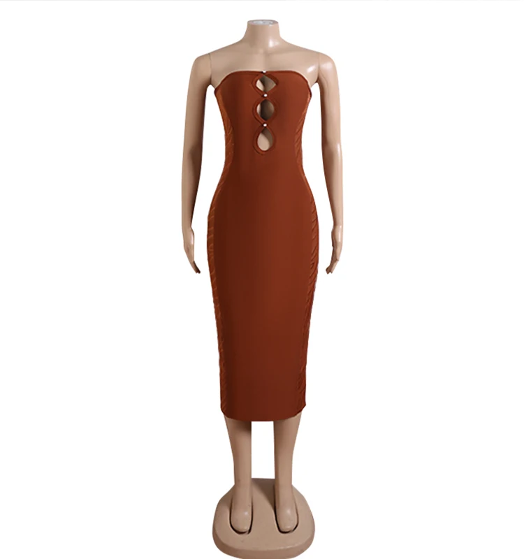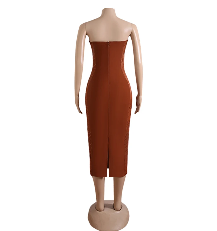 New design side mesh long dresses women cut out strapless sexy evening party dresses