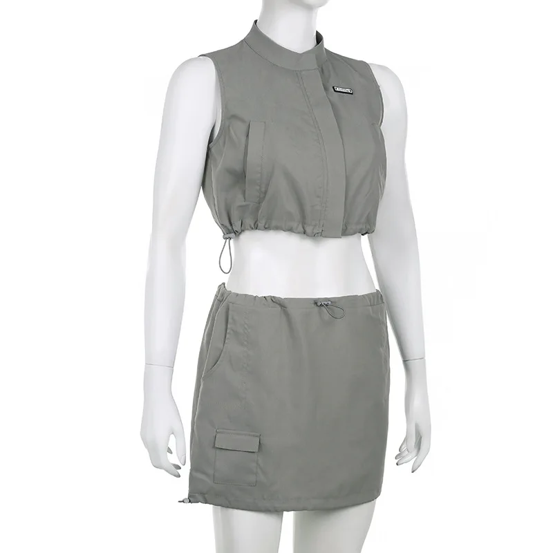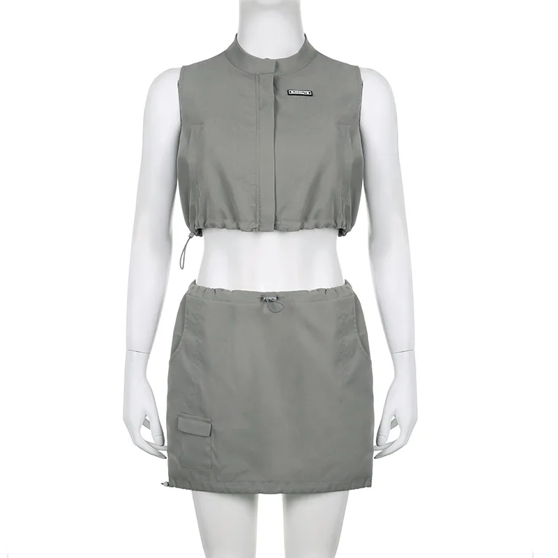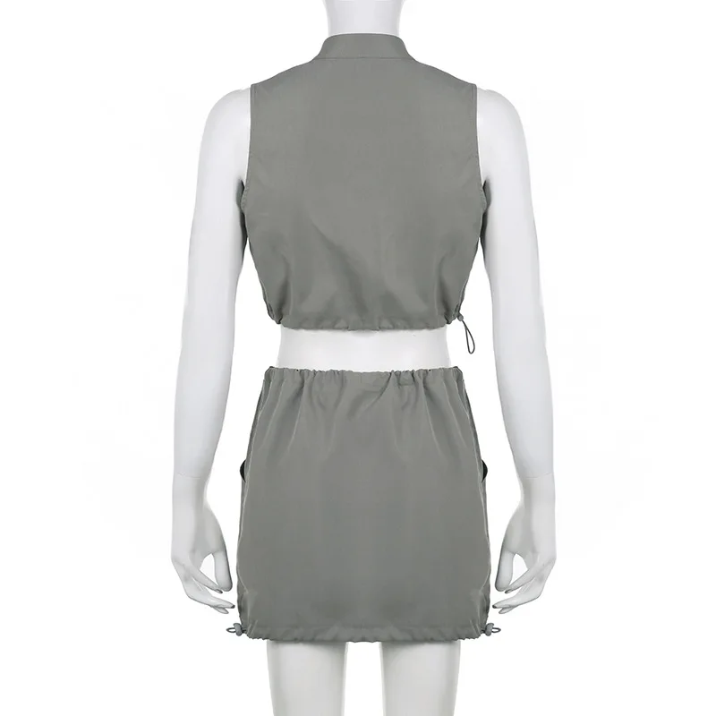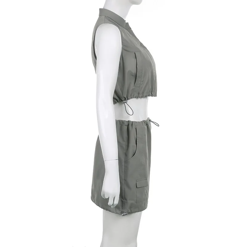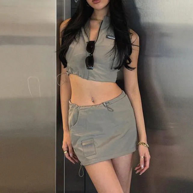New Design Women 2 Piece Set Sleeveless Women Crop Top Zipper Mini Skirt 2023 Women Fashion Streetwear Skirt Set