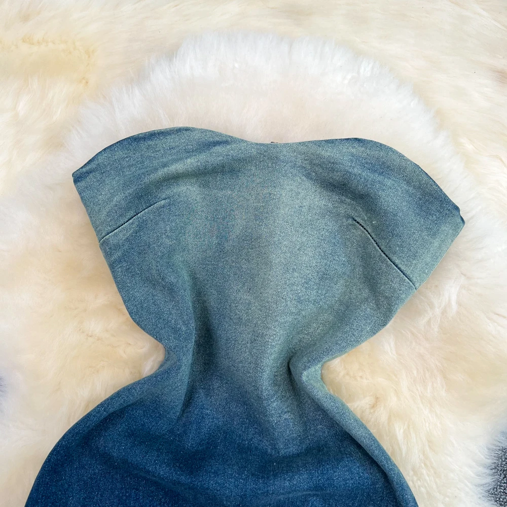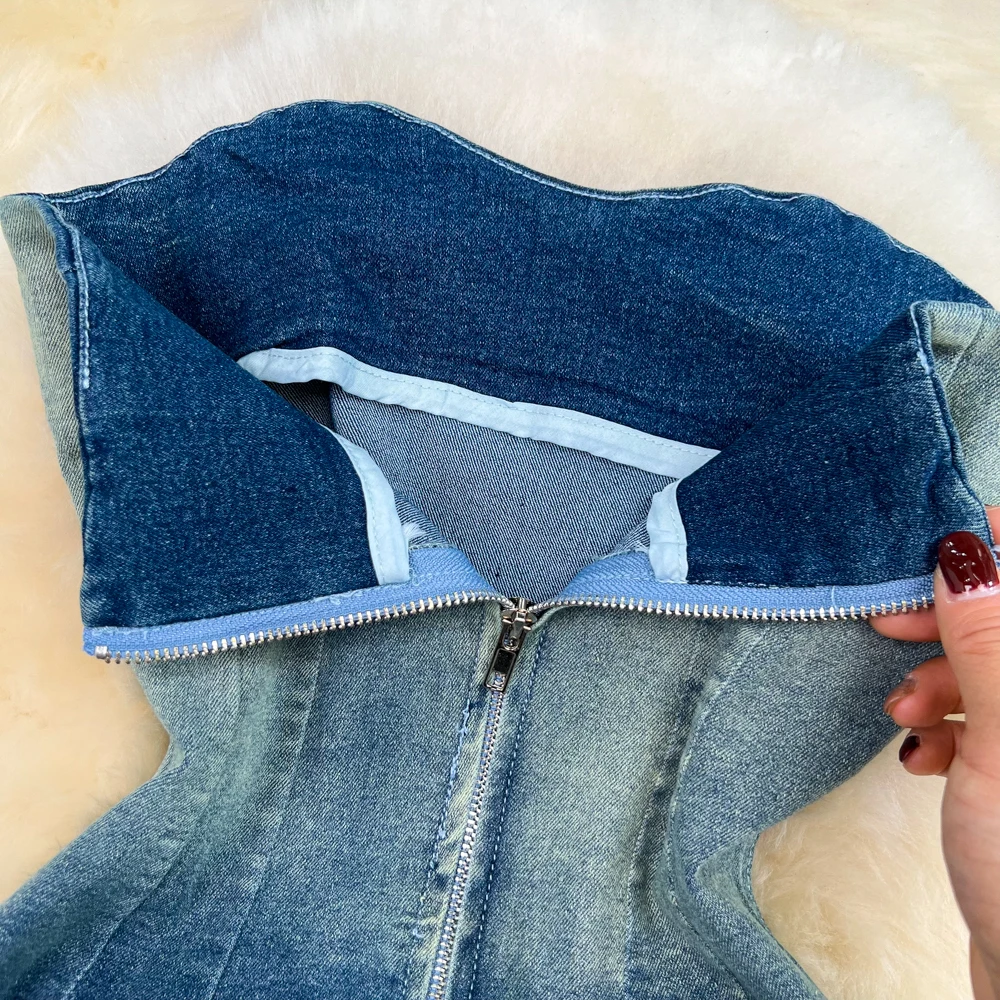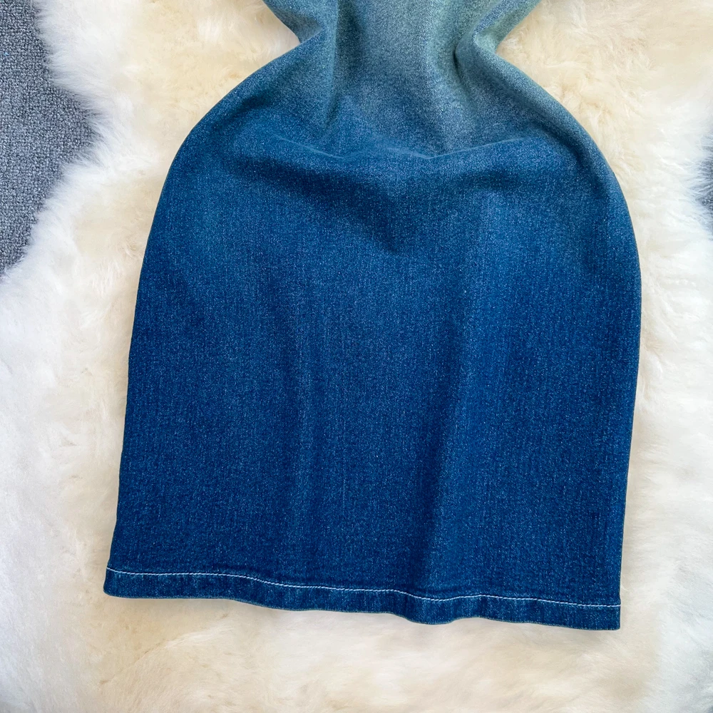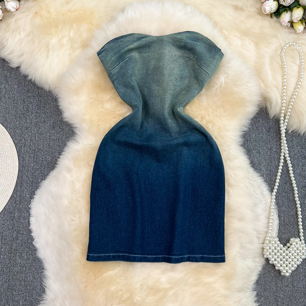 New Design Women's Denim Patchwork Dyed Dress Ladies Sling Tight-fitting Invisible Side Zipper Luxury Summer Clothes
