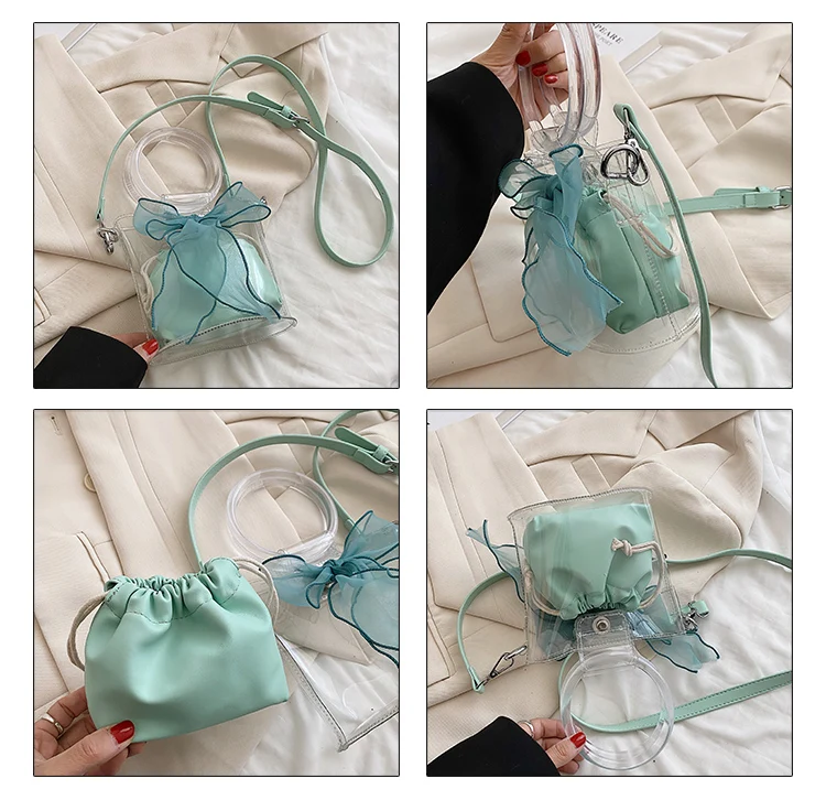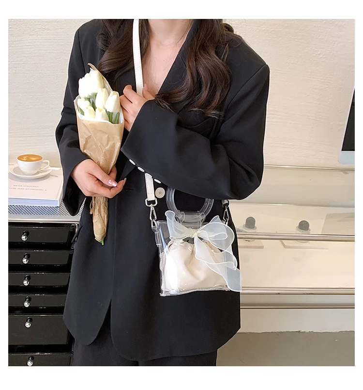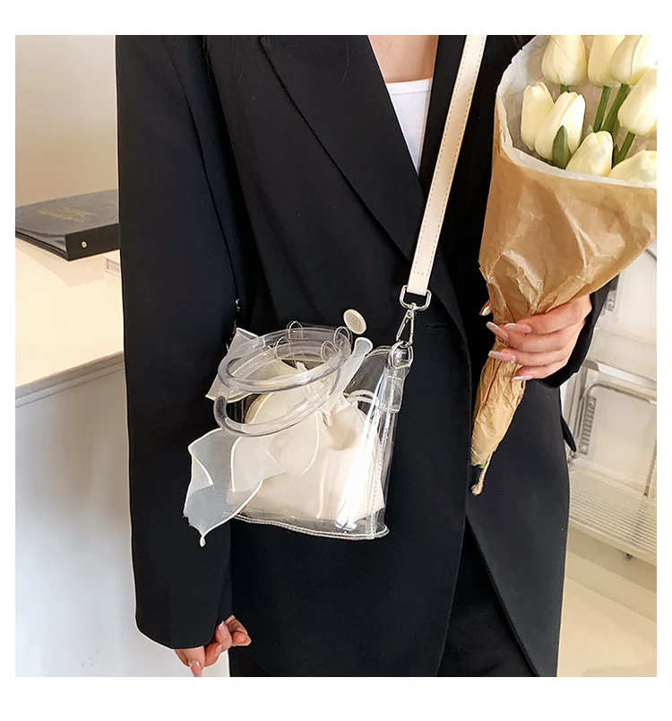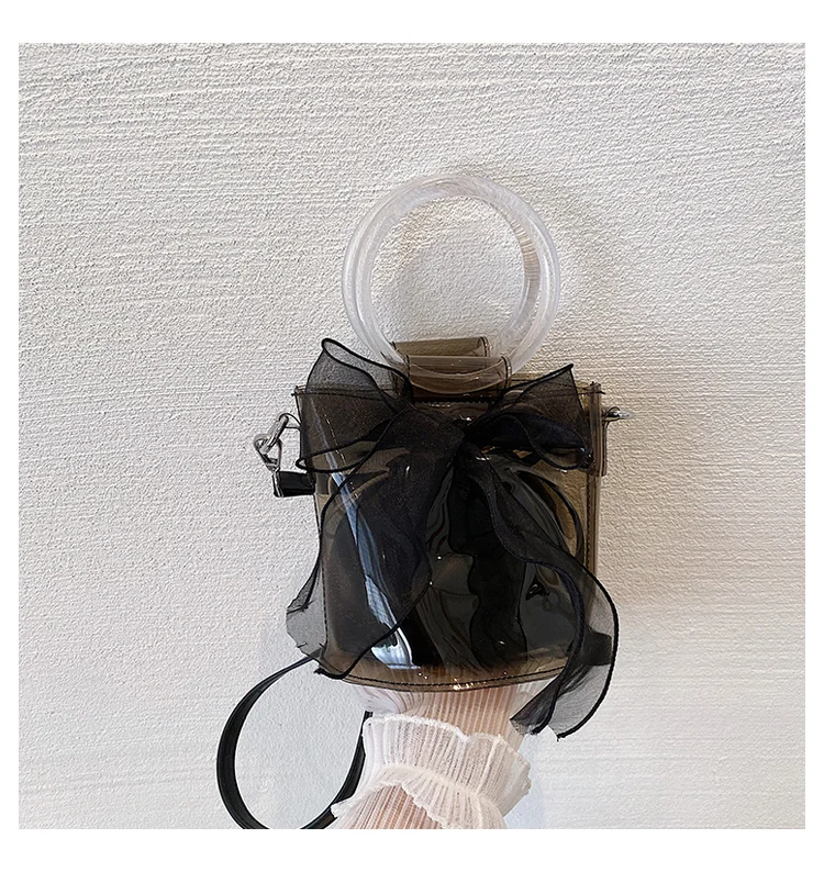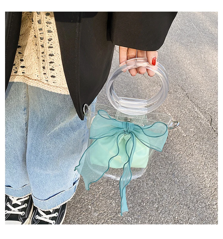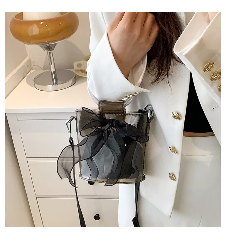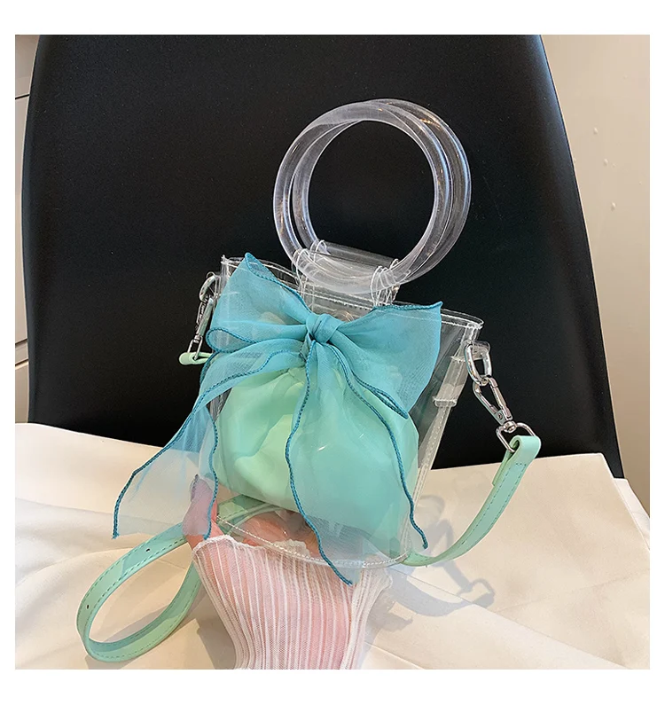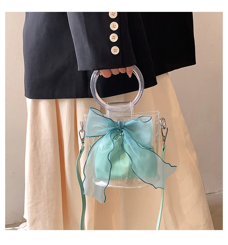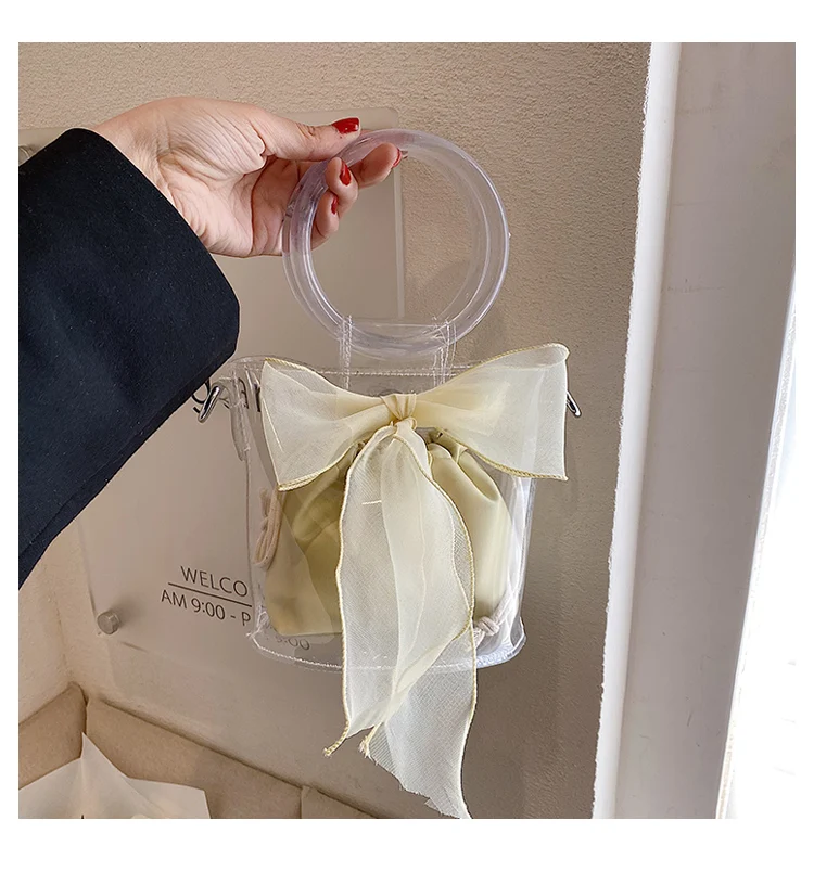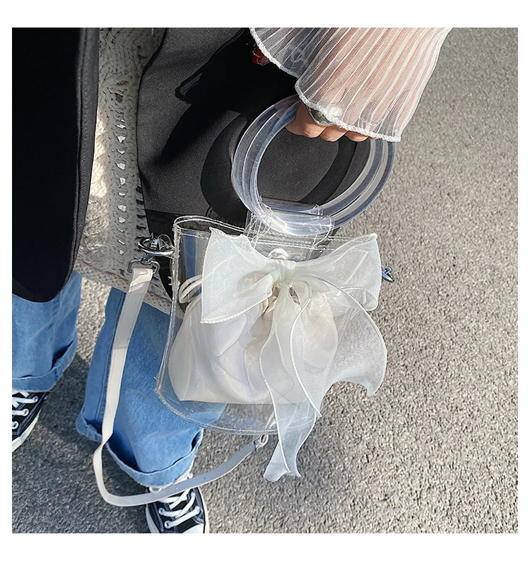 New Designer Clear Bucket Purses Young Lady Transparent Handbag Ladies Luxury Bow Bags for Females