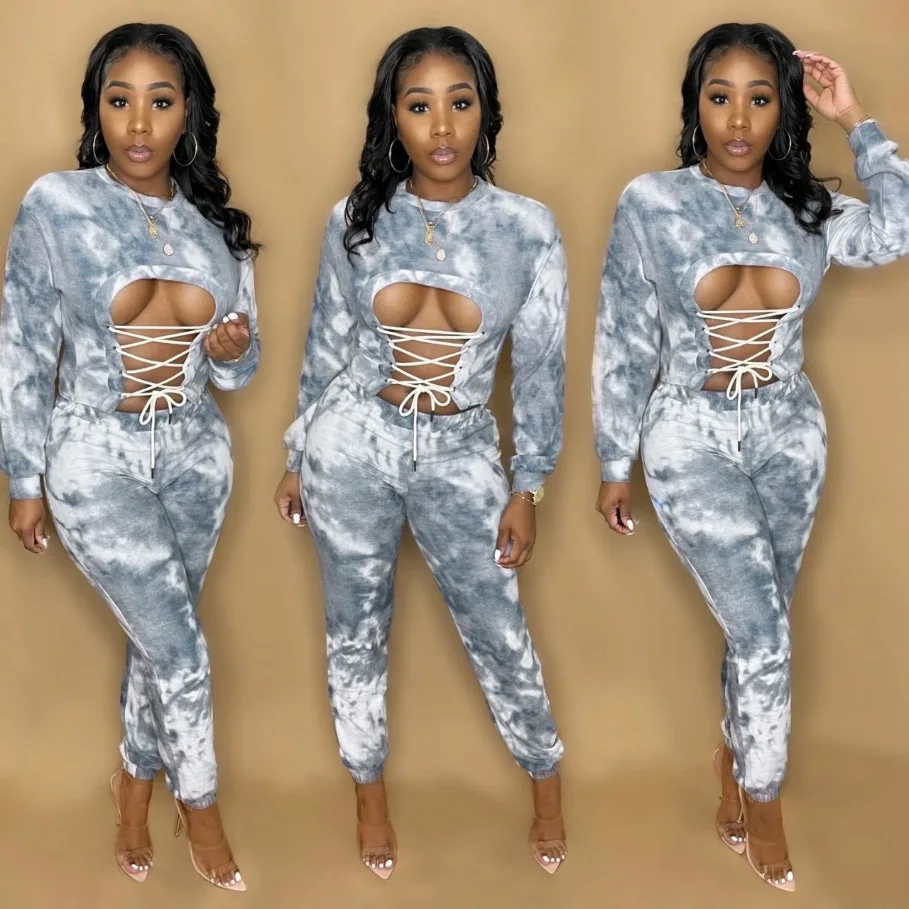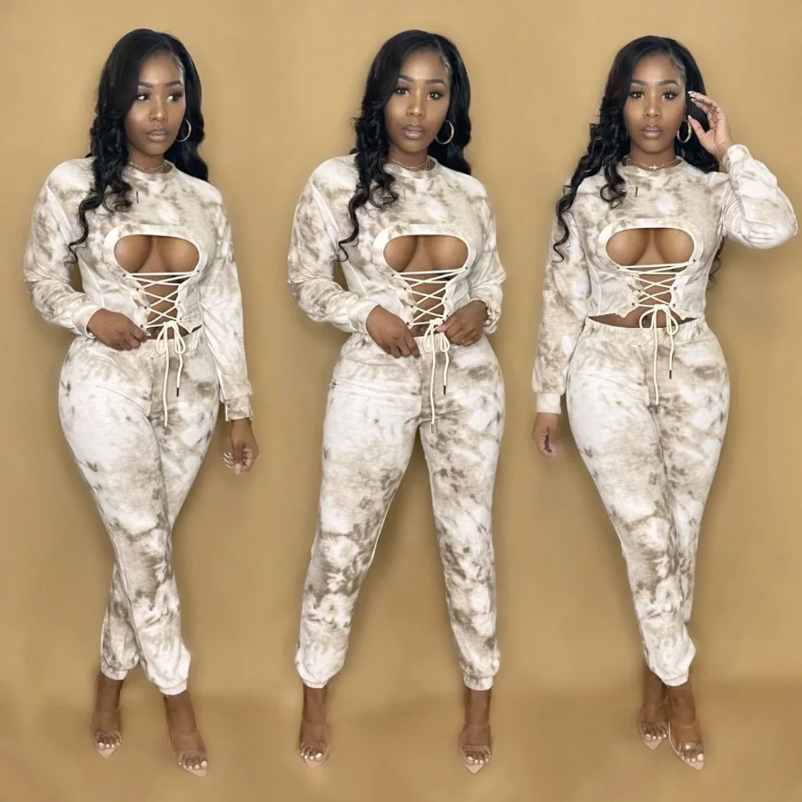 NEW European and American women's autumn 2023 sexy commuting two-piece set Hollow out bind