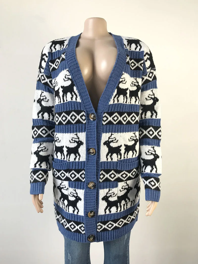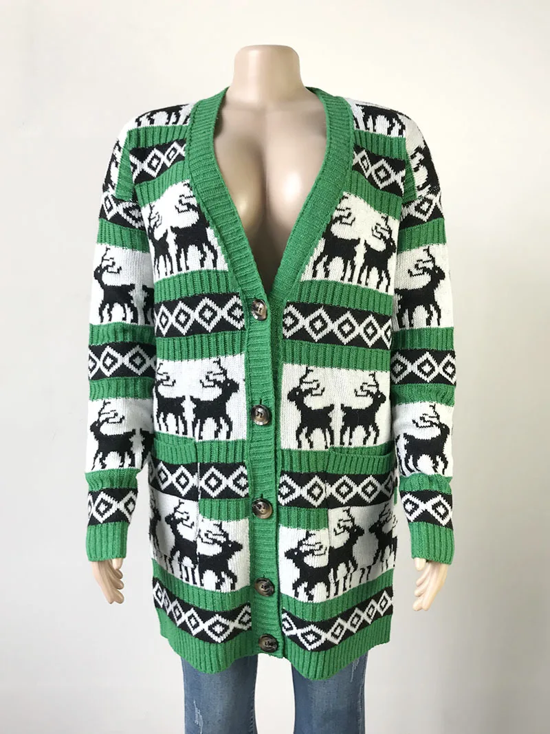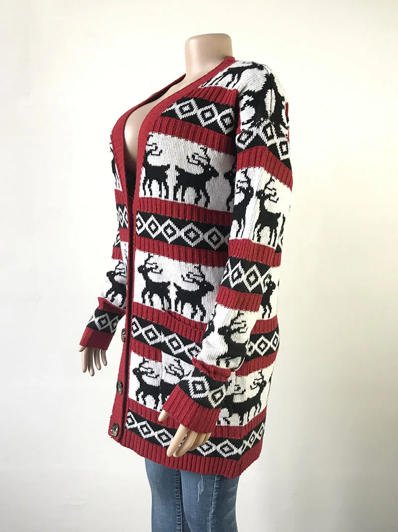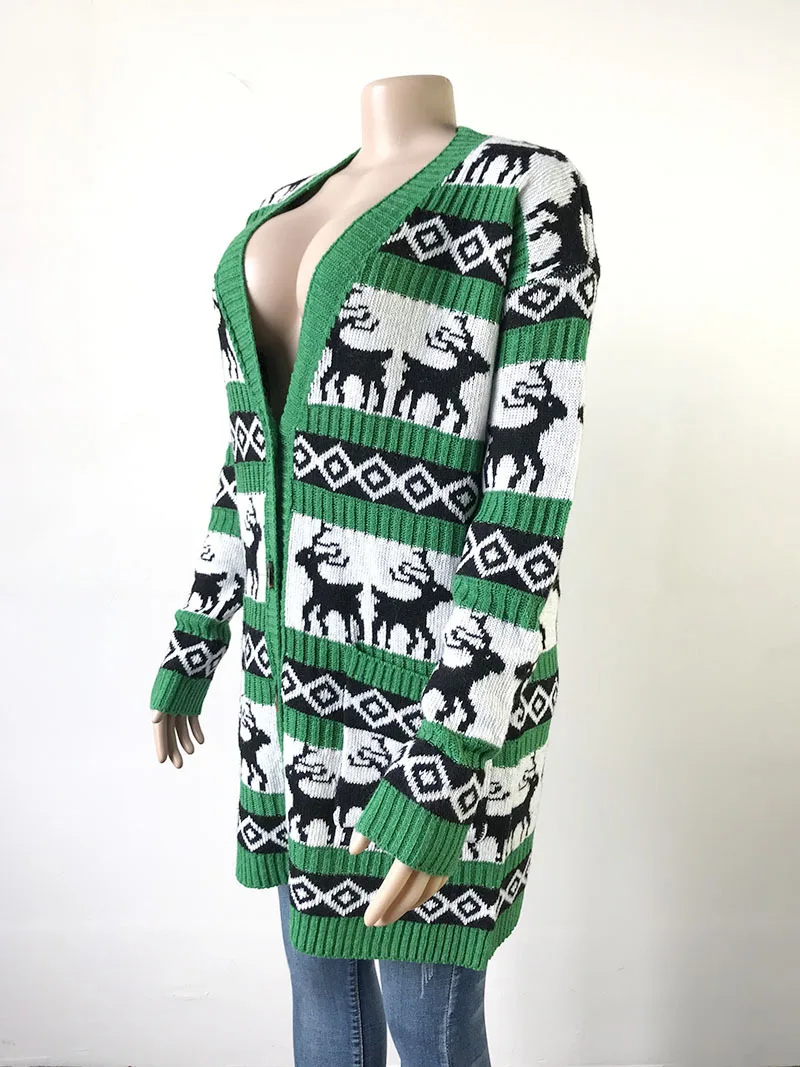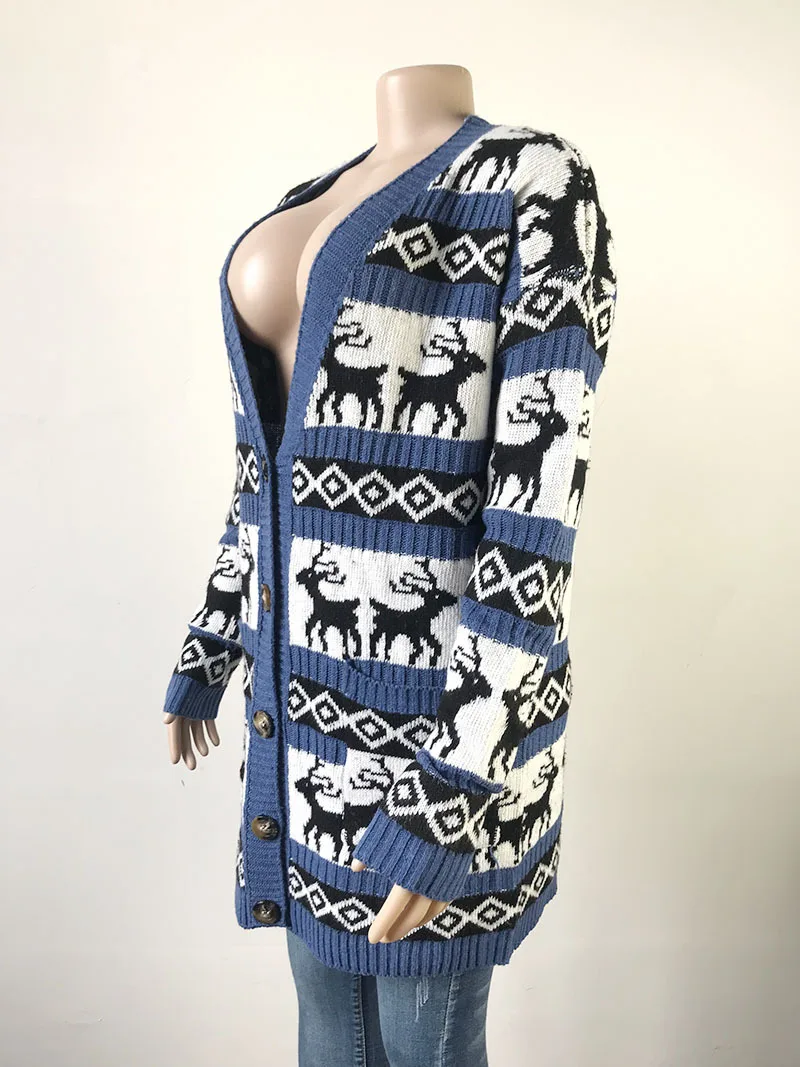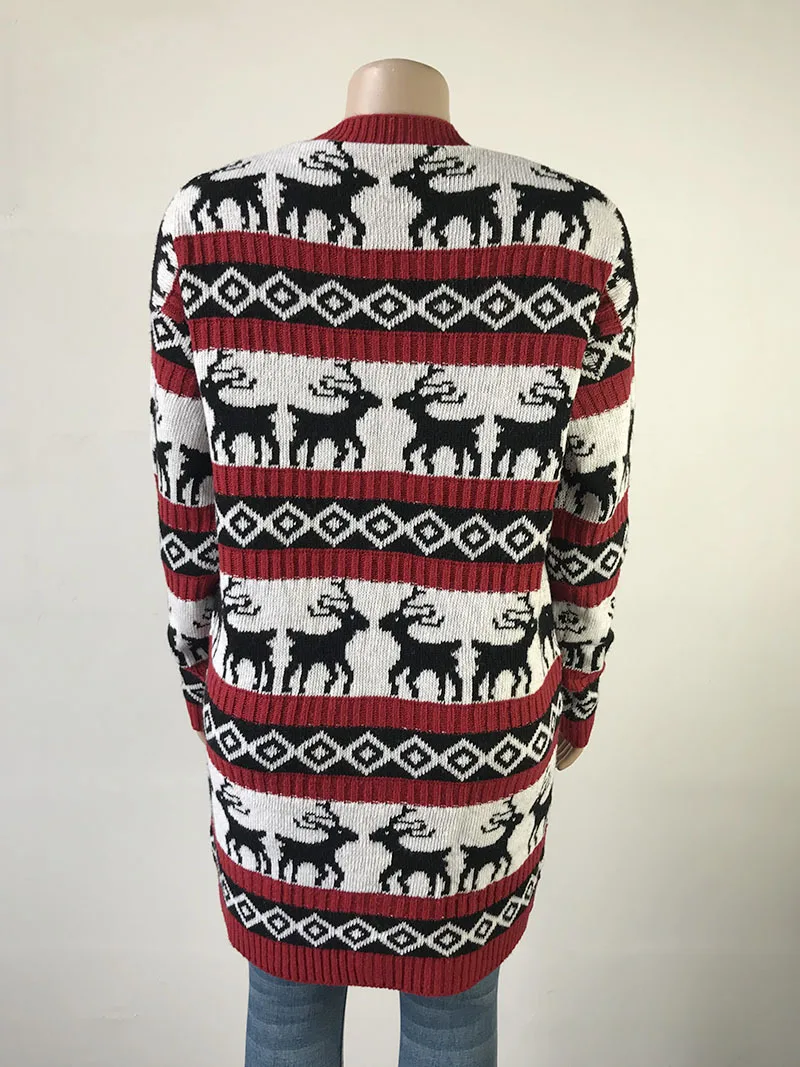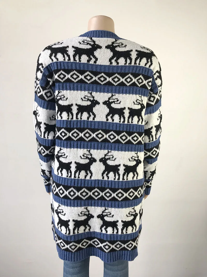 New Fall/winter Explosive Knitwear Christmas Fawn Cardigan Women's Sweaters Knitted Coat Mid-length Sweater Jacket Long sweater