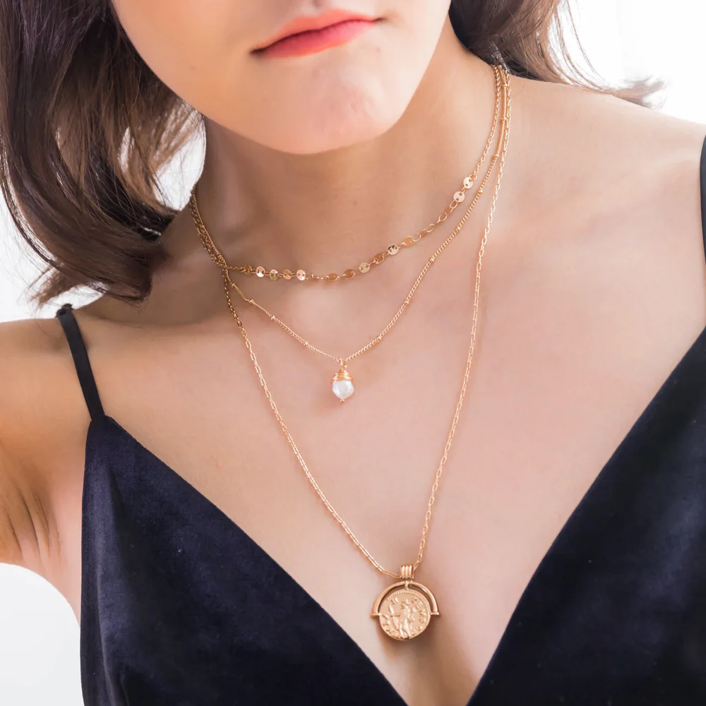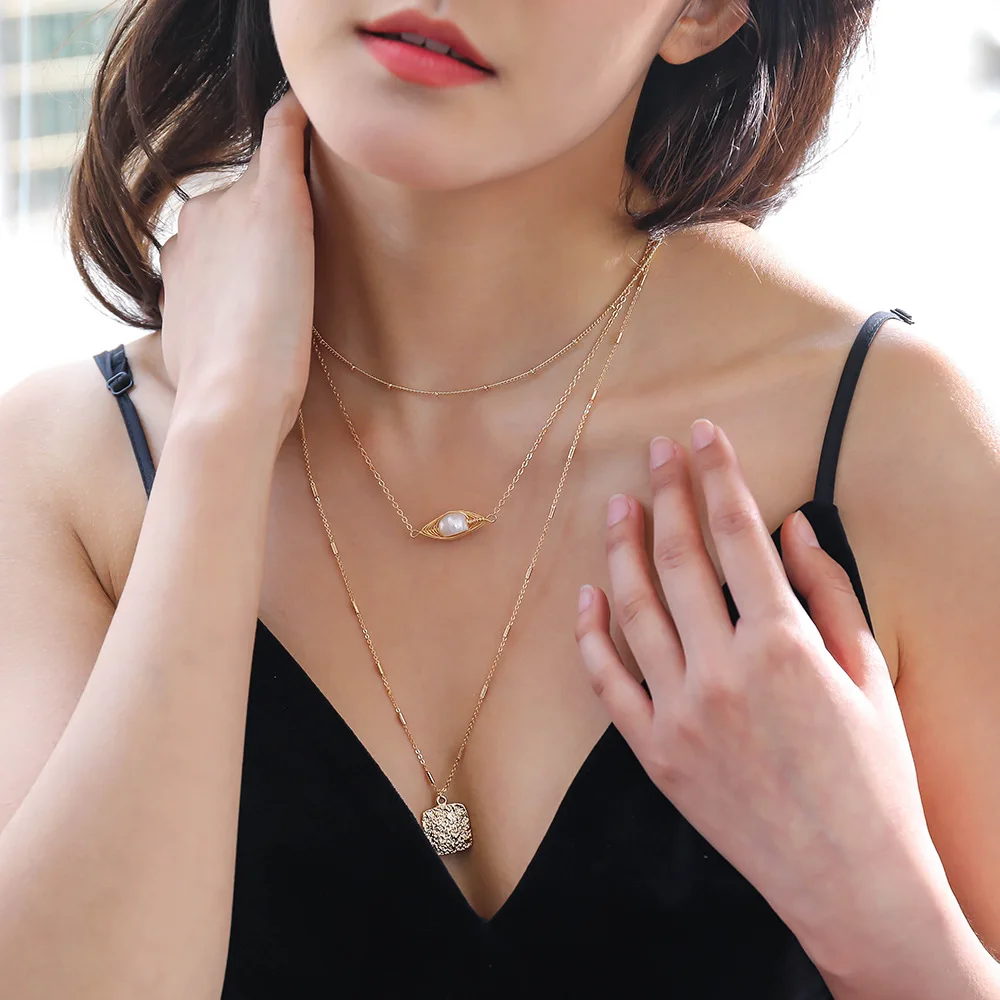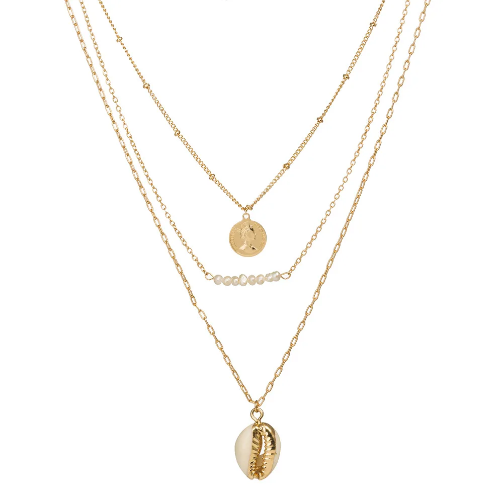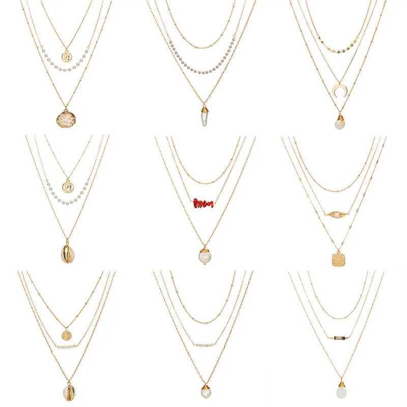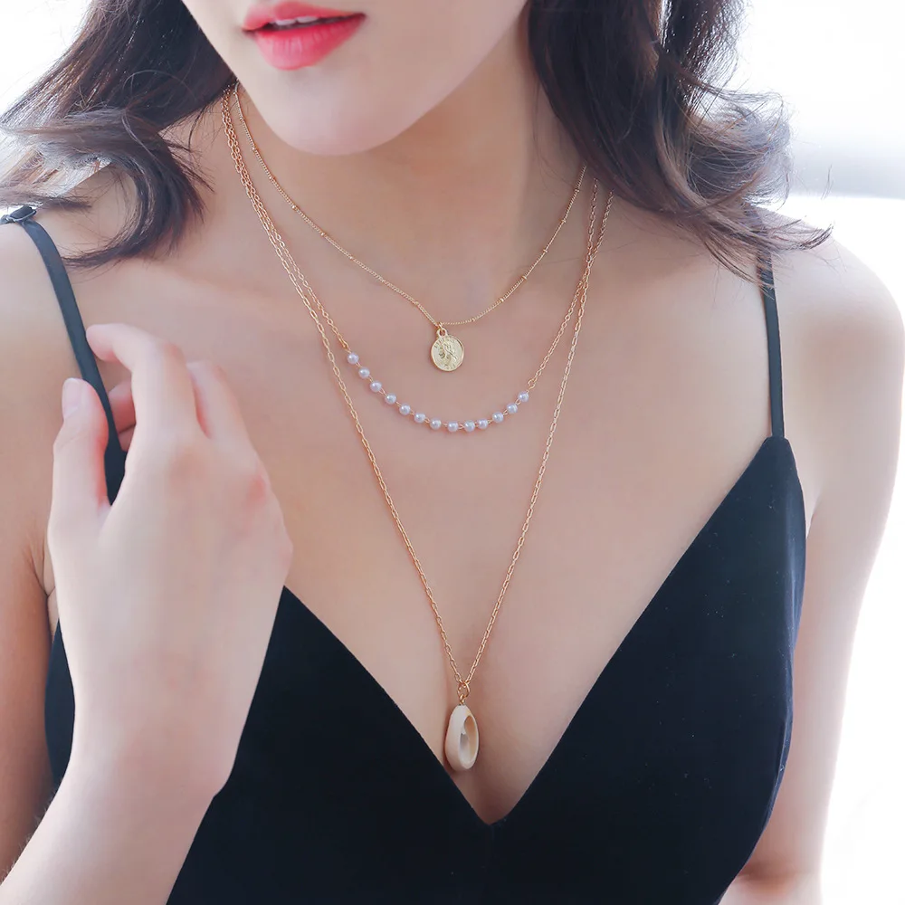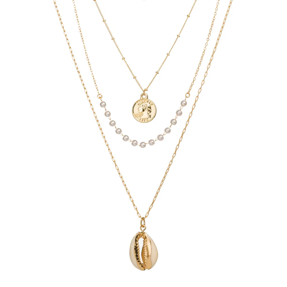 New Fashion Alloy Gold Clavicle Chian Shell Pearl Multilayer Necklace for Women Seashell Beach Boho Necklace Pendant Jewelry