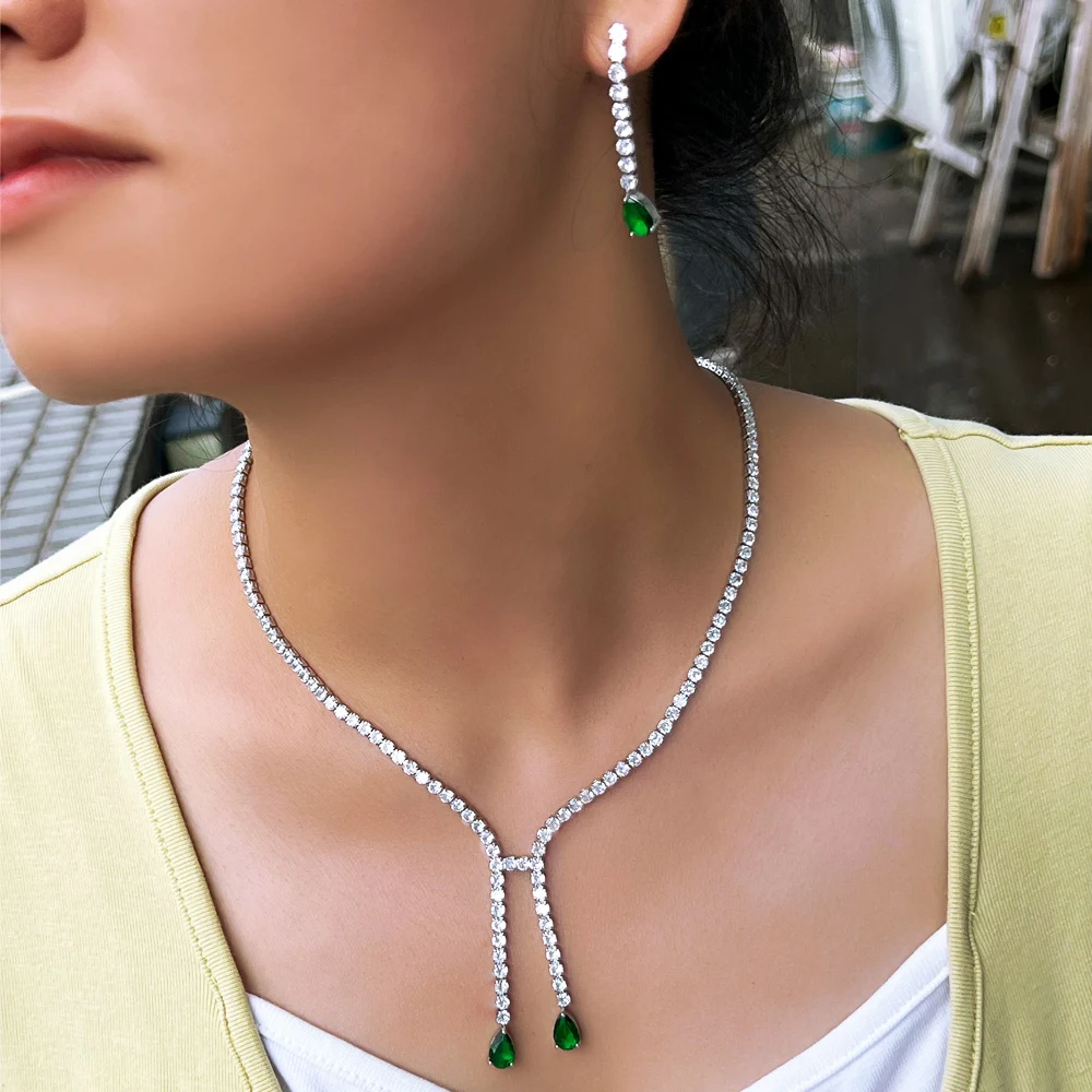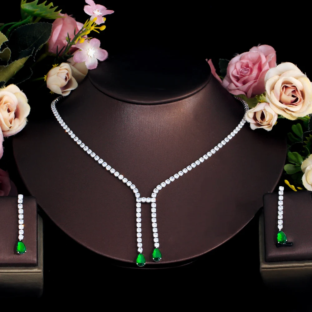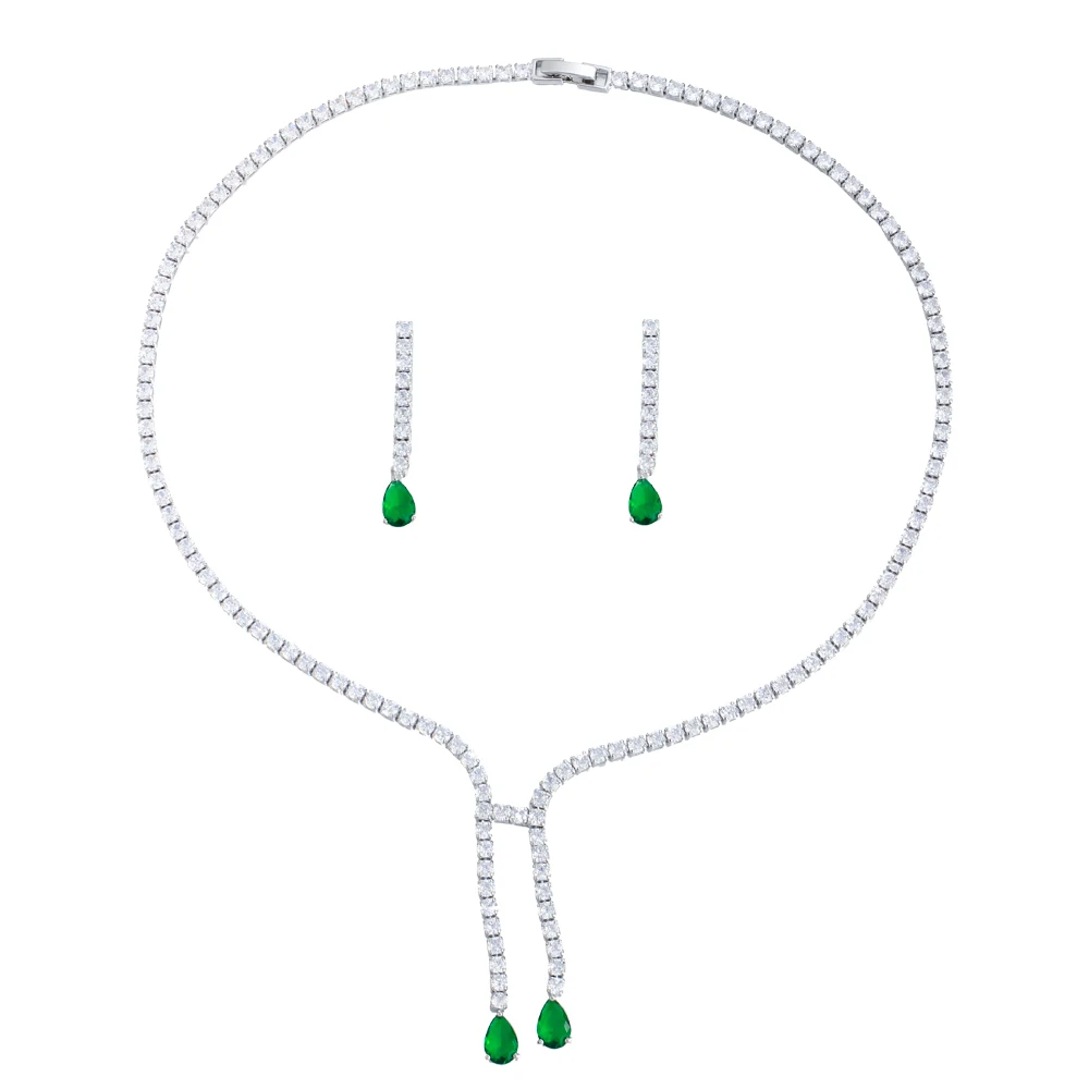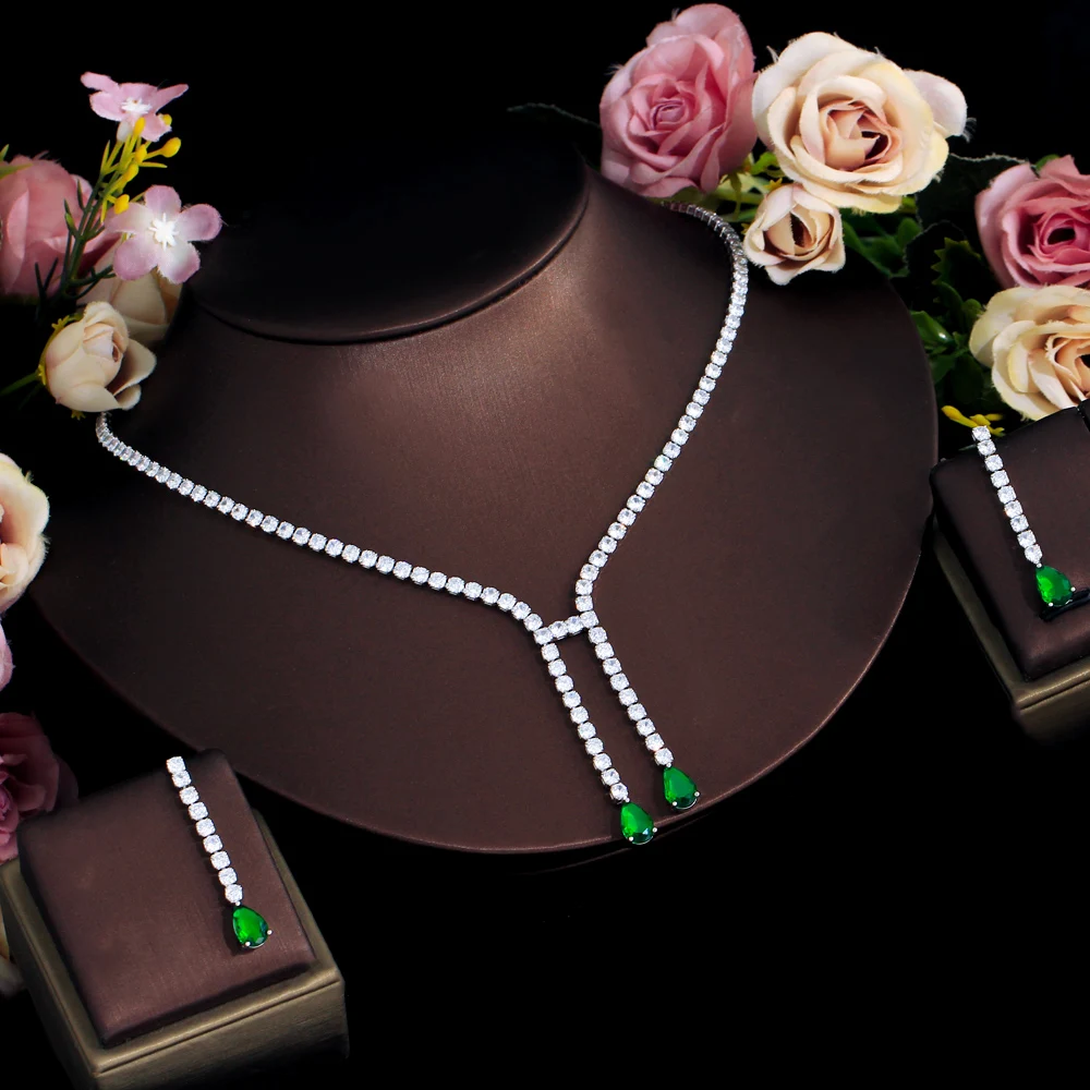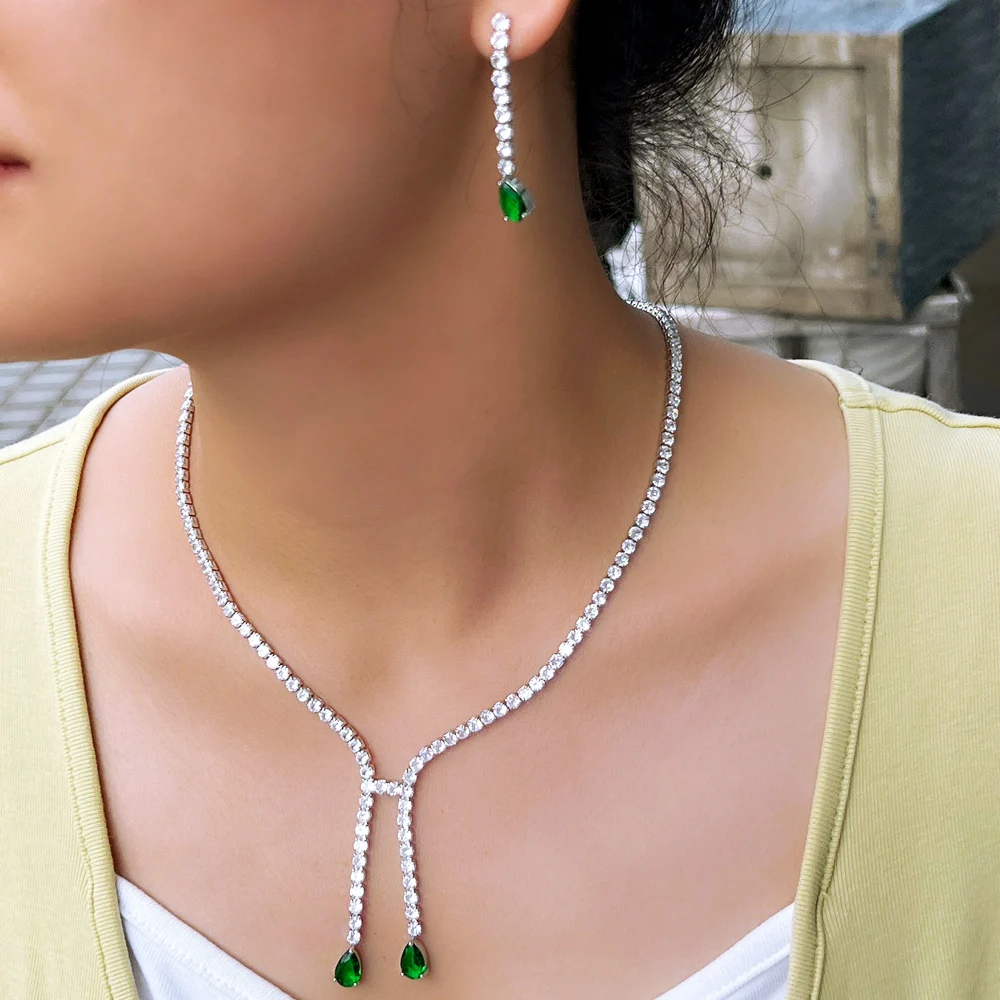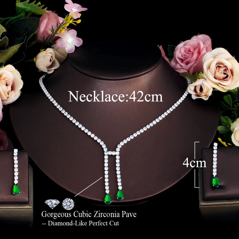 New Fashion Concise Style Green Stone Bridal Wedding Jewelry Set for Women Cubic Zirconia Party Low Price Jewellery