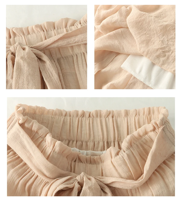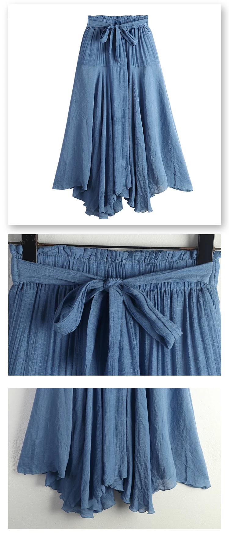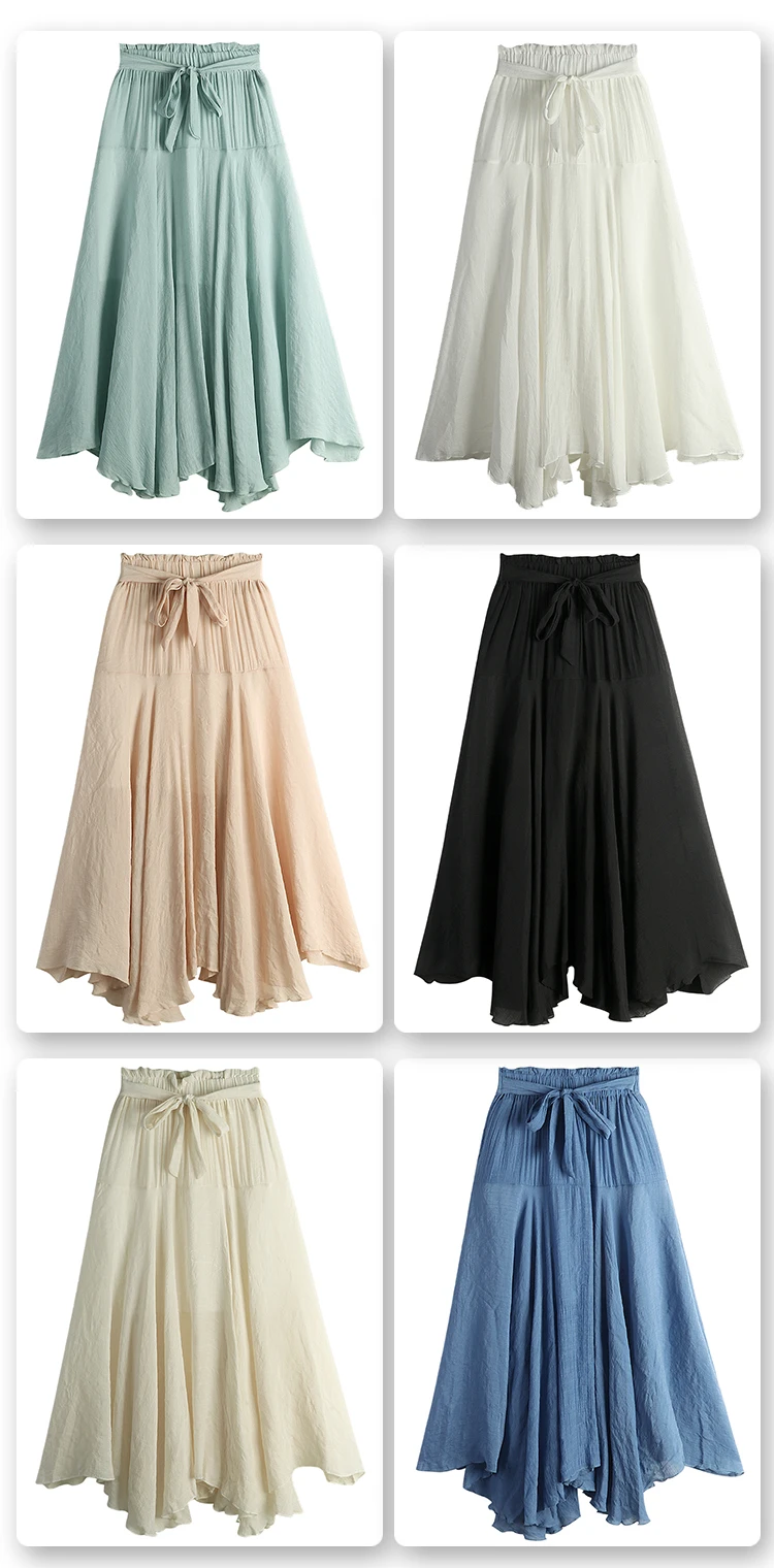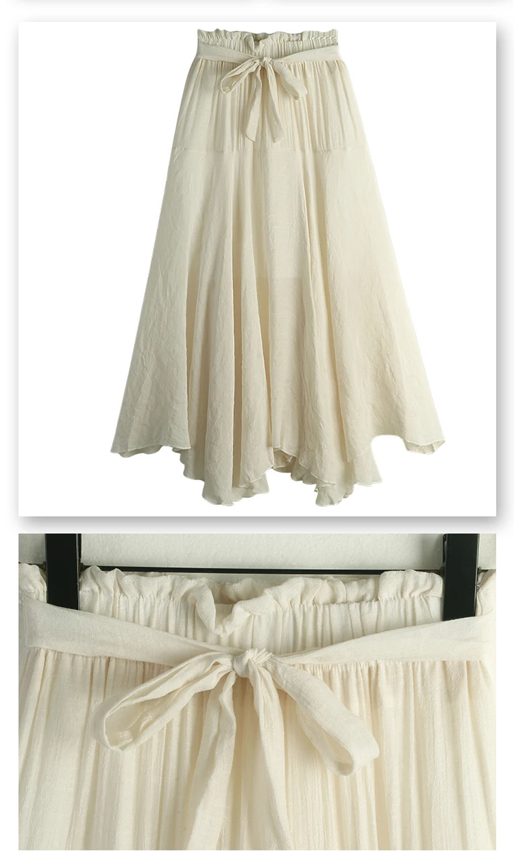 New Fashion Cotton Linen High Waist Skirt Women Solid Color Sashes Irregular Shift Patchwork Pleated Faldas Female White Black