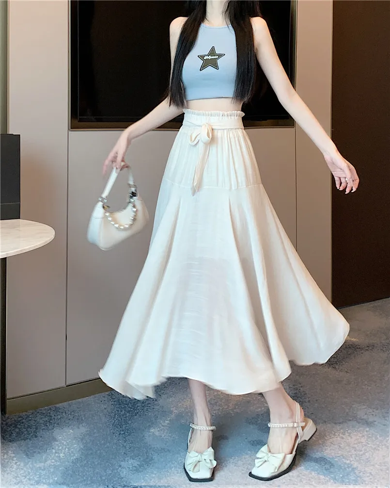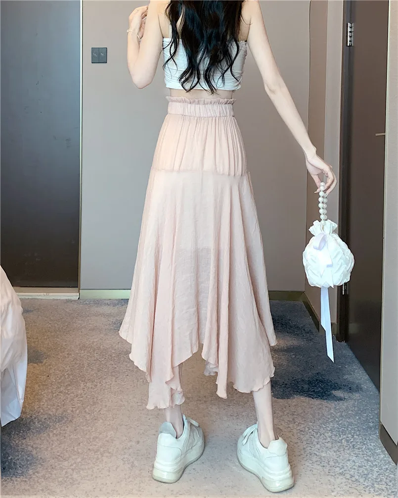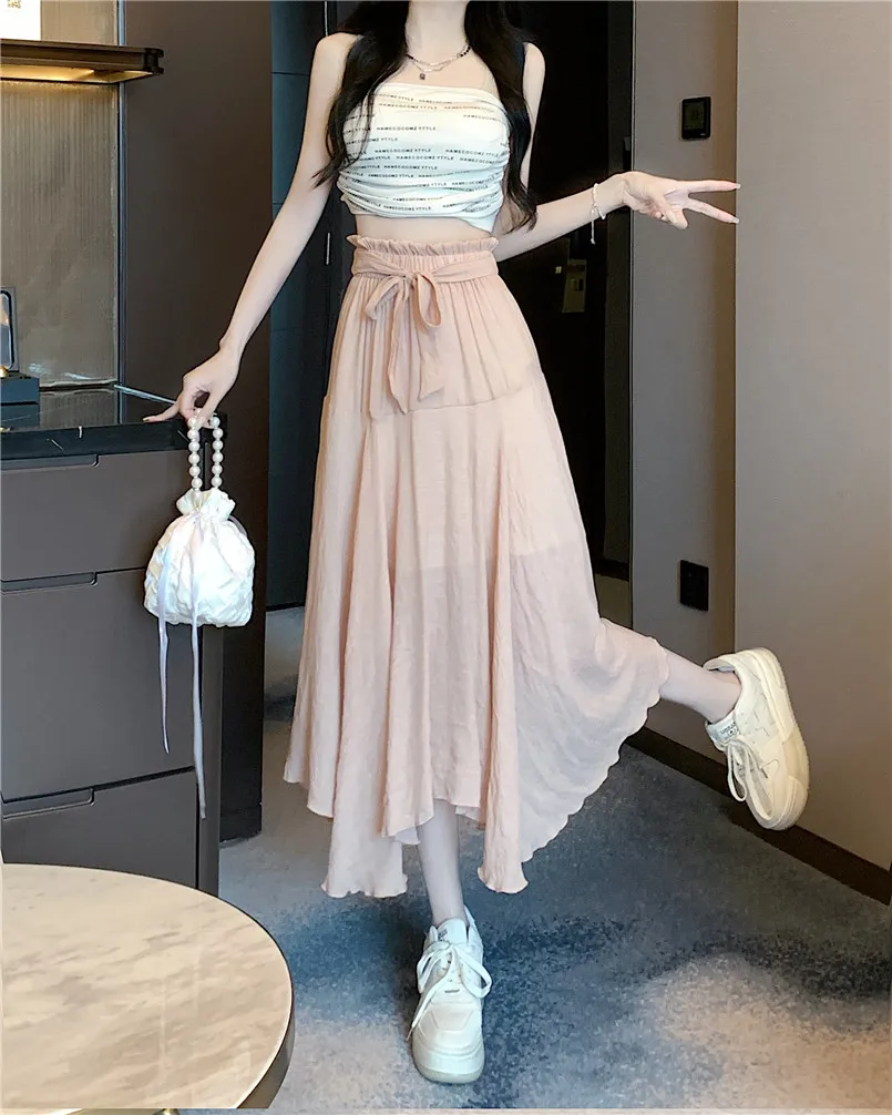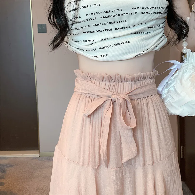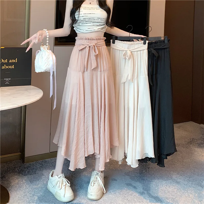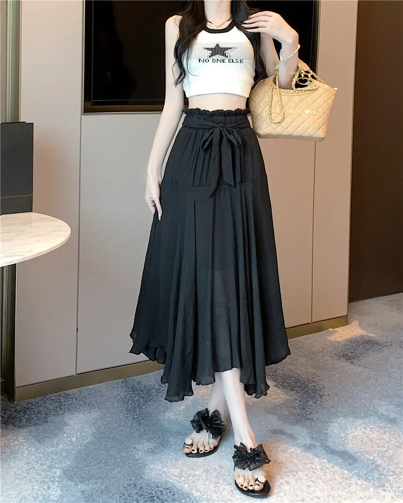 New Fashion Cotton Linen High Waist Skirt Women Solid Color Sashes Irregular Shift Patchwork Pleated Faldas Female White Black