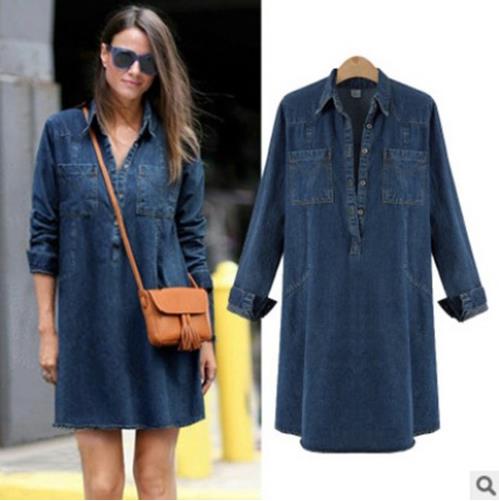 New Fashion European Women Spring Slim Long Denim Dress Ladies Plus Size Loose Casual Dress Girls Summer Jeans Clothing