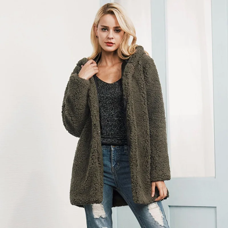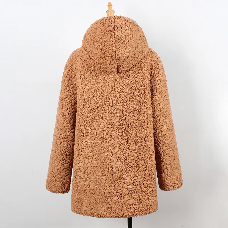 New Fashion Fleece Fuzzy Short Wool Coat Women Faux Fur Jacket Teddy Coat with Hooded