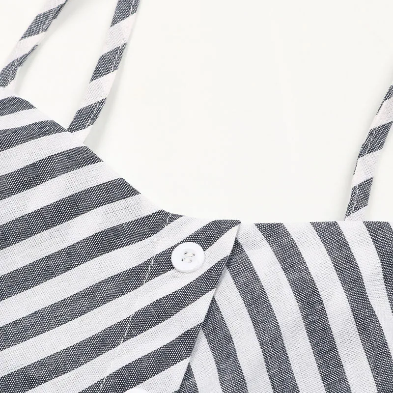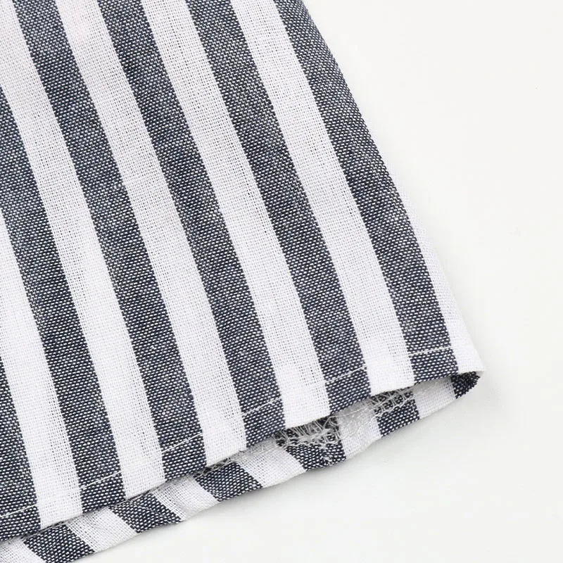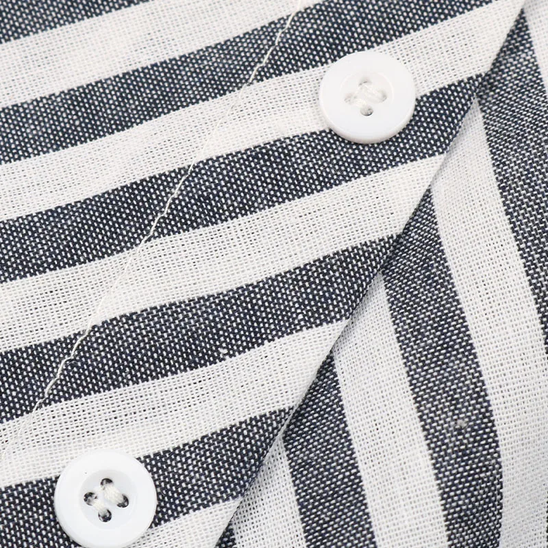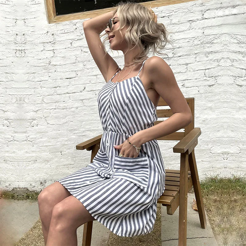 New Fashion Ladies Spaghetti Strap Loose Dress Women Casual Pocket Backless Linen Short Sleeve Stripe Shirt Dress
