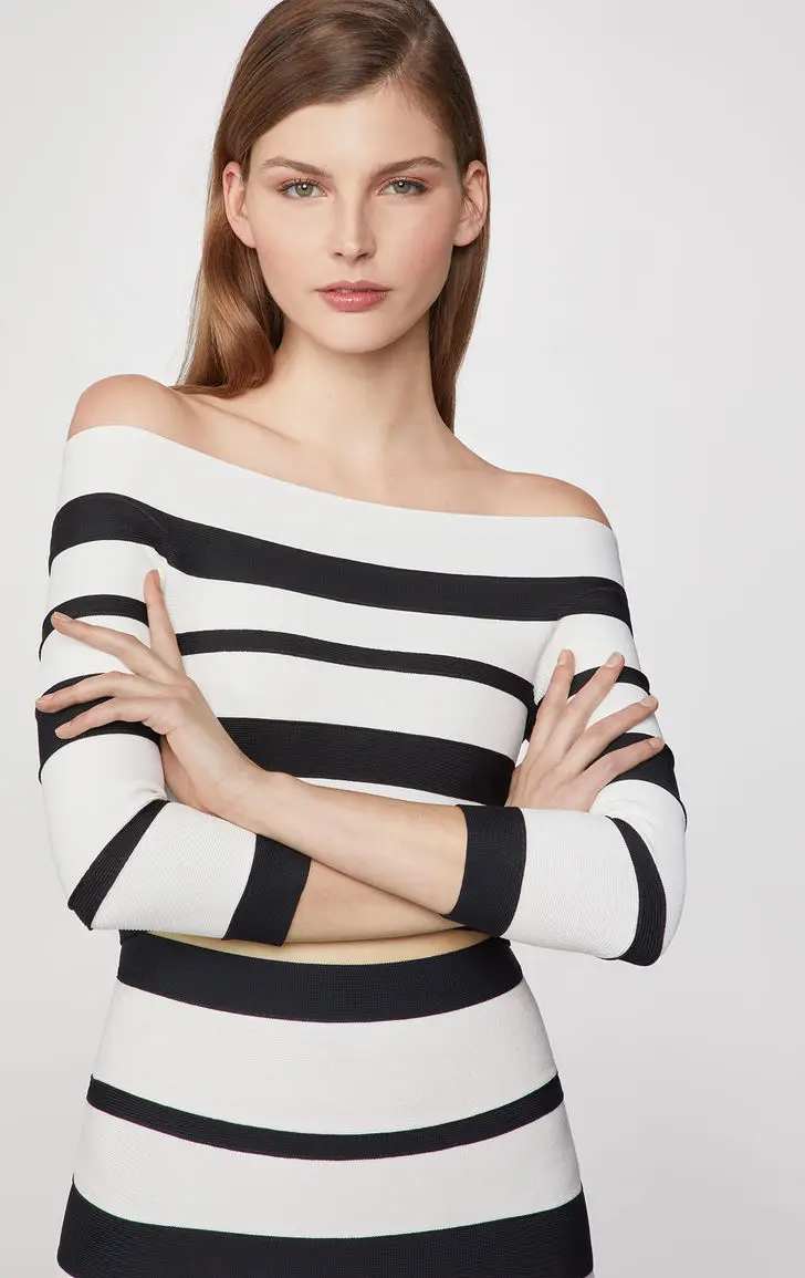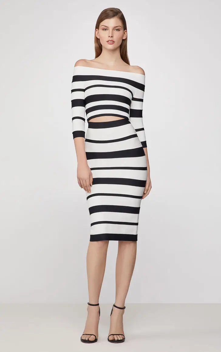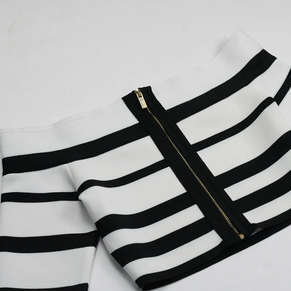New fashion off-shoulder stripe two-piece bandage dress evening party elegant women 's casual dresses