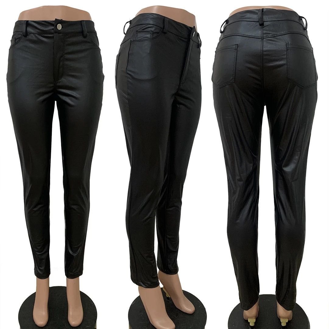 New Fashion Sexy Casual Shiny Tight Black Leather Legging Pants For Women