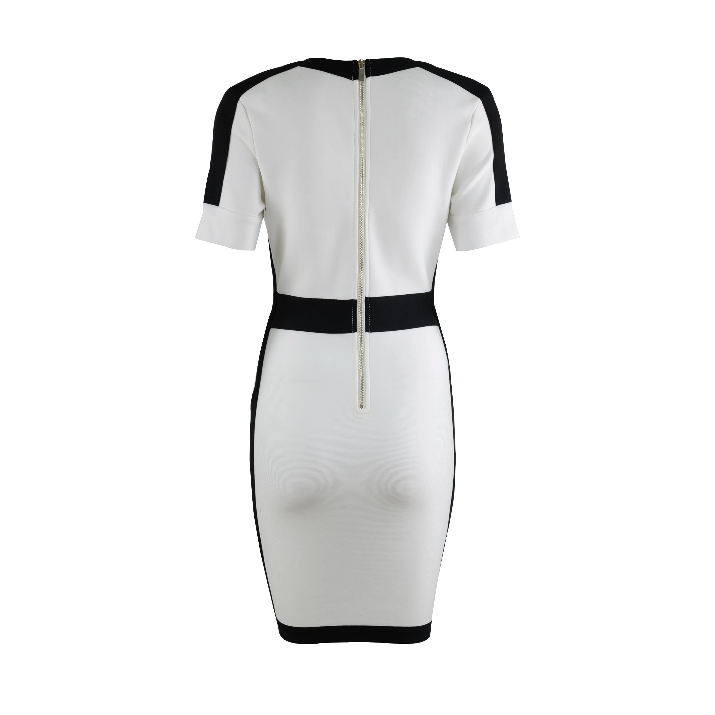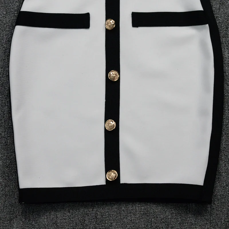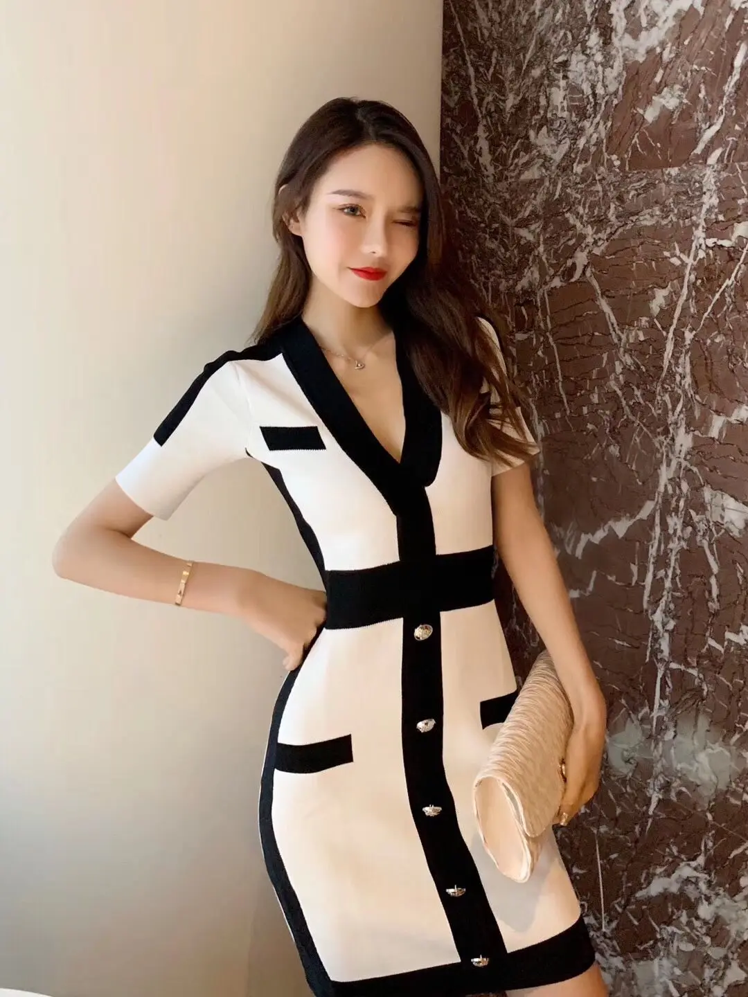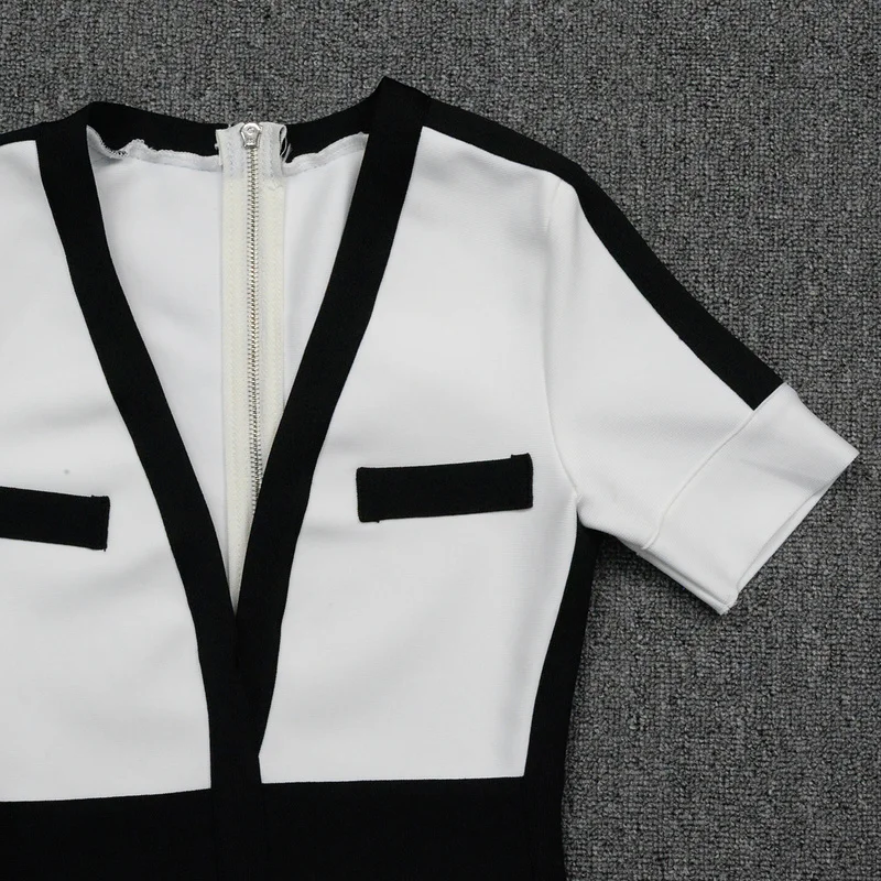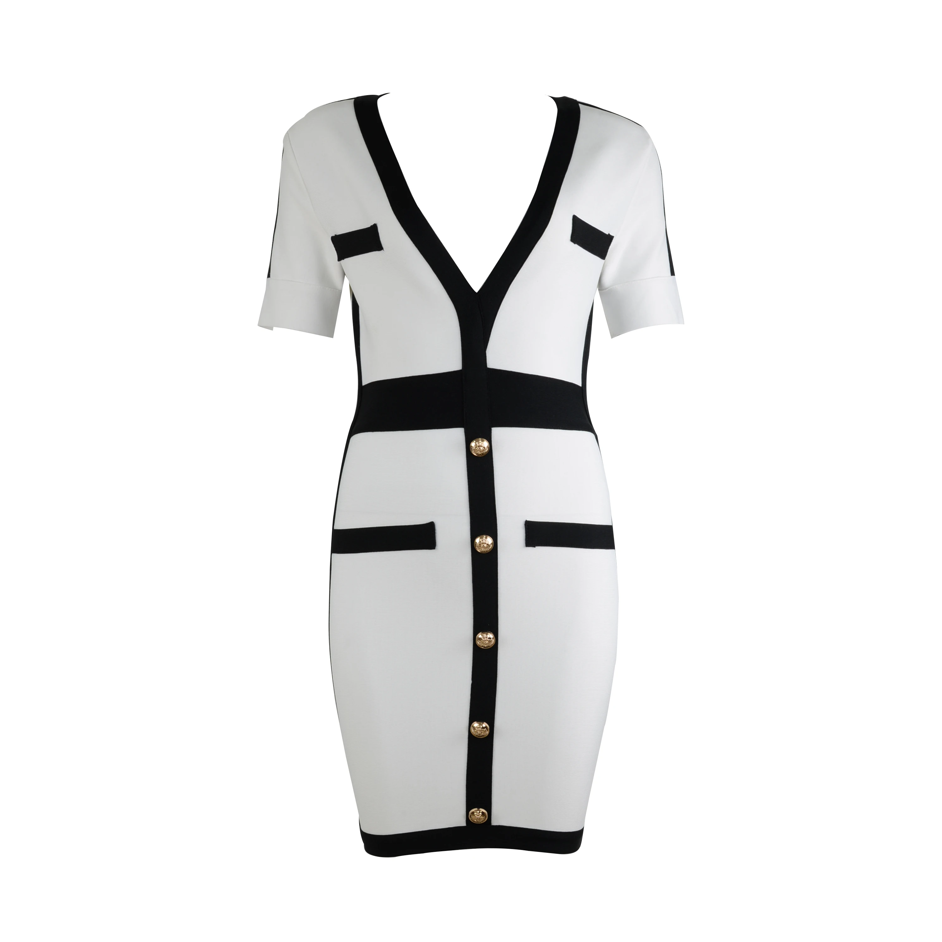 New fashion short sleeve casual dress deep v-neck button white sexy office women 's bandage dress