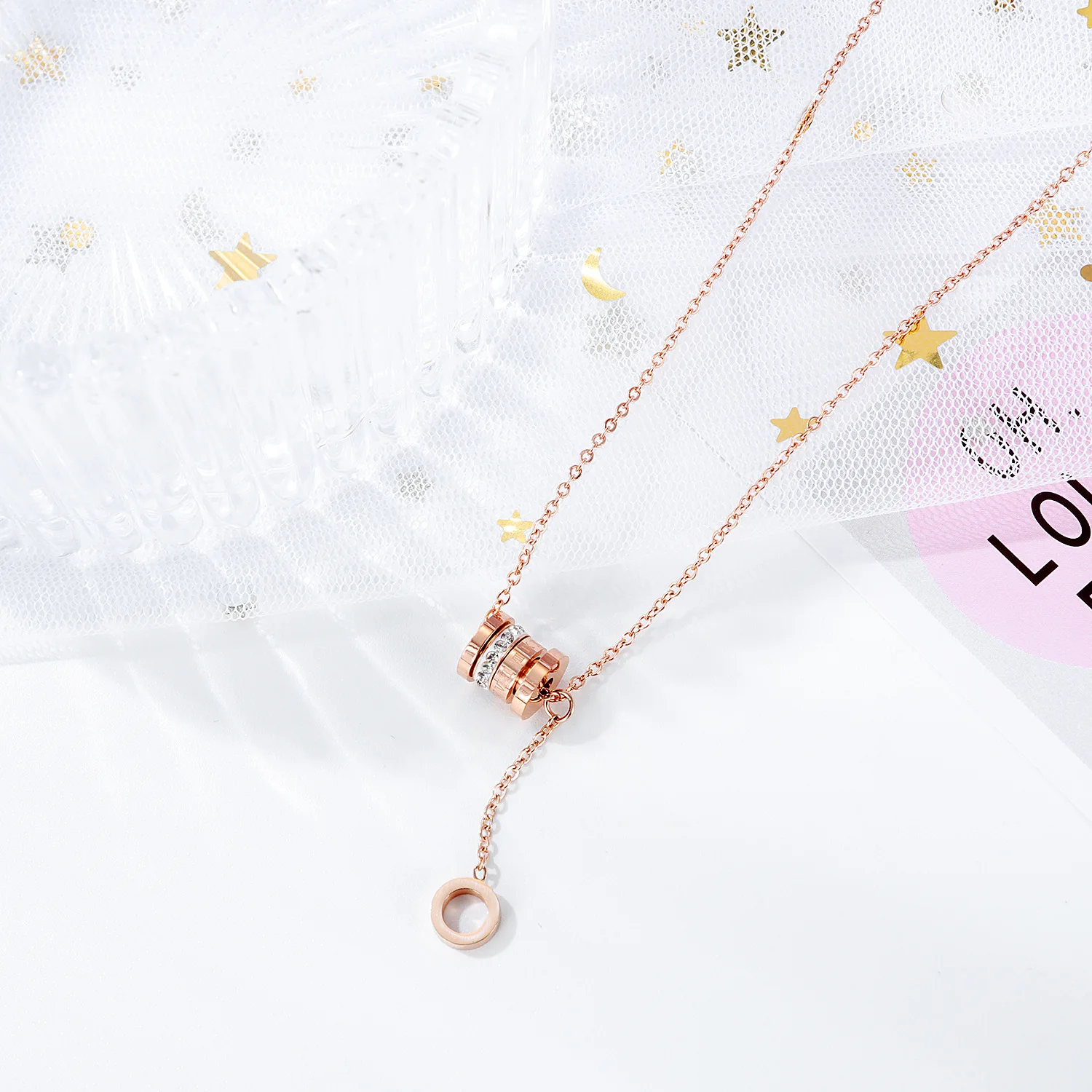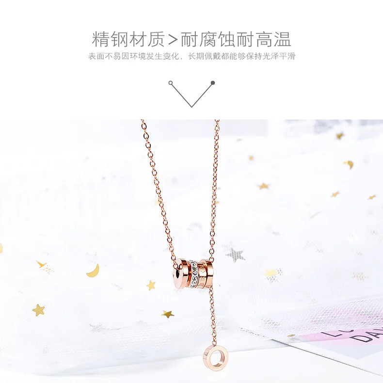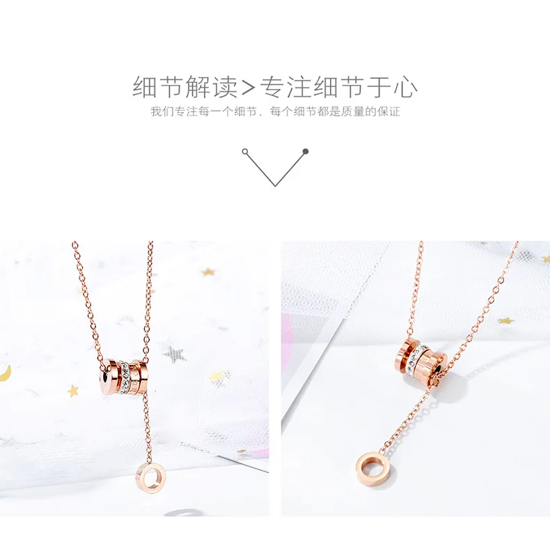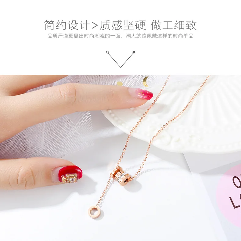 New fashion titanium steel small waist pendant Rhinestone Roman digital thin waist stainless steel necklace women's jewelry gift