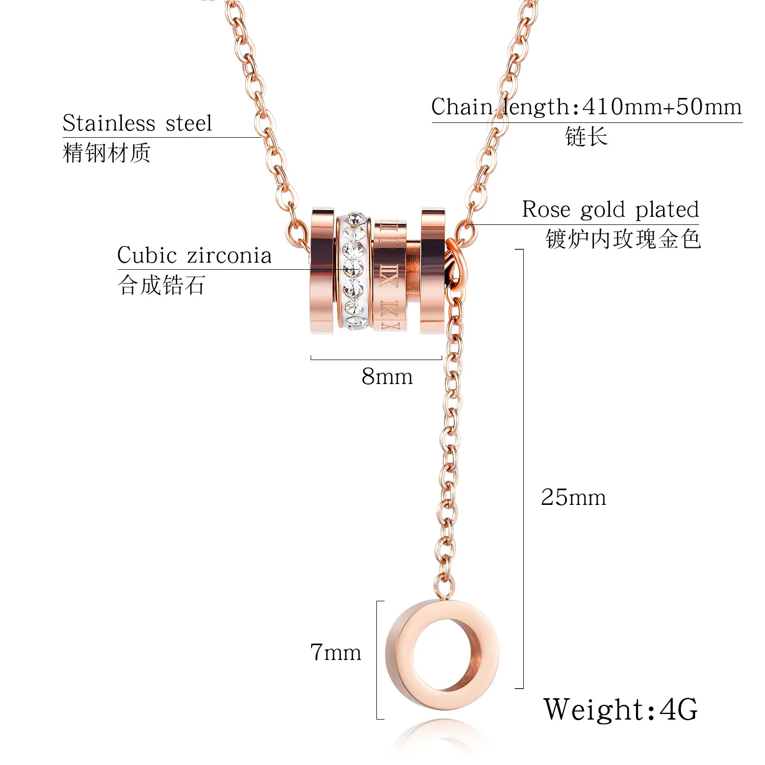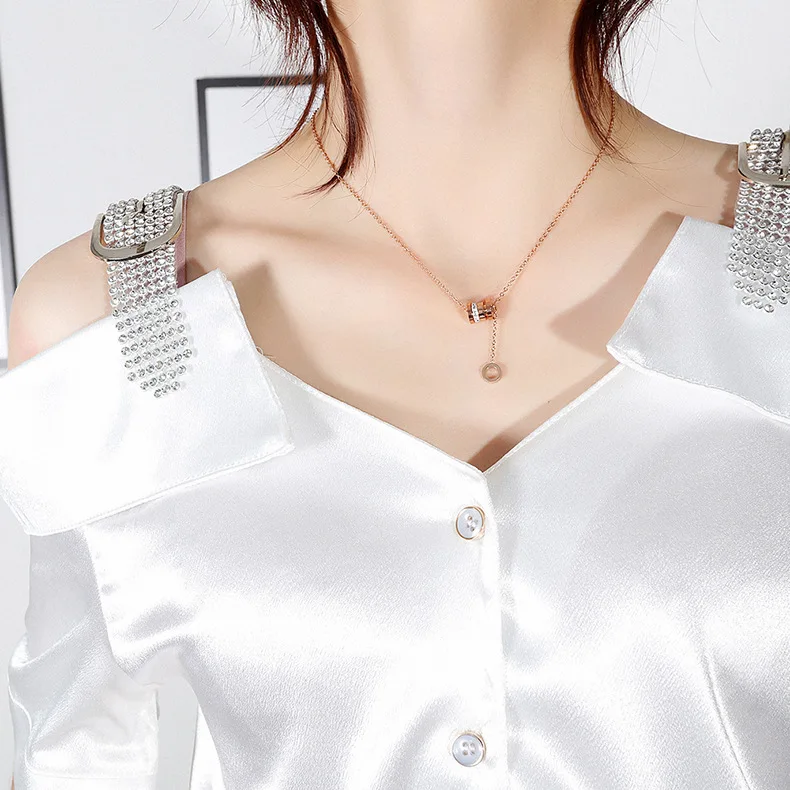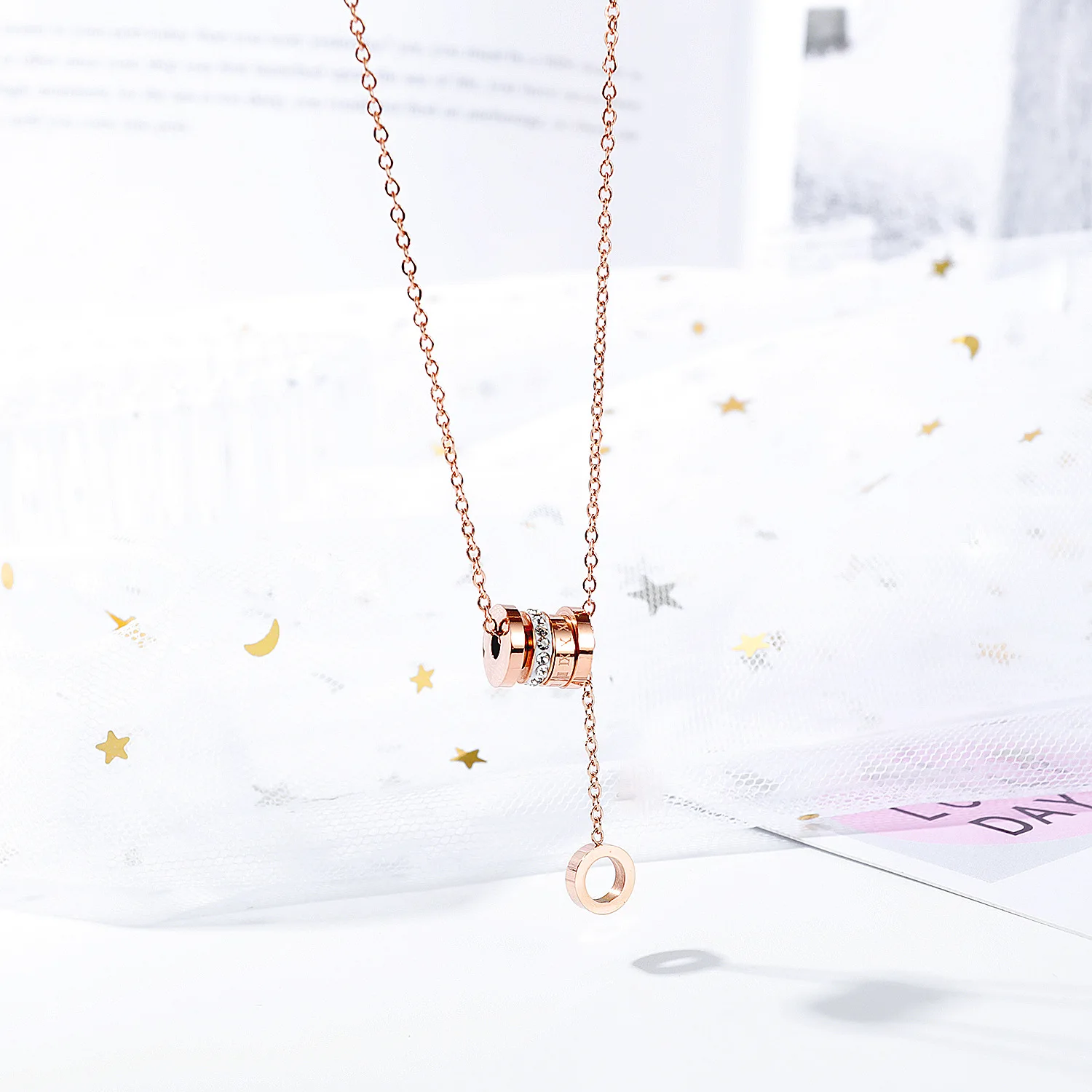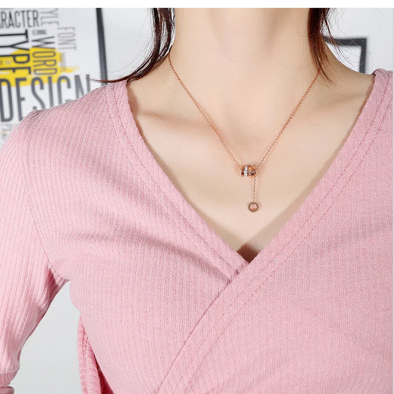 New fashion titanium steel small waist pendant Rhinestone Roman digital thin waist stainless steel necklace women's jewelry gift