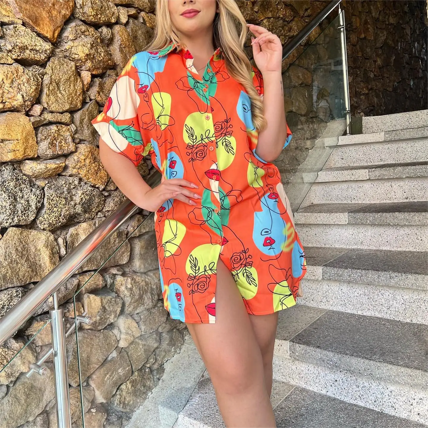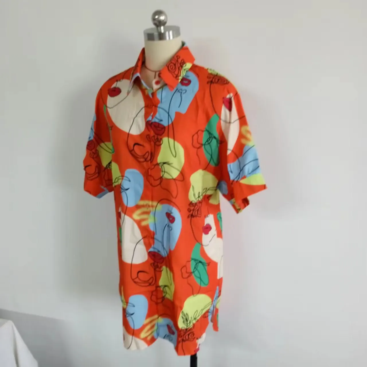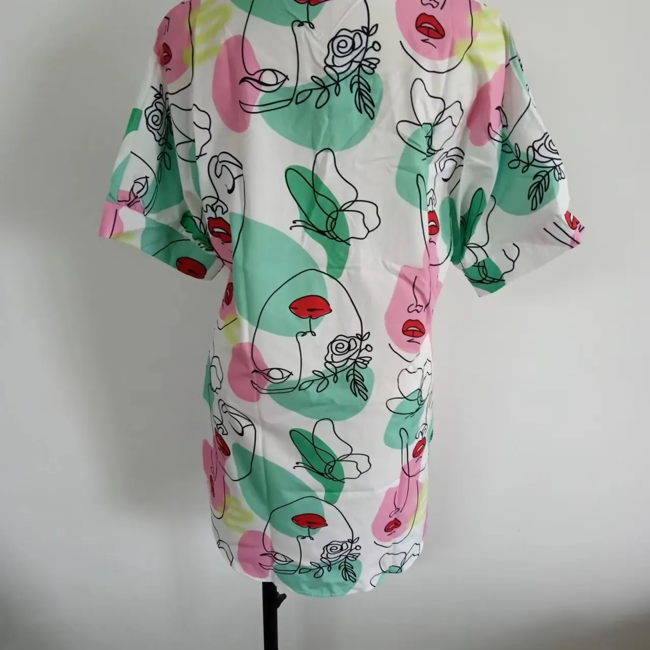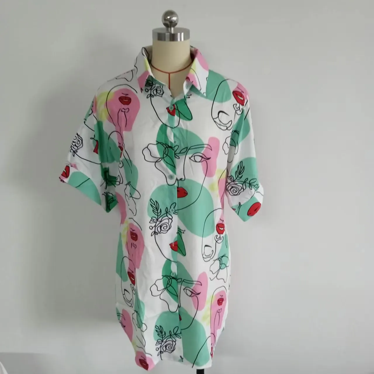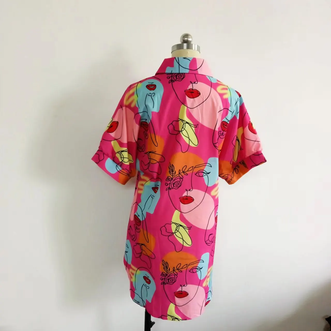 New Fashion V-Neck Personalized Cartoon Printing Slim Fit Shirt Dress Ladies Casual Midi Dresses