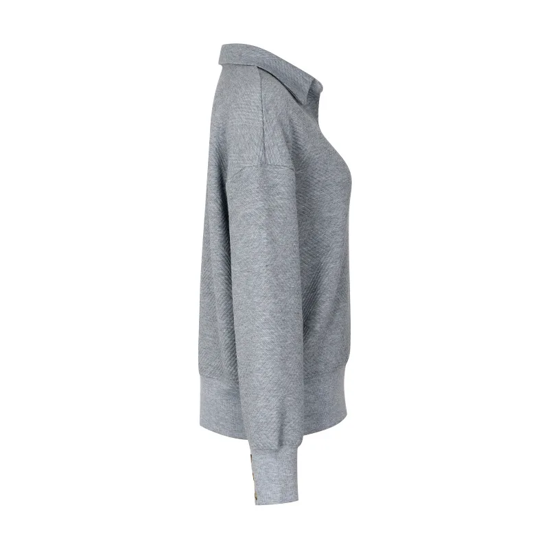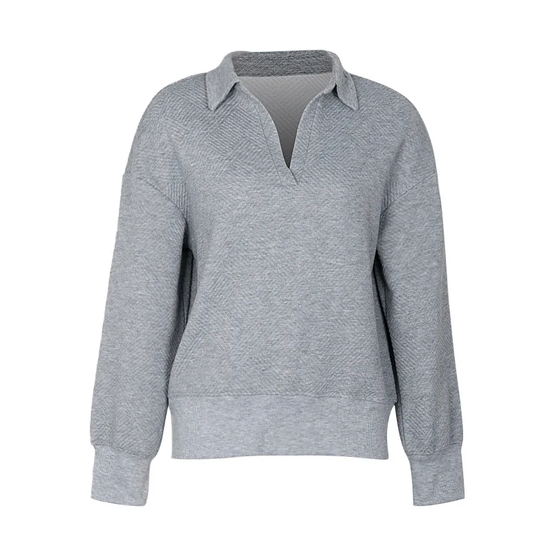 New Fashion Wholesale Cross Border Polo Collar Gray Sweatshirt