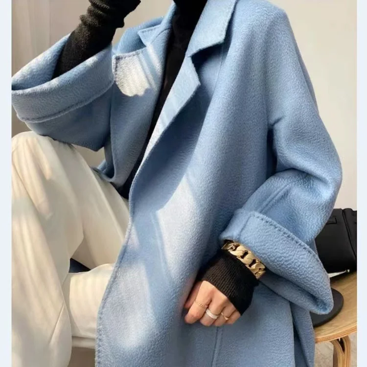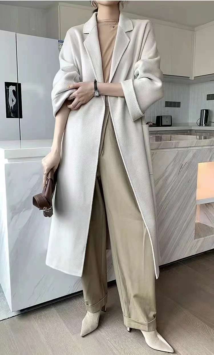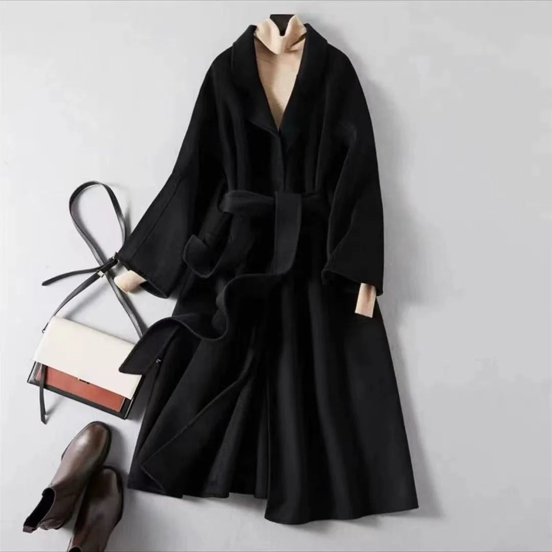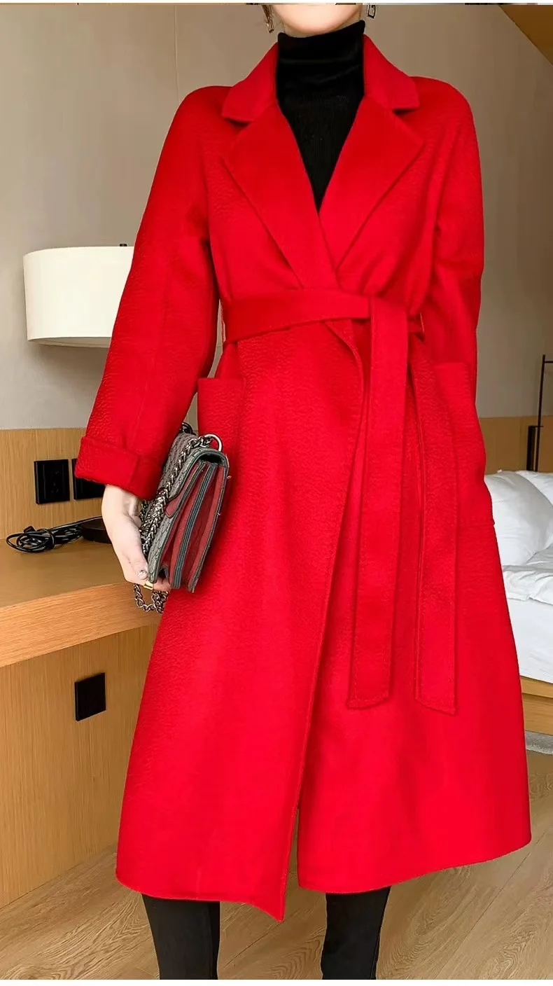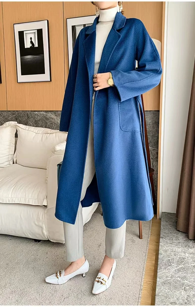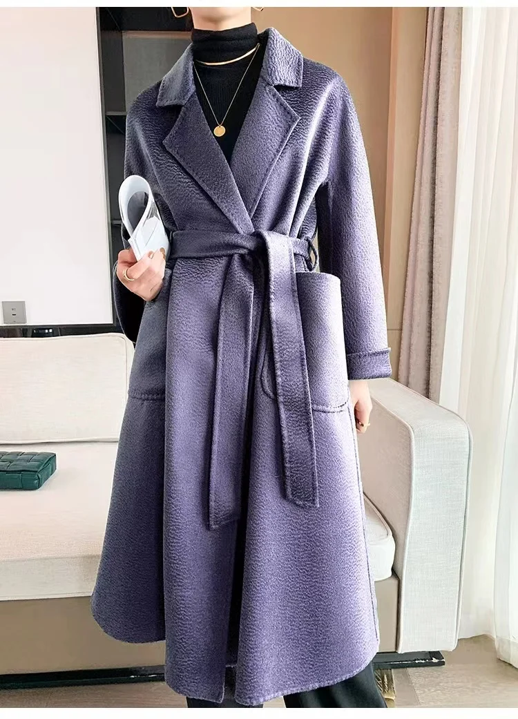 new fashion winter women fall long wool jacket double faced long genuine wool trench coat