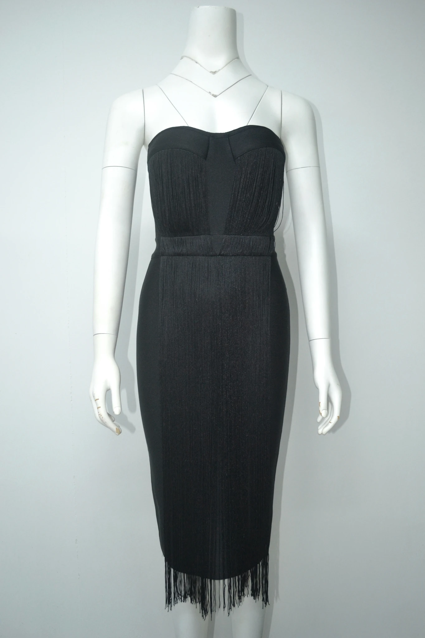 New Fashion Woman Clothes Bodycon Tassel Midi Dresses Strapless Bandage Mini Evening Prom Dress