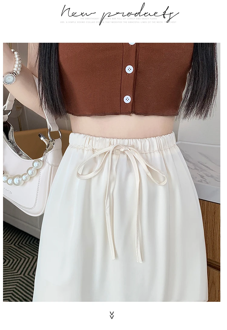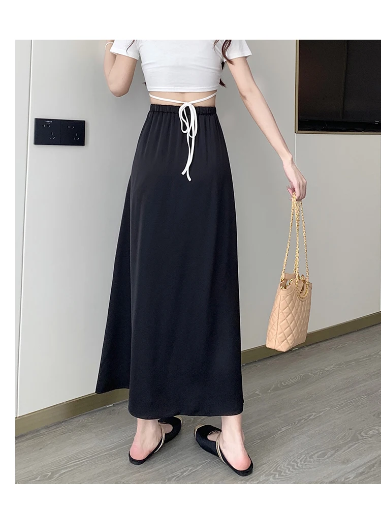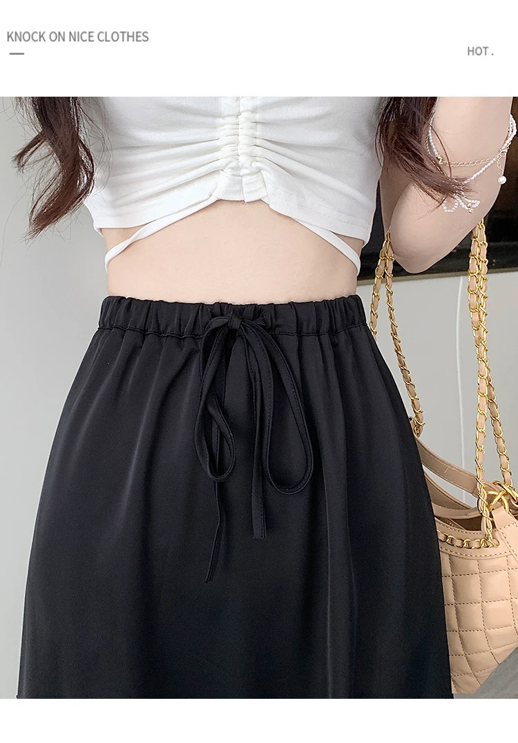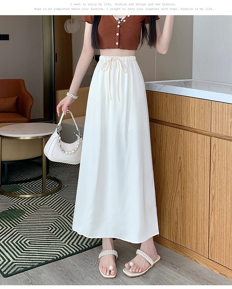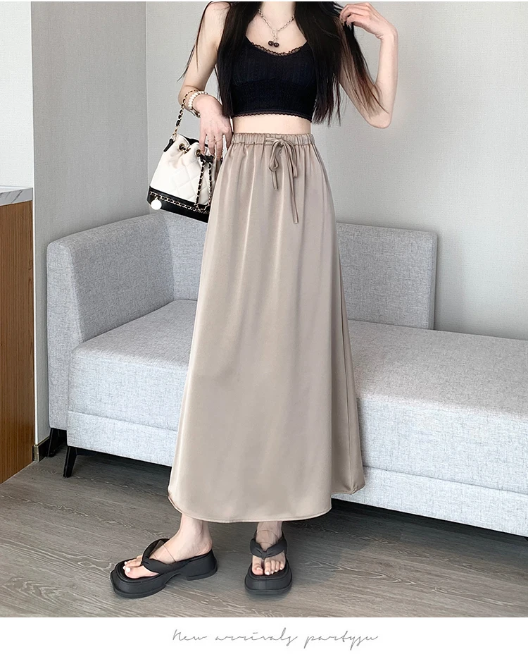 New Fashion Women Satin Long Mid-length Skirts Elegant Elastic Waist Summer Office Ladies A-line Faldas Female Korean Slim Skirt