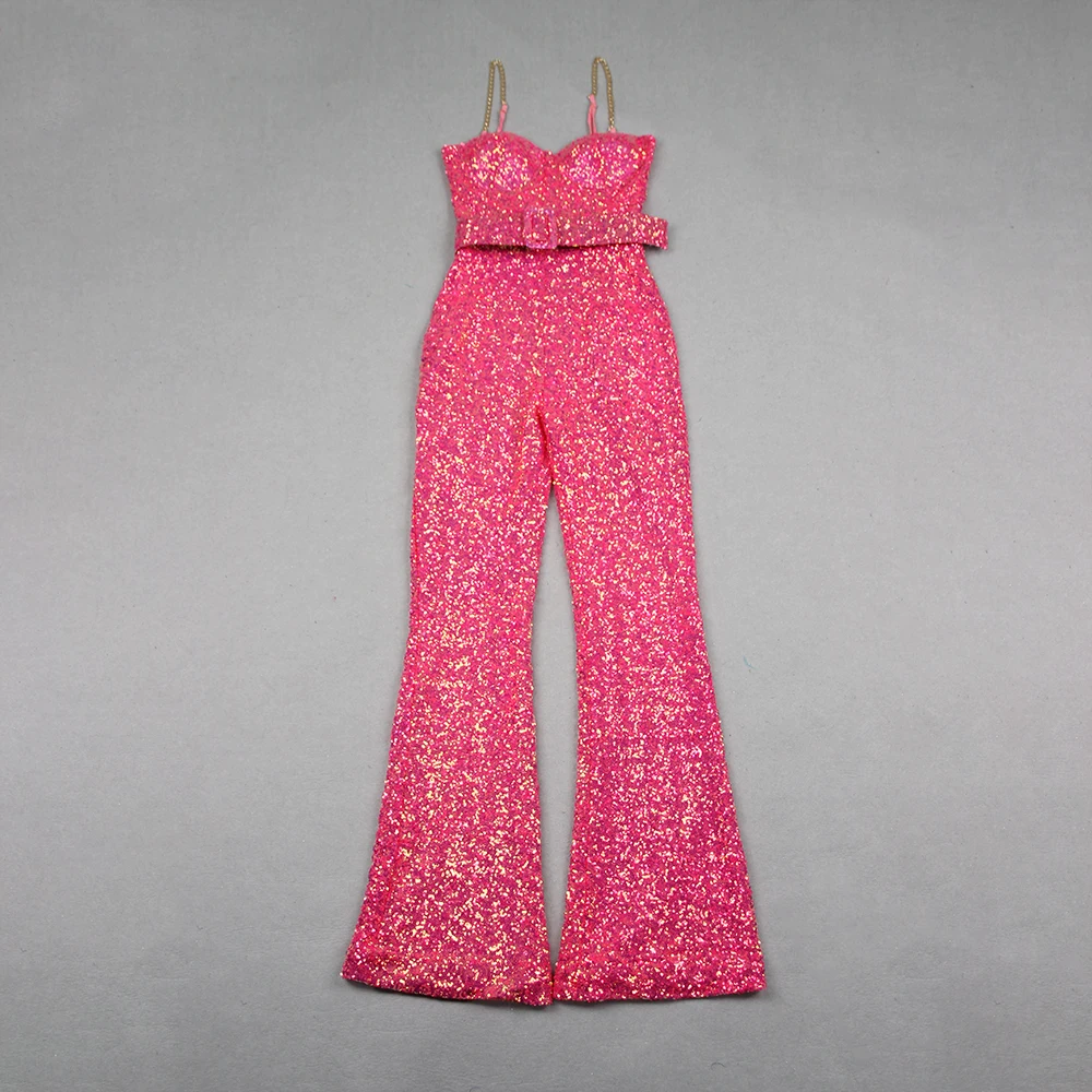 New Fashion Women's Bodycon Sequined Backless Strap Sleeveless Strap Jumpsuit