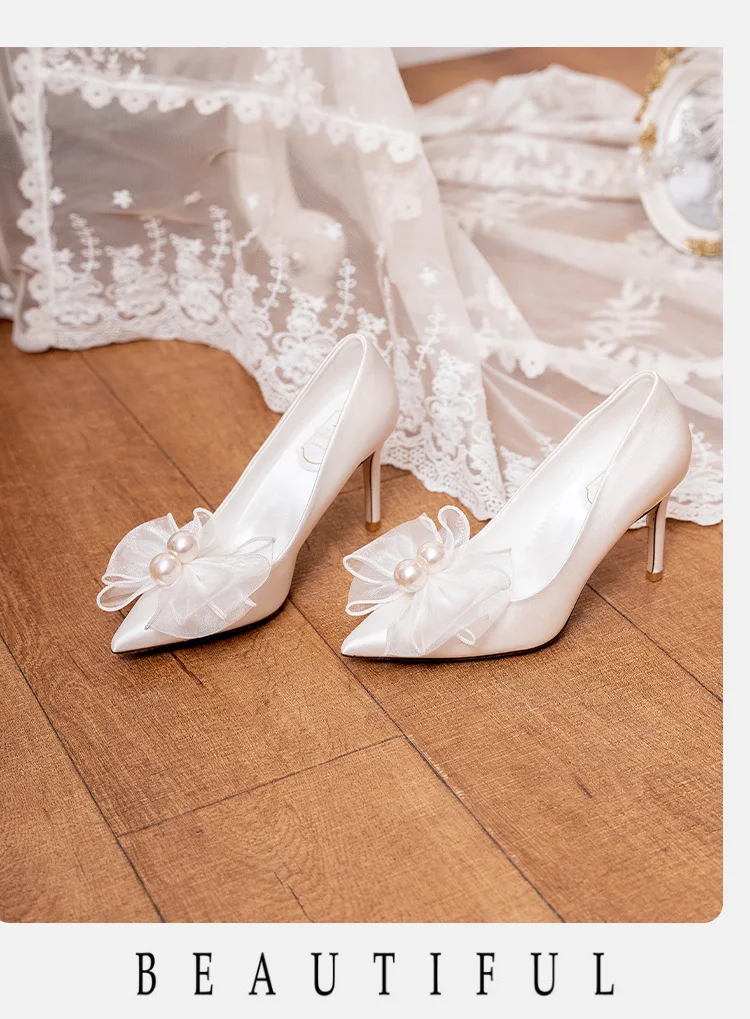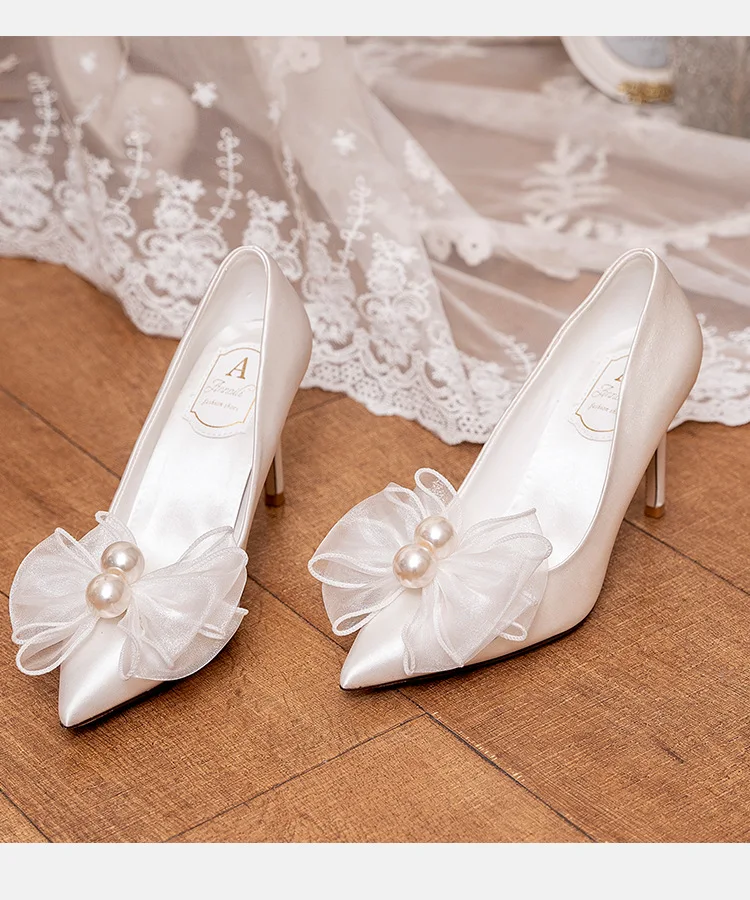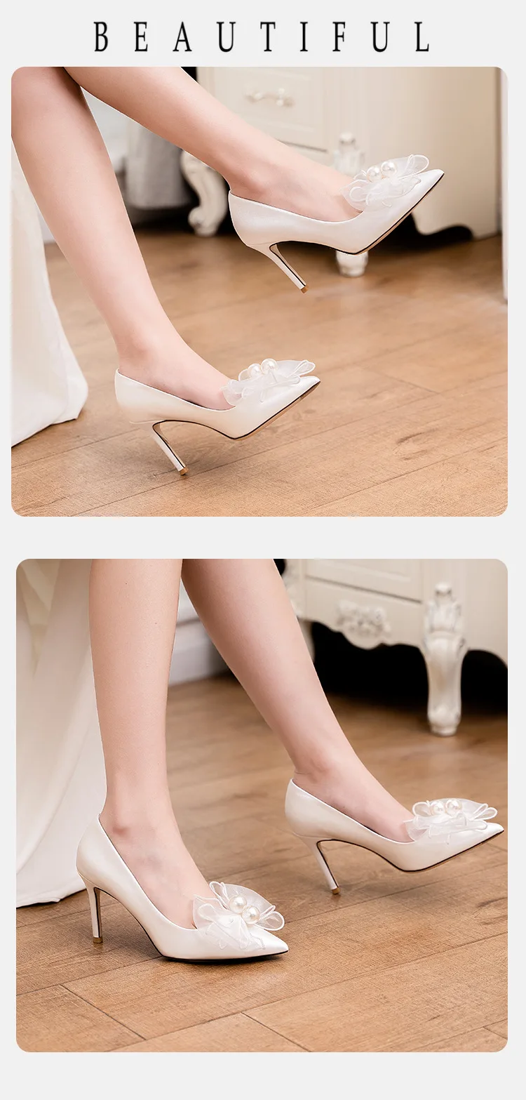 New Female Pointed-toe Shallow Bowknot Sandals Women Spring Summer High Heels Stilettos Ladies Outside Wedding Shoes