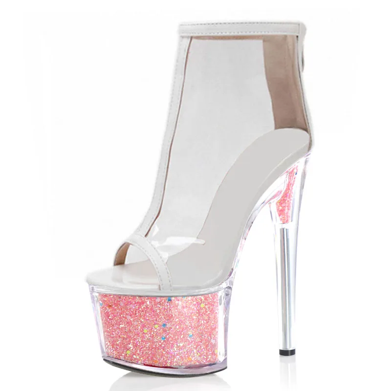 New fish mouth 17 cm thin heel transparent fashion women's fashion short boots pole dance high heels women's pumps shoes