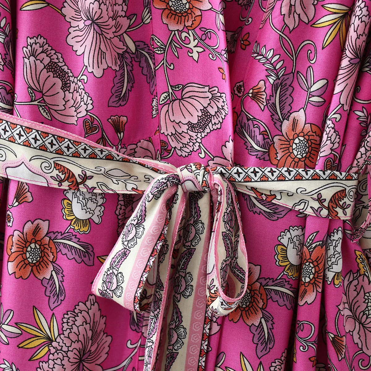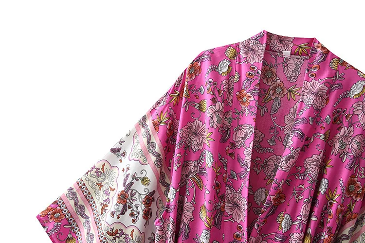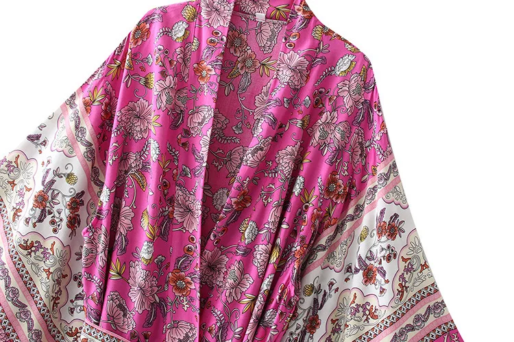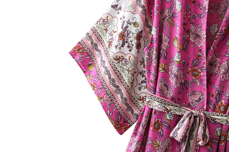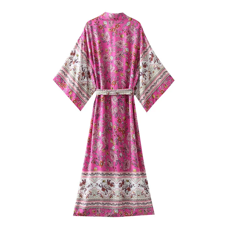 New Floral Print Maxi Hippie Wrap Dress Casual Batwing Sleeve Rayon Cotton Robes Bohemian Style Sashes Long Dress