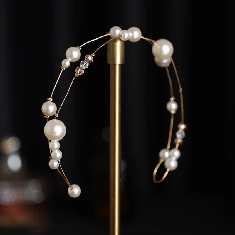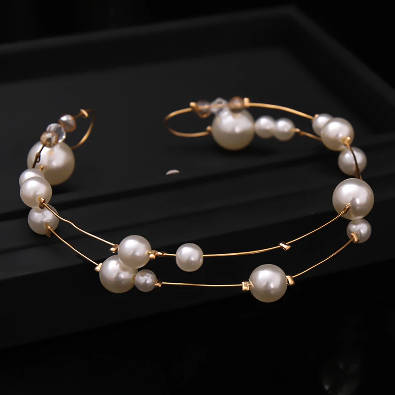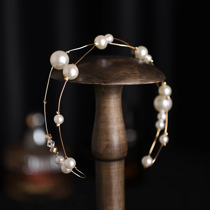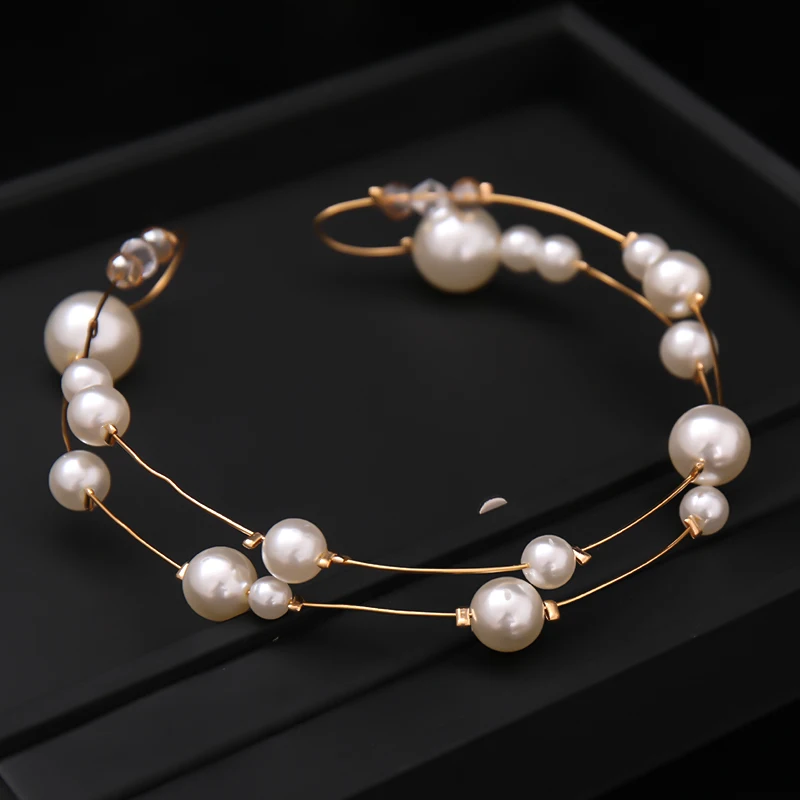 Gold leaf pearl bridal headband women hair accessories girls wedding hair vine jewelry wedding headpiece
