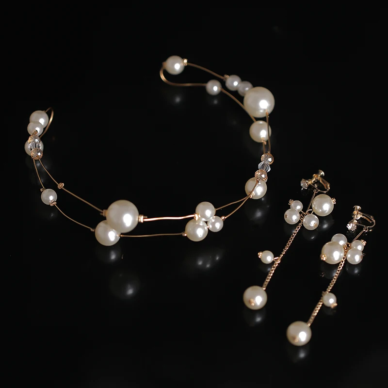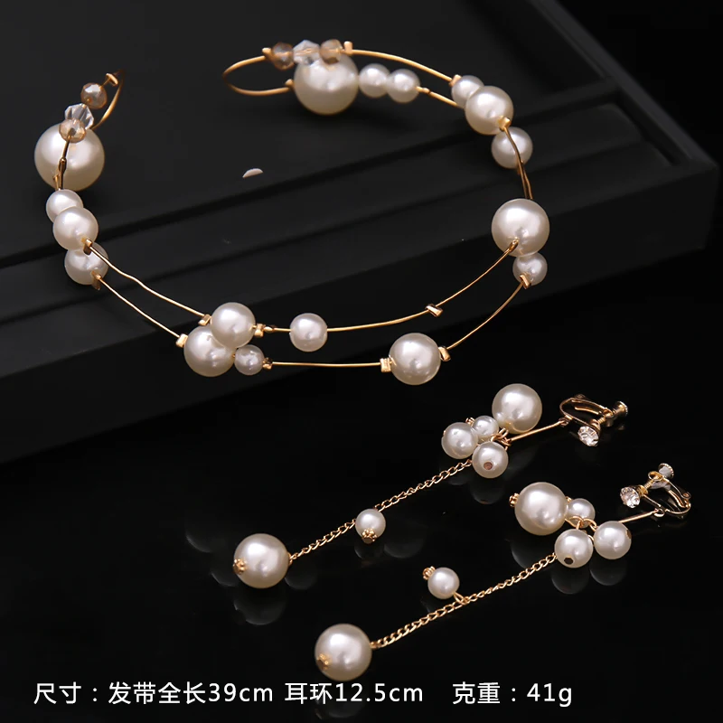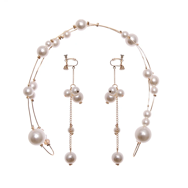 New Handmade Beauty Hair Accessories 2023 Pearl Hair Vine Bridal Headpiece Set With Earrings