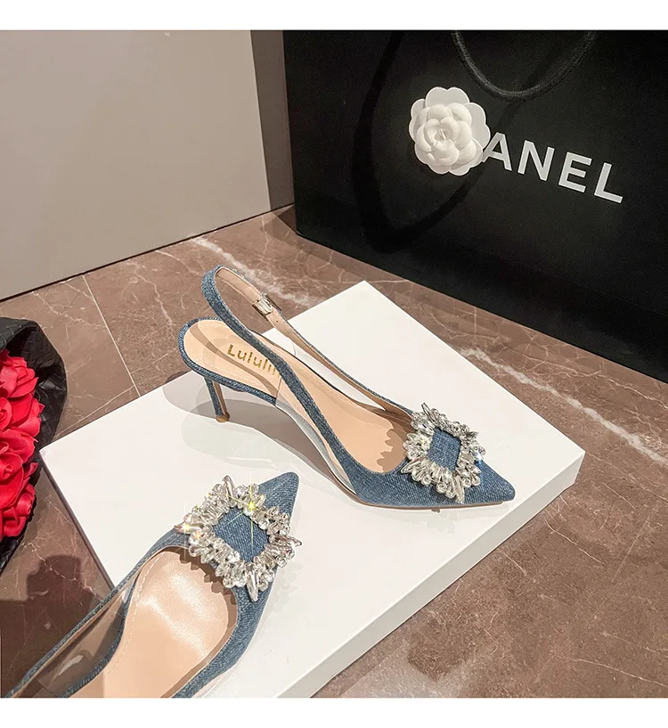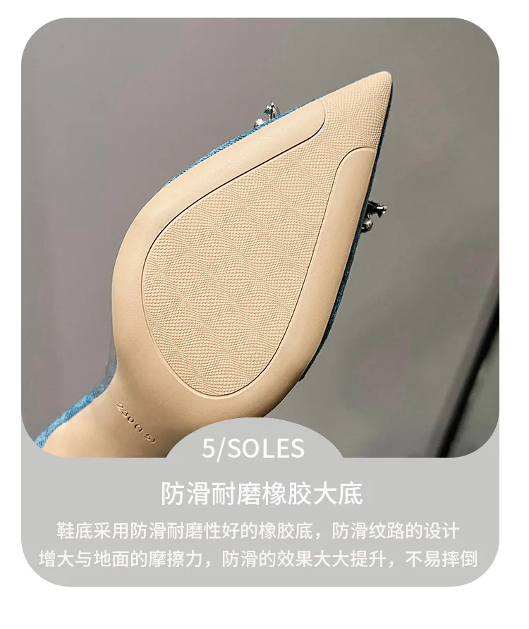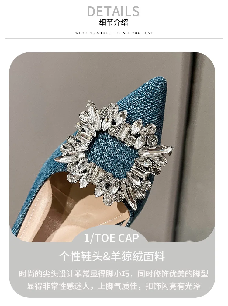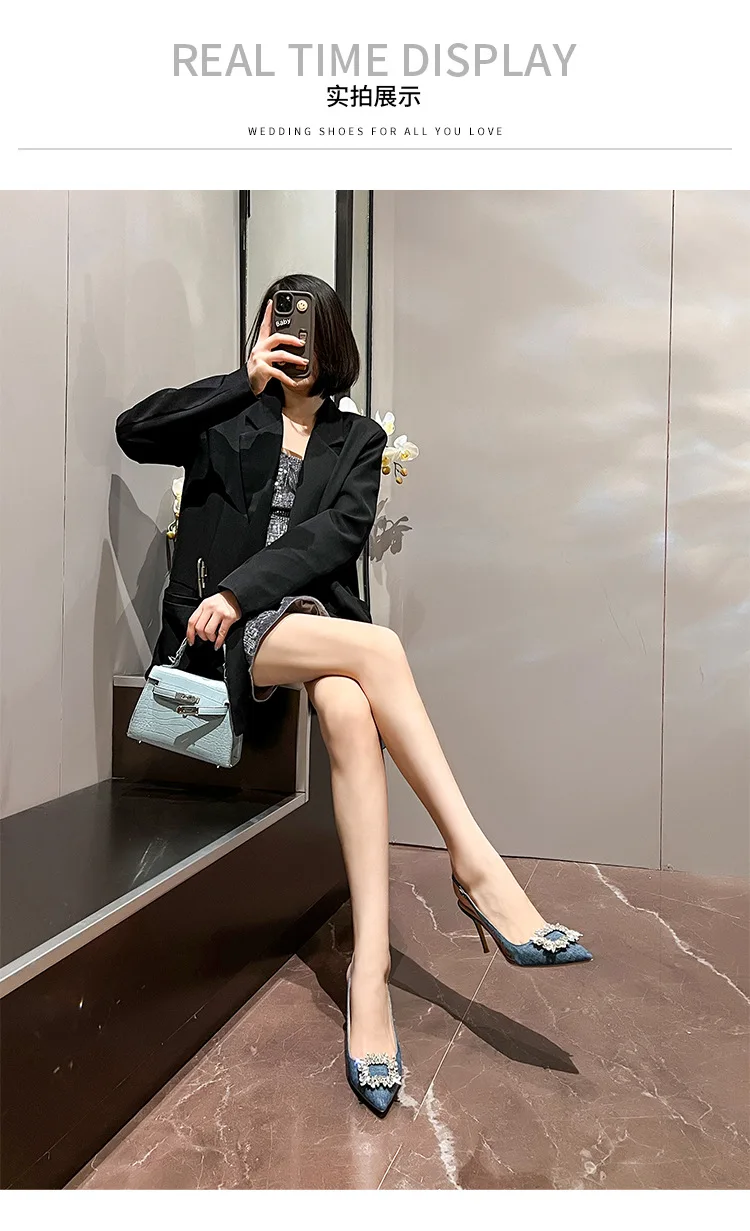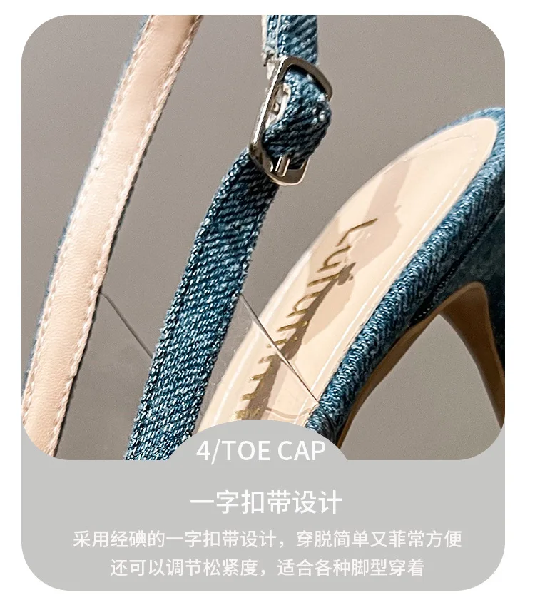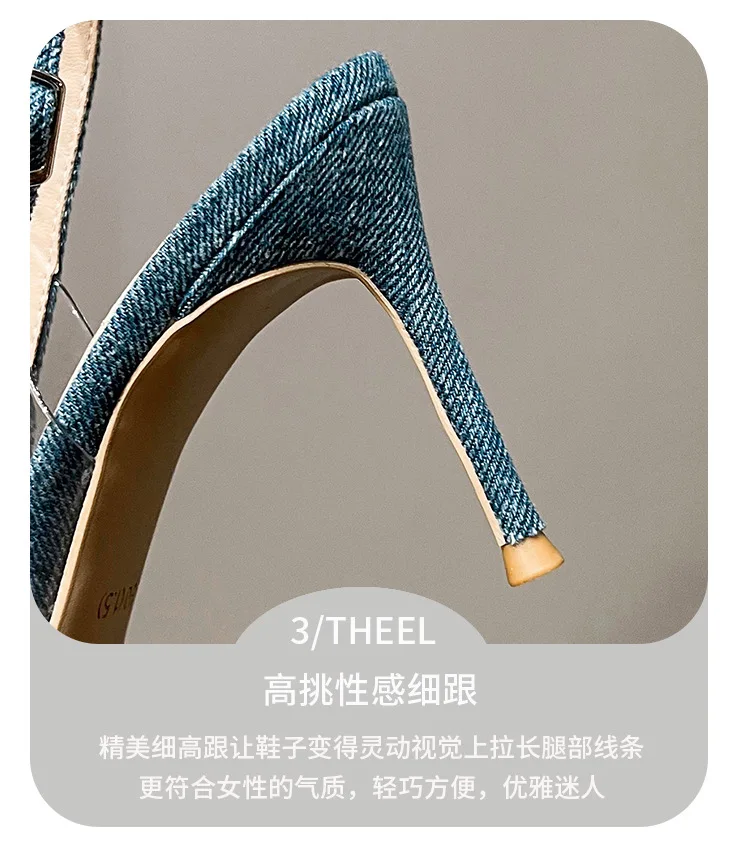 New High Heel Shoes Blue Denim Sandals Sexy Pumps Shoes Women Heels for Ladies