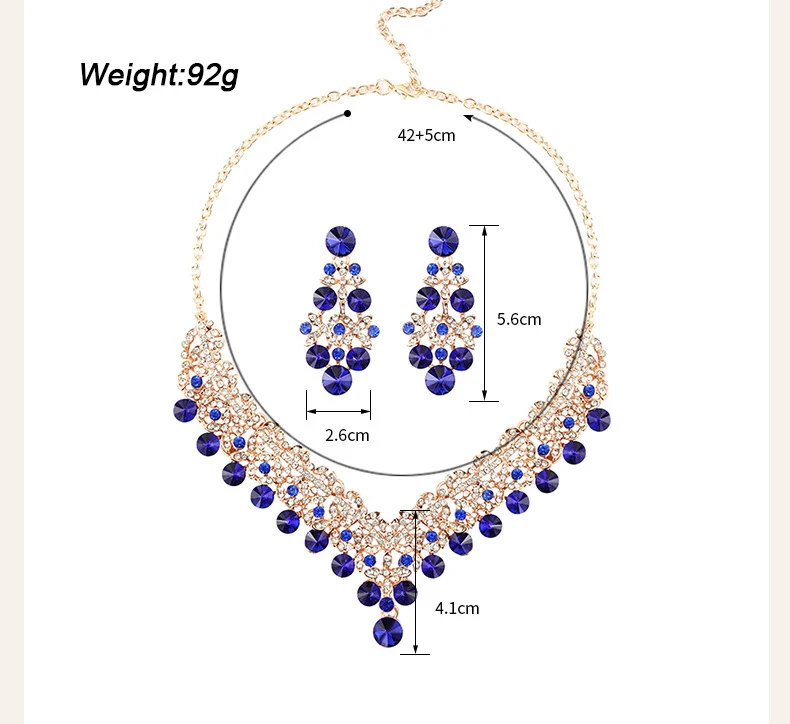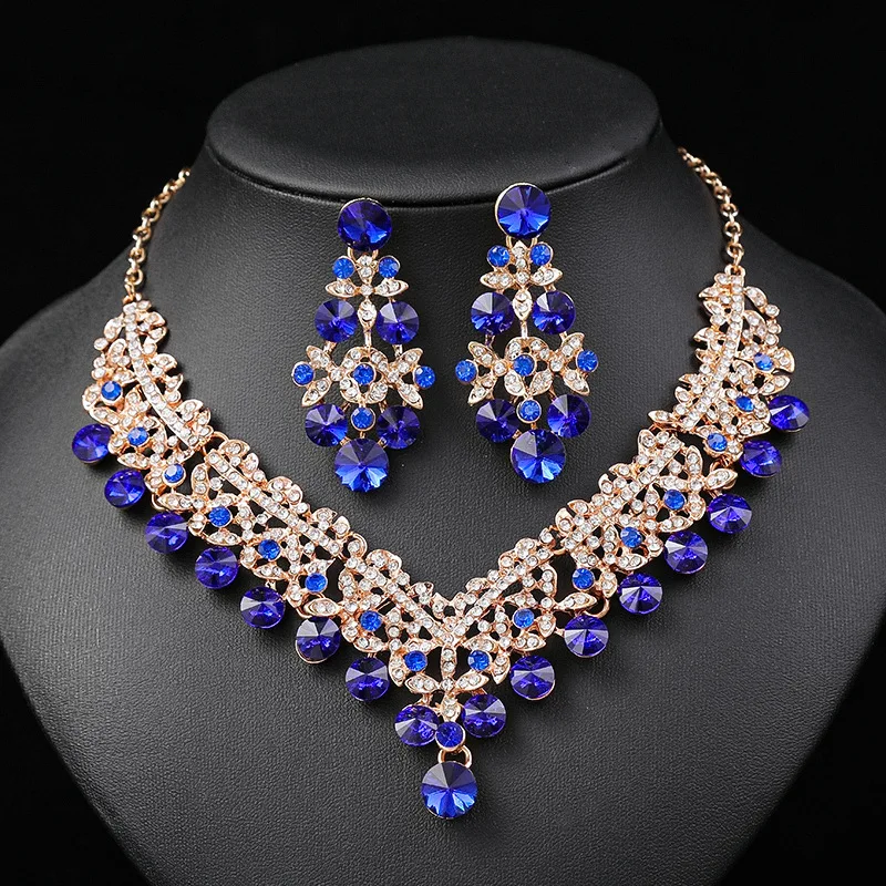 New Necklace Earrings 2 Piece Suit Dark Blue Collar Female Accessories Blue Crystal Jewelry Set Wedding Bride Pendant Wholesale