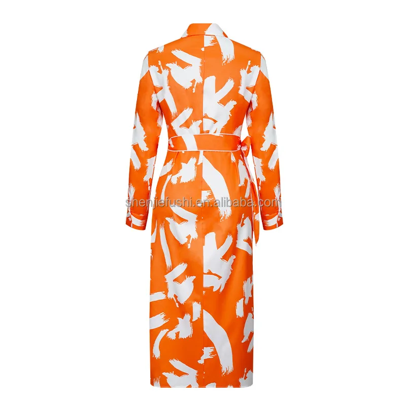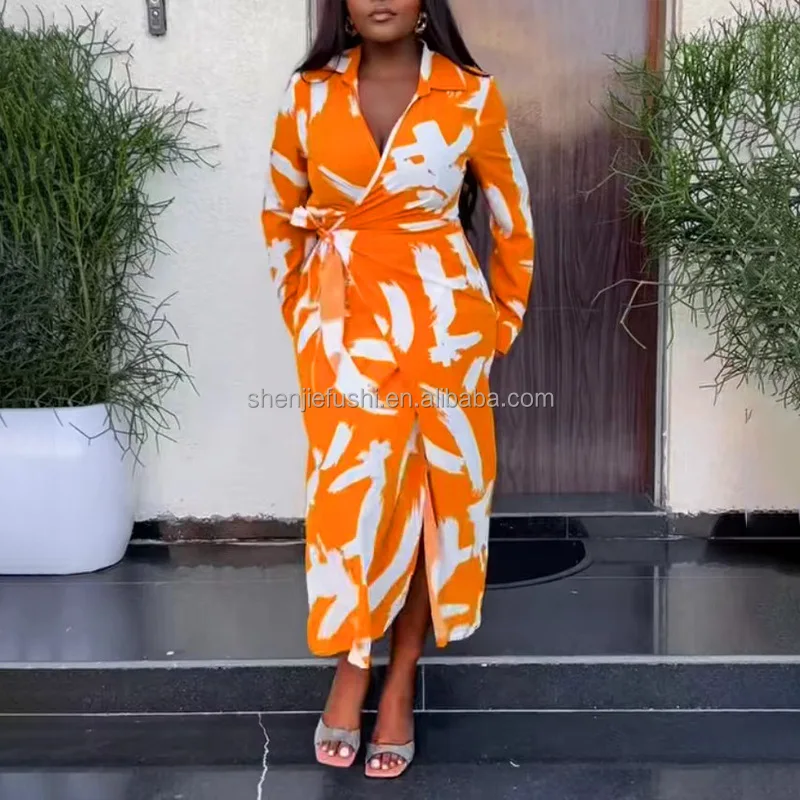 New One-Piece Fashionable Printing Cross Tie V-Neck Mid Waist Temperament Commuter Dress Office Wear Elegant Dresses