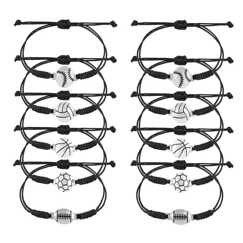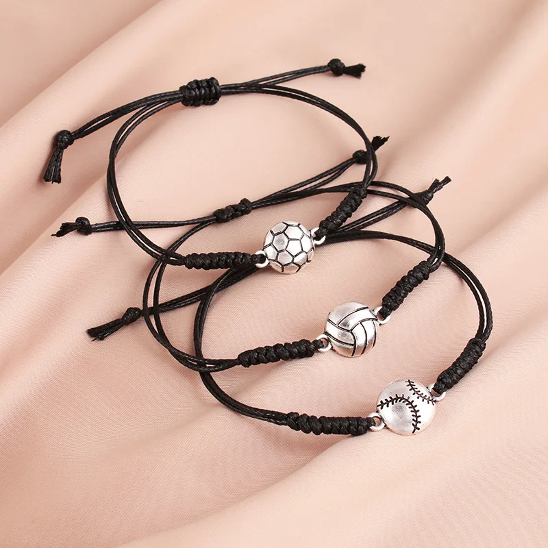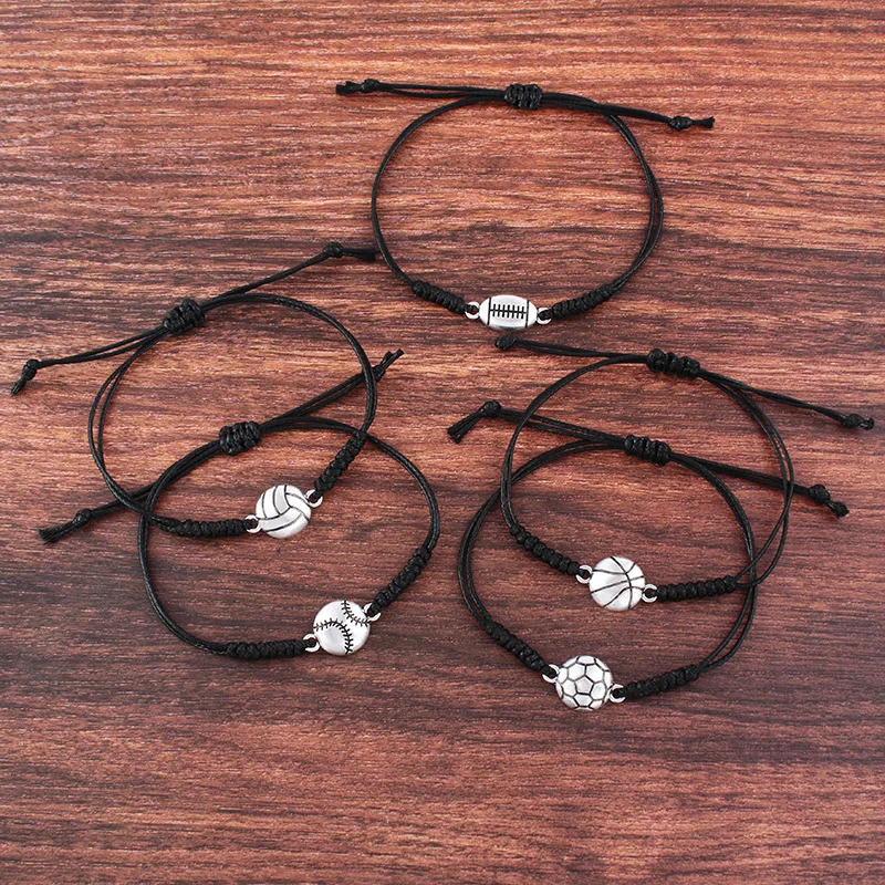 New Popular Minimalist Alloy Football Bracelet Wax Thread Handcrafted Woven Bracelets Versatile Adjustable Rope Bracelet