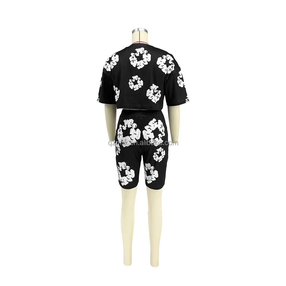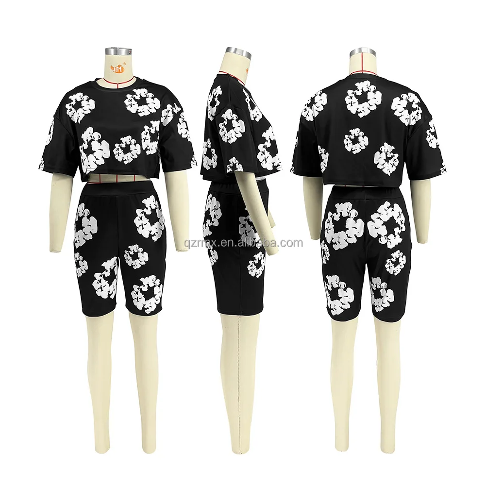 new product 2024 popular best selling Slim Round neck short sleeve popular digital pattern printed shorts set