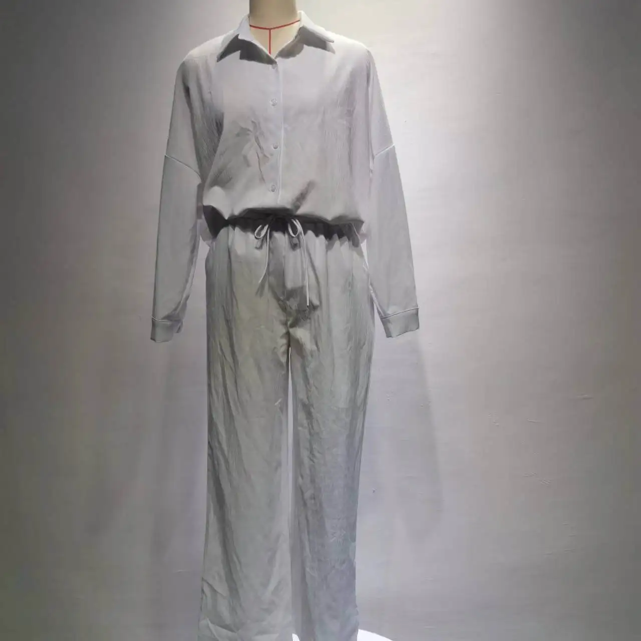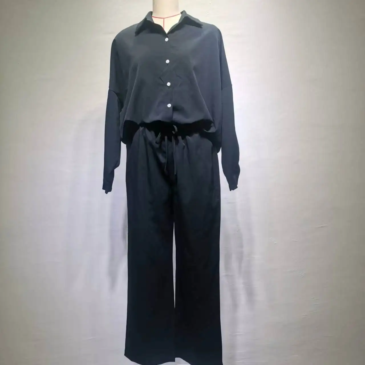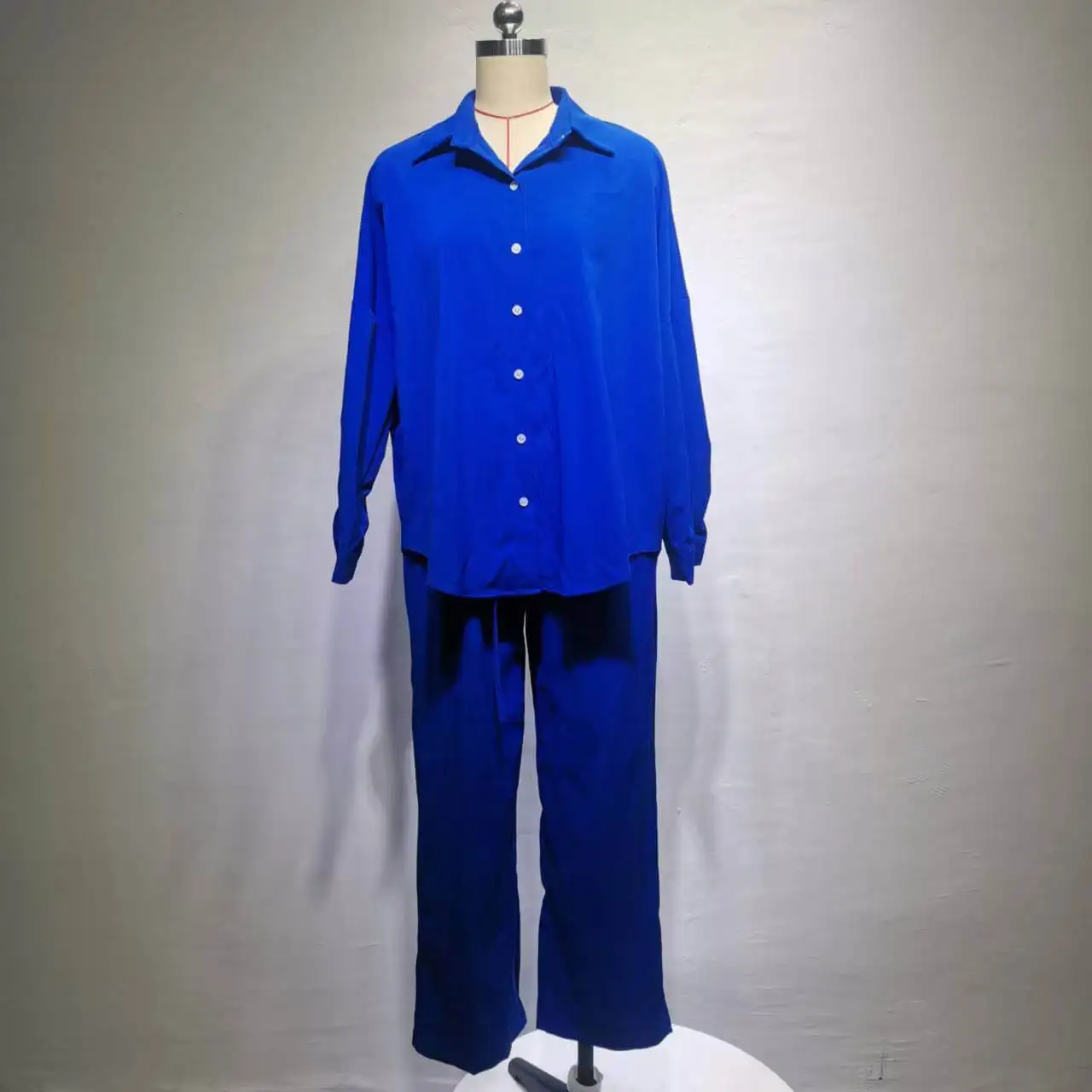 New product set loose solid color long sleeved shirt casual lace up fashion wholesale two-piece set
