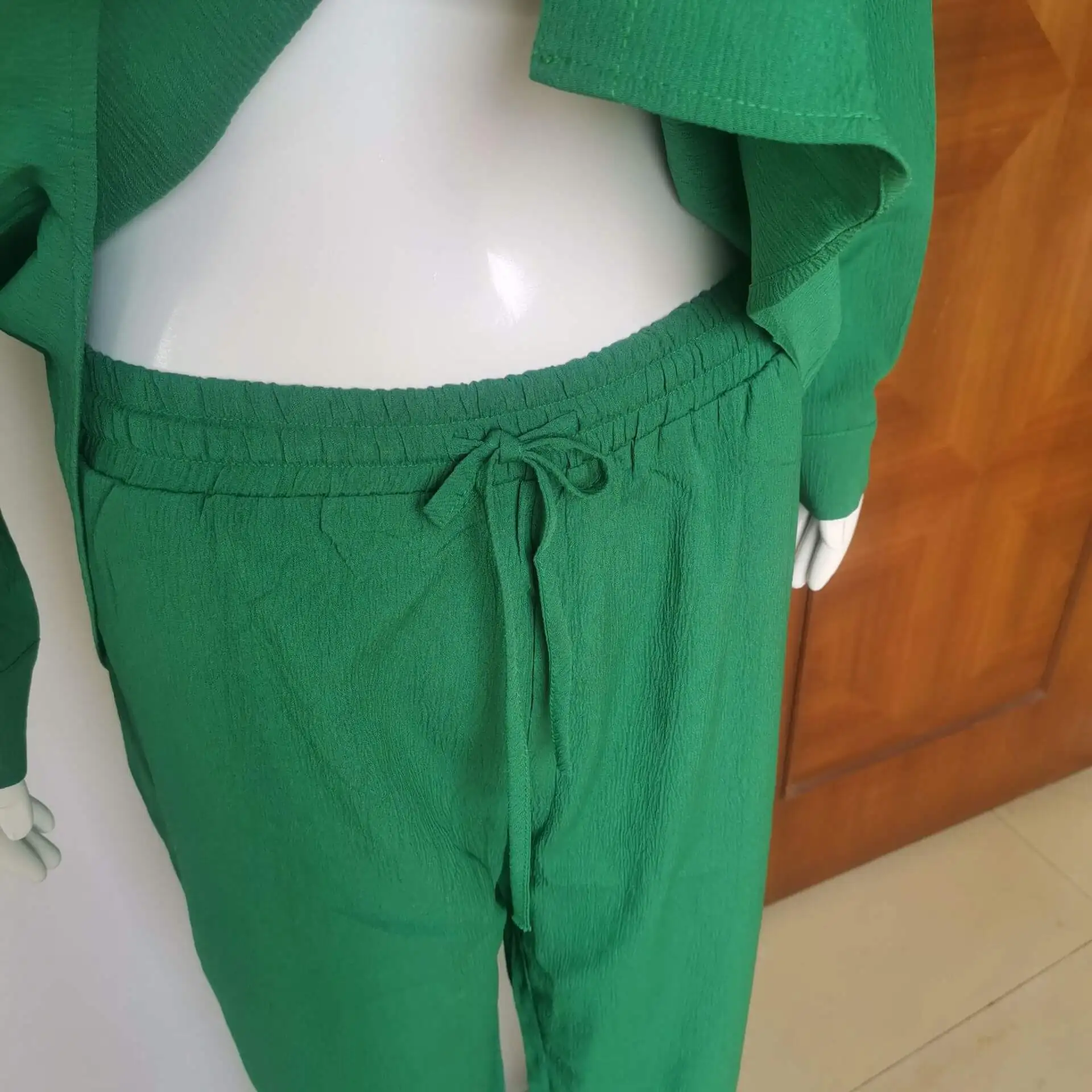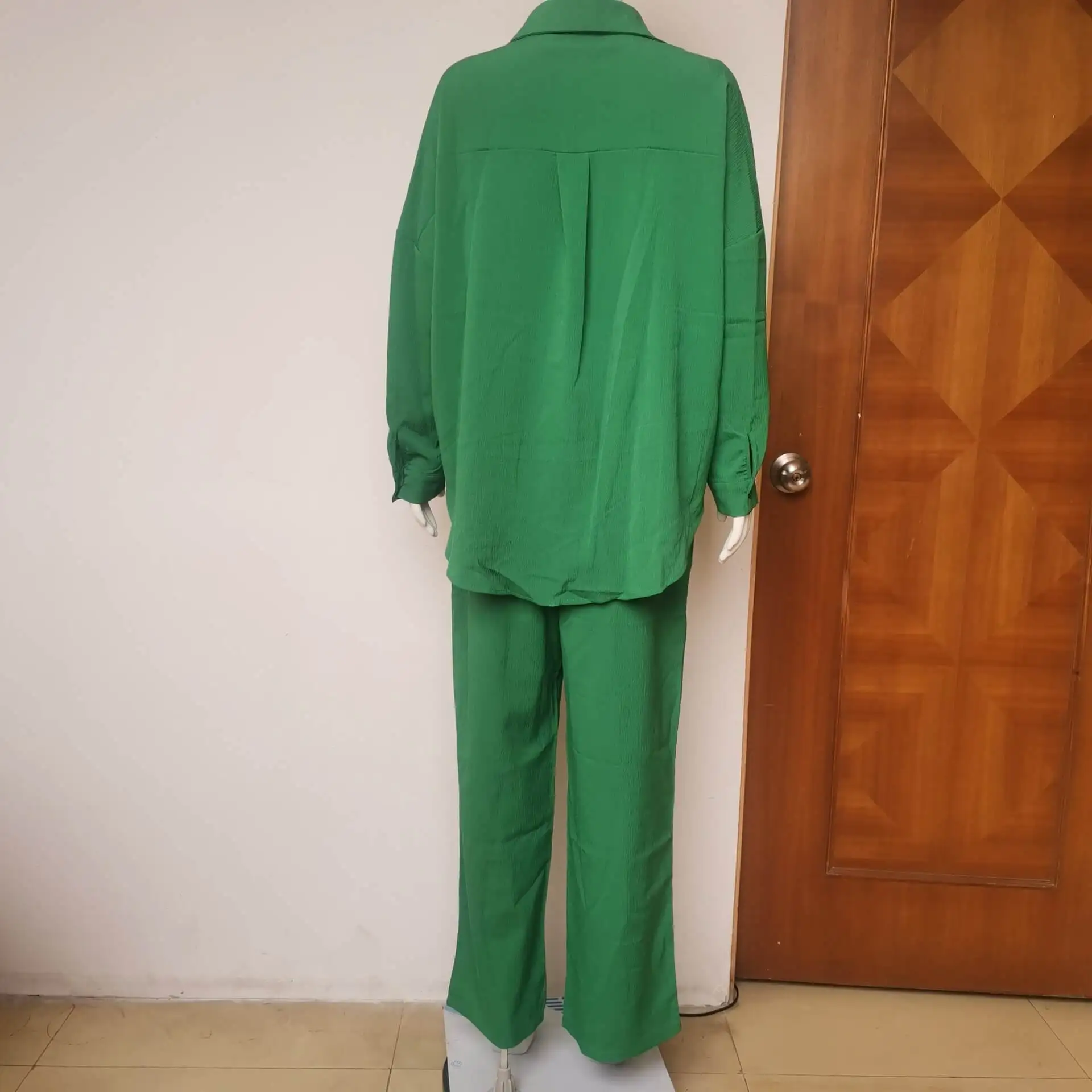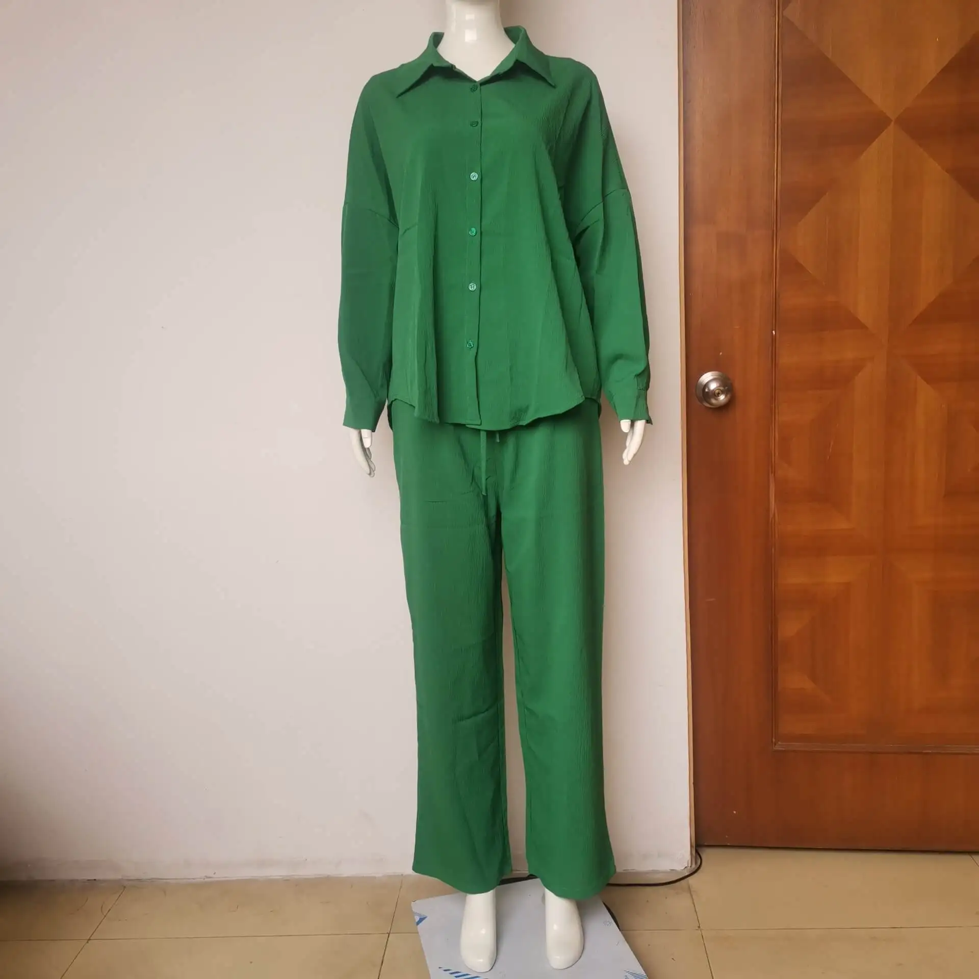 New product set loose solid color long sleeved shirt casual lace up fashion wholesale two-piece set